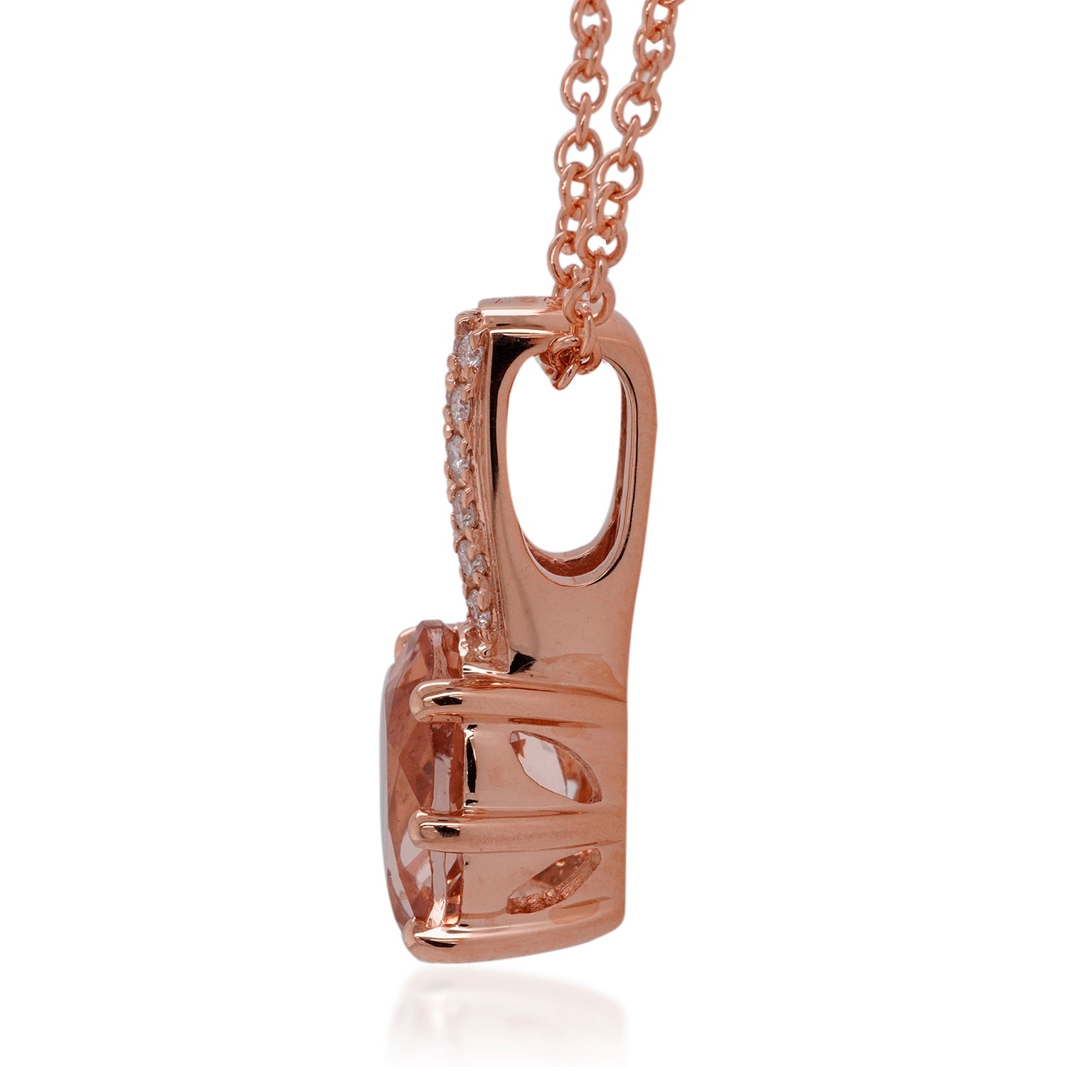 Sport an ultra-modern look by adding this pendant to your simple chain. While the 14k rose gold gives radiance to the piece, the oval cut Morganite and round Diamonds give a luxury look. A blend of timeless elegance and modern charm, this pendant is eye-catching!