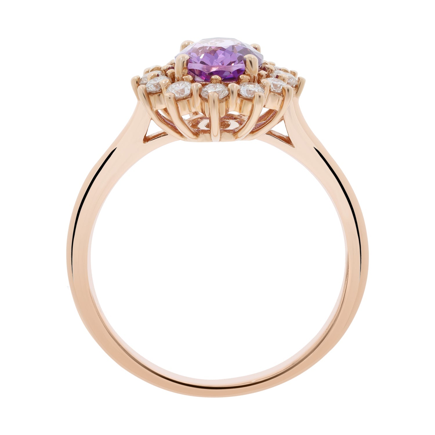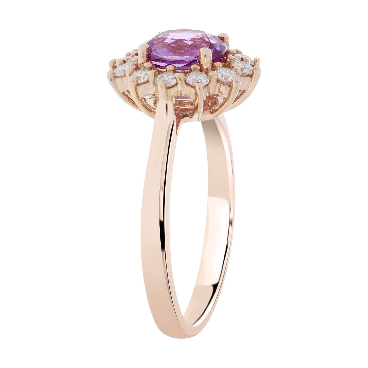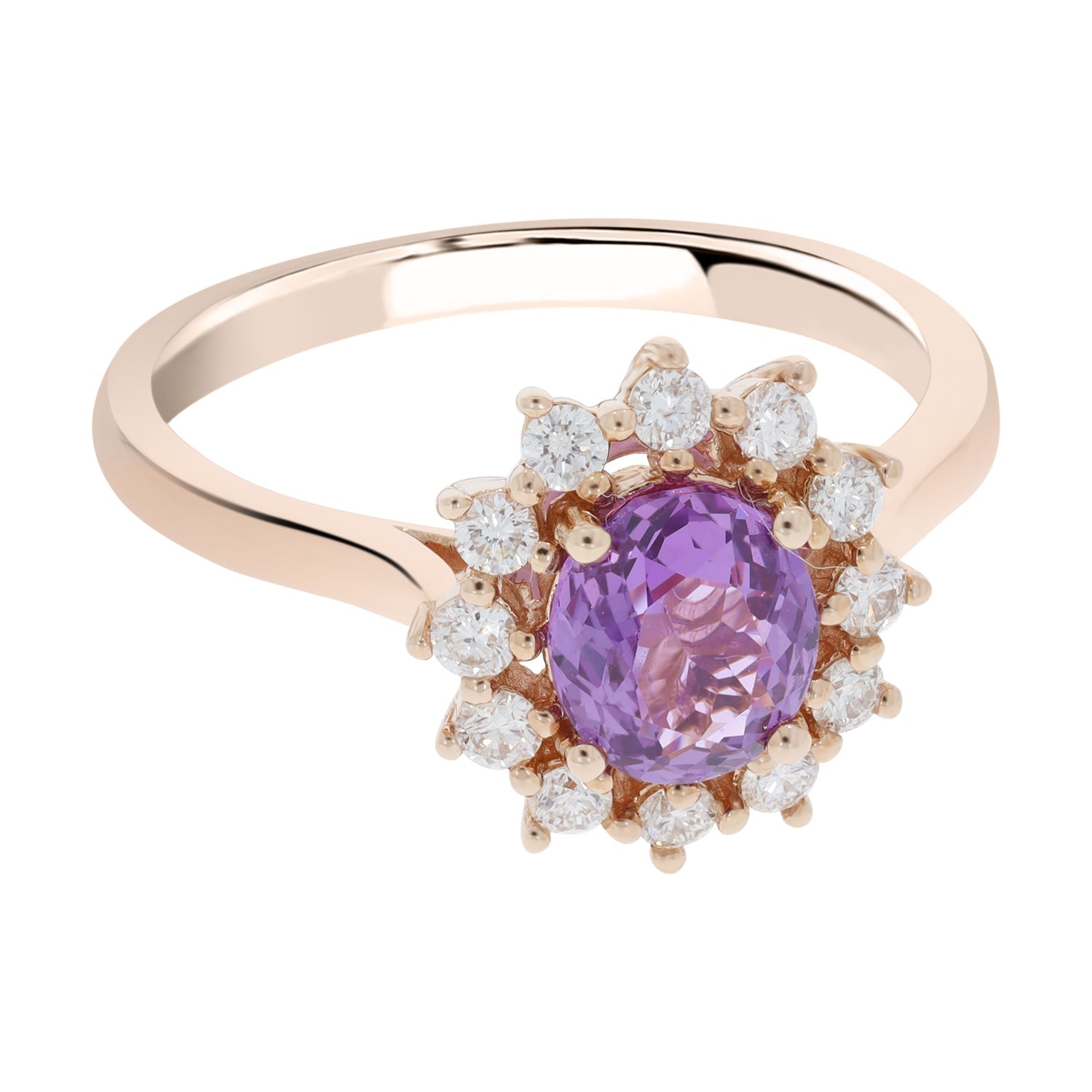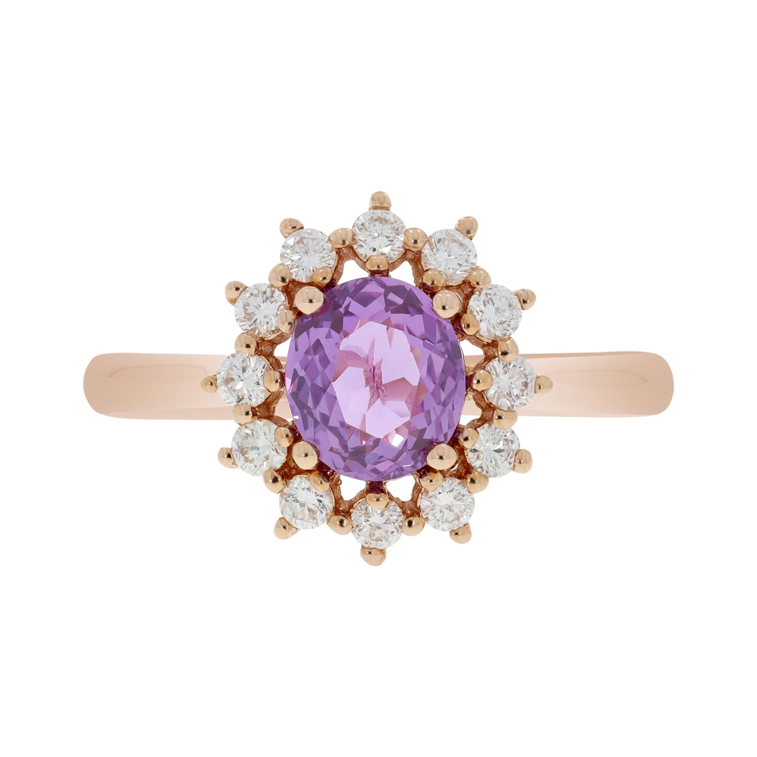 Add instant flair to any style attire wearing this enchanting 14kt rose gold ring. This ring is designed with excellent fashion sense and set with oval-cut Sapphire and round Diamonds that lend a sparkling touch to your outlook.