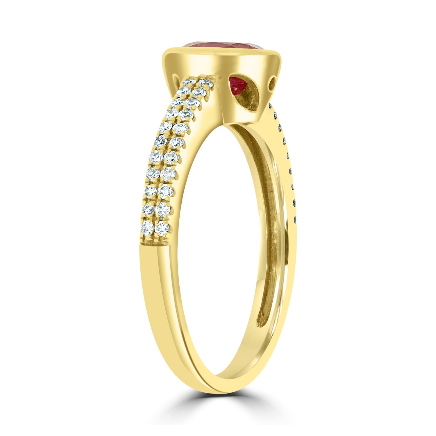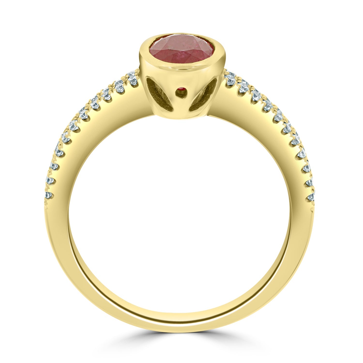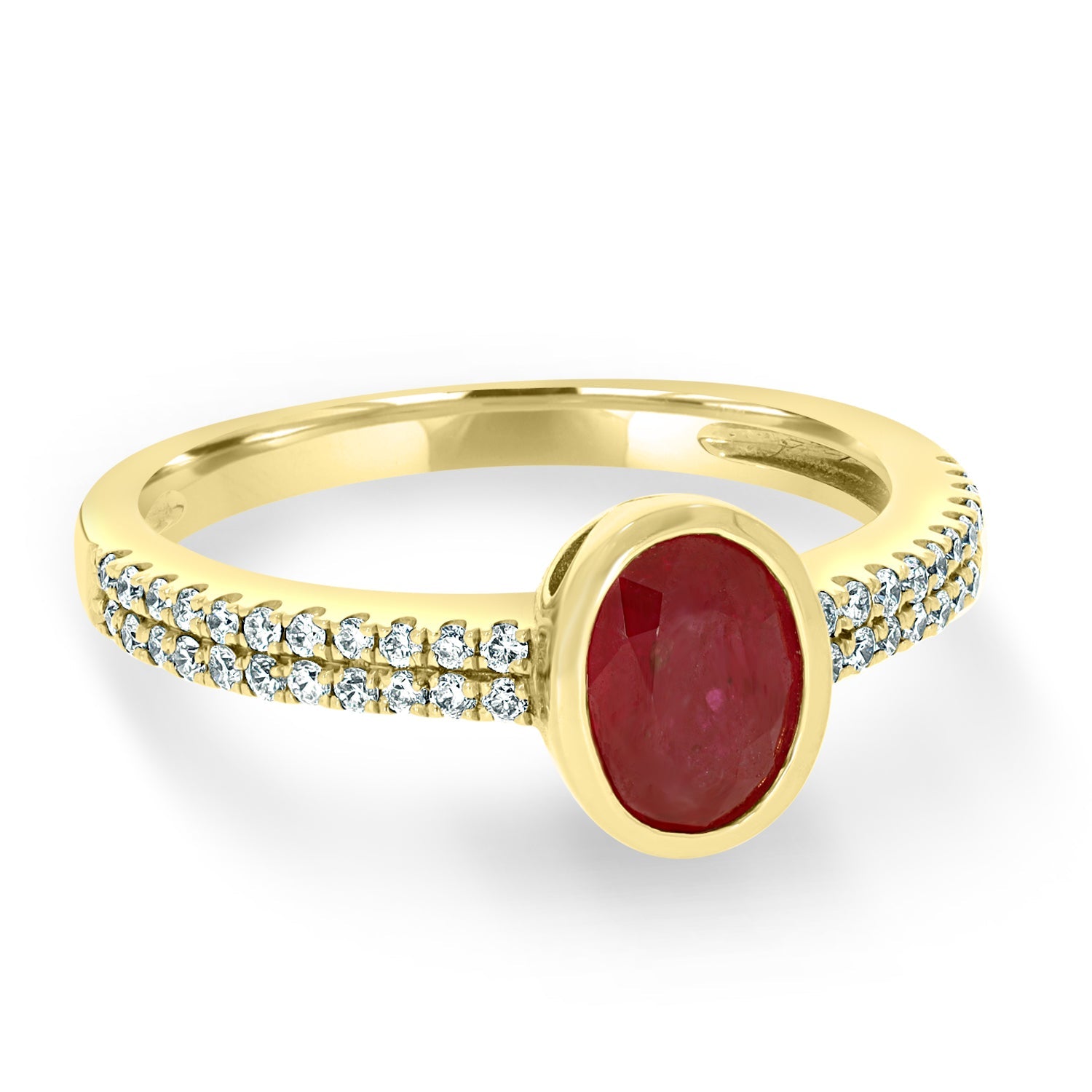 Designed With A Striking Oval Cut Ruby, This Magnificent Ring Is Crafted Of 14K Rose Gold For A Refined Finish. Bordered By Glorious Round Cut Diamonds, This Enchanting Jewelry Is The Right Choice For Any Occasion.
