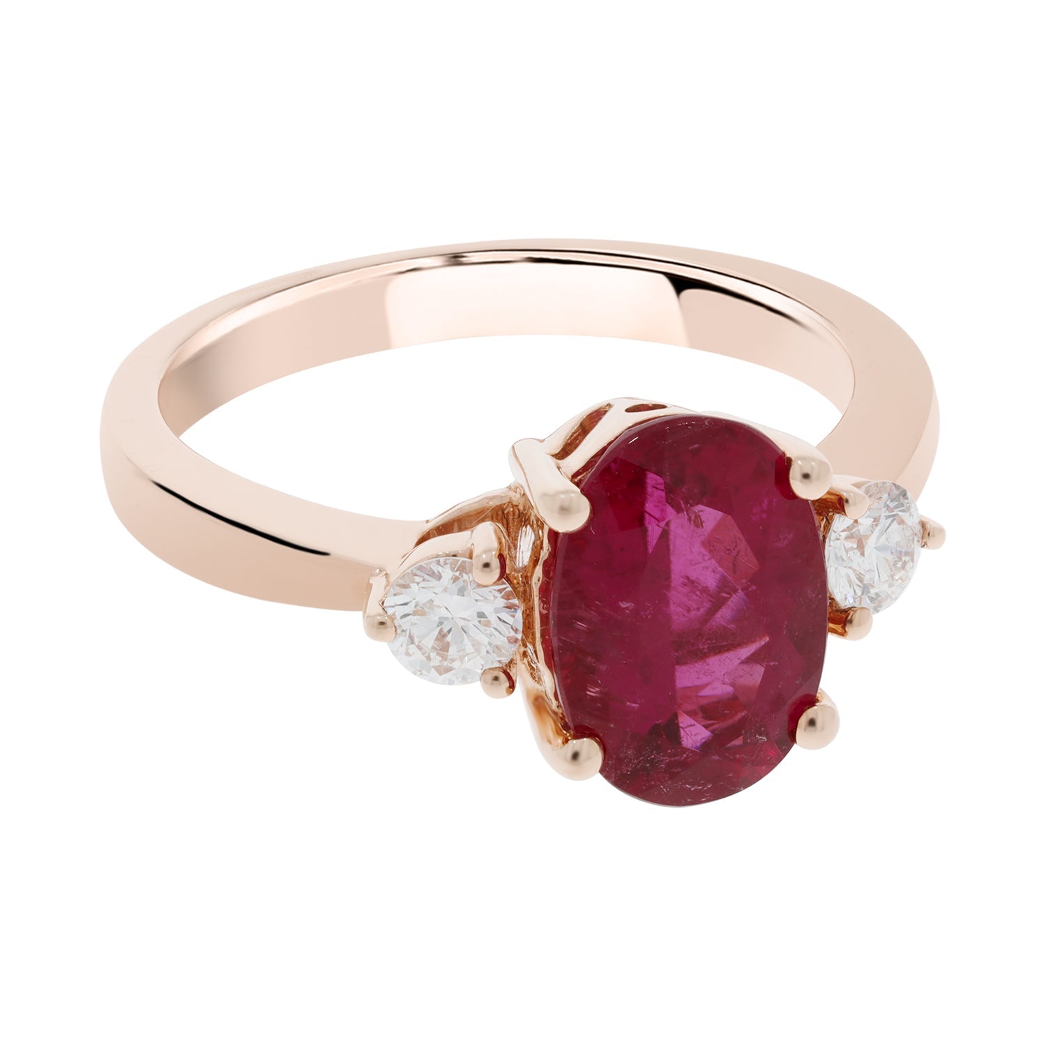 Styled for fashionistas, this ring exhibits a captivating design. It's interesting to see the lovely pattern in 14k rose gold. The striking pattern is embellished with Rubellite and round Diamonds for added luxury. Stun everyone with the shimmering beauty of this ring.