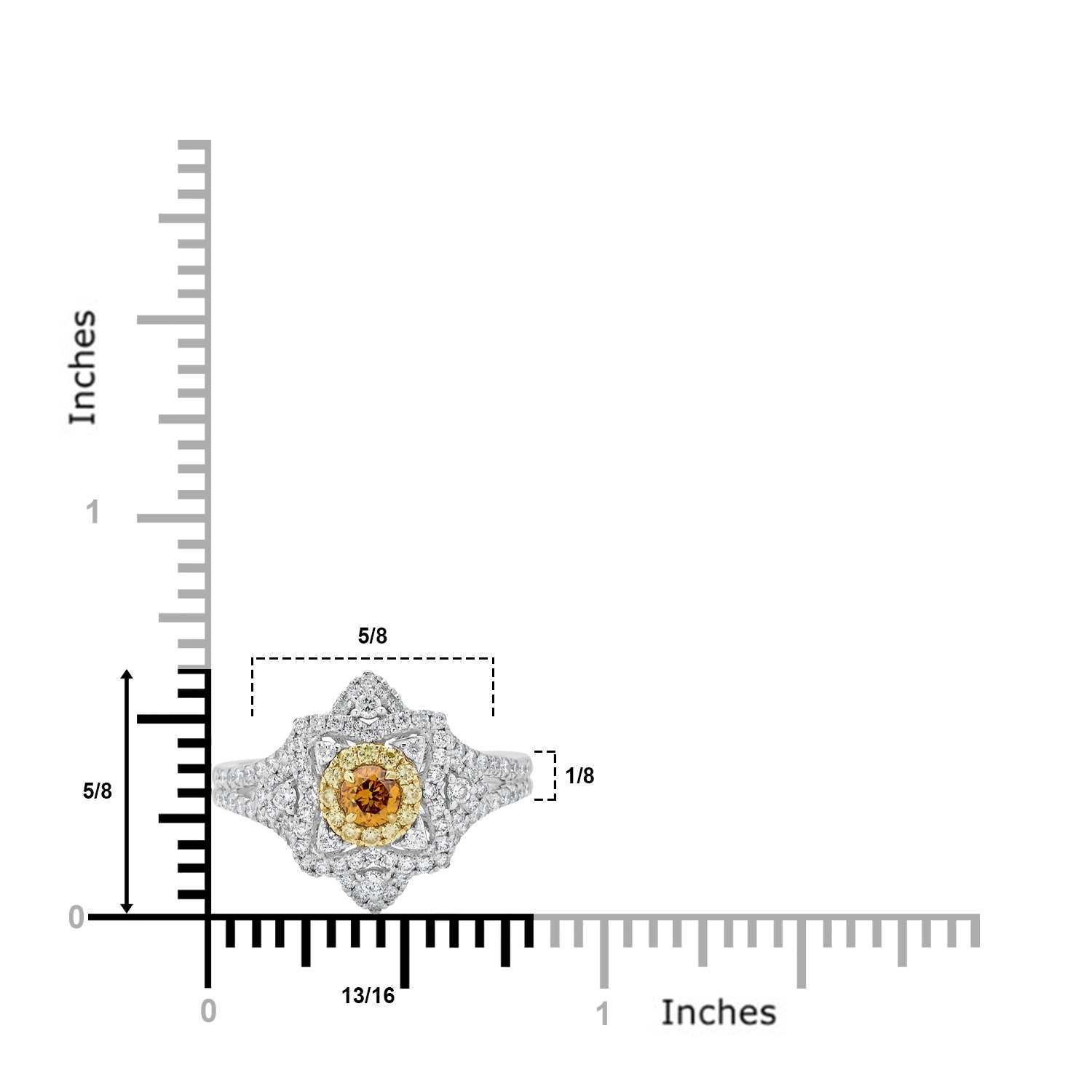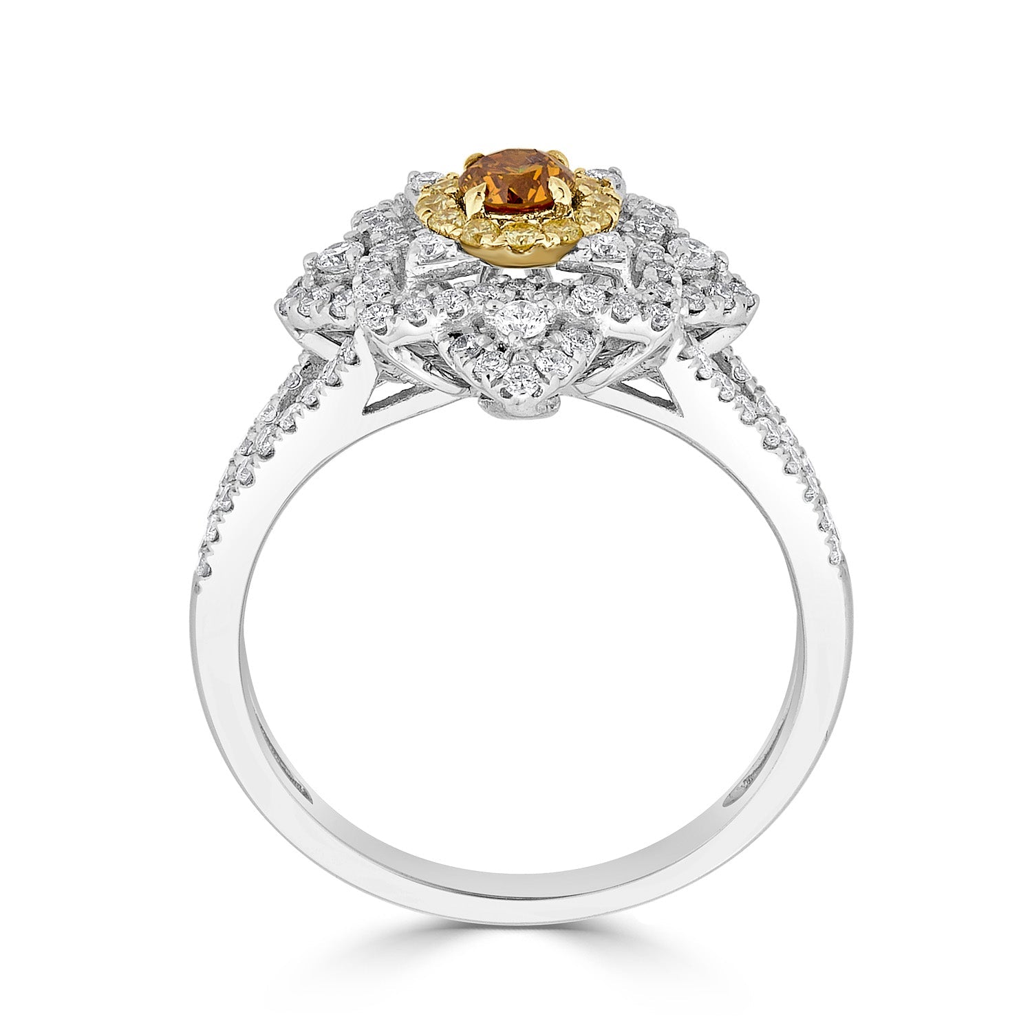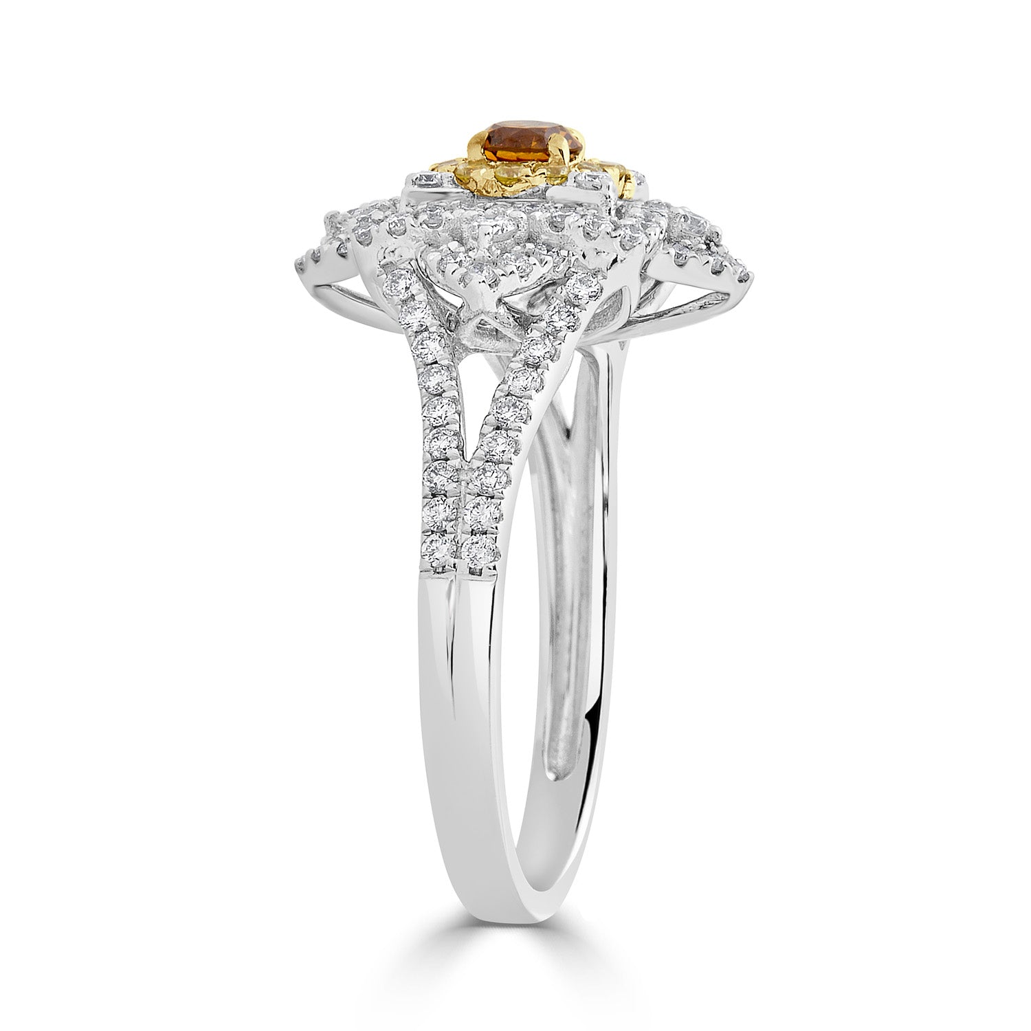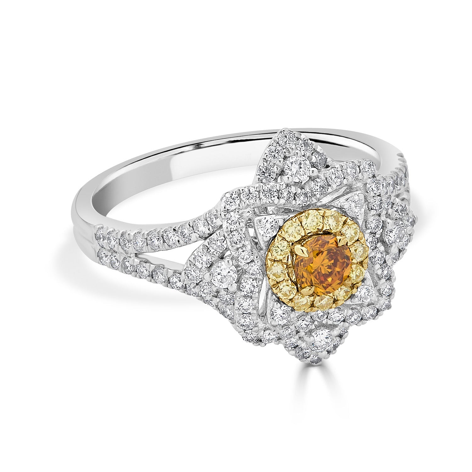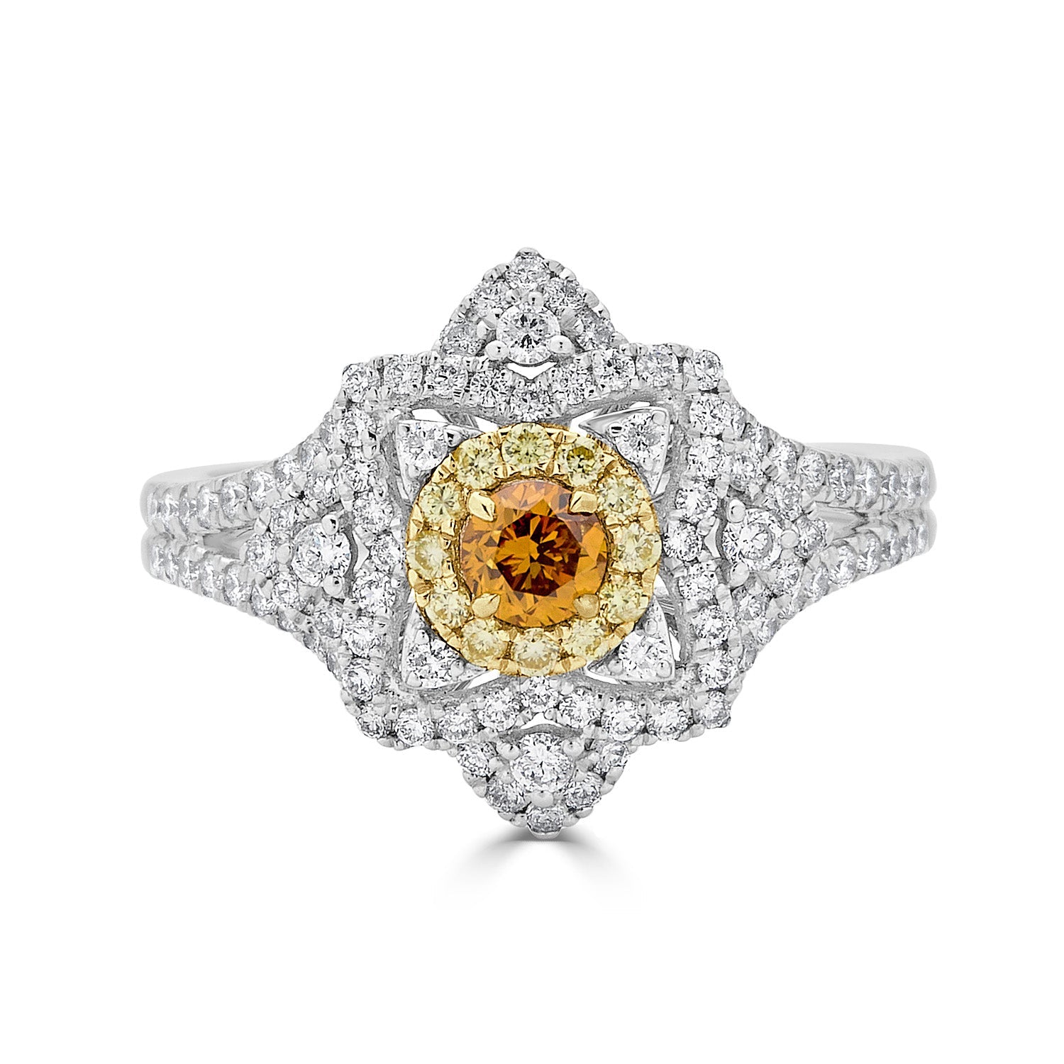 This ring is crafted in 14k two-tone gold with luxury-style and set with an orange Diamond and round accent Diamonds is perfect for lending a sparkling look to your party attire.