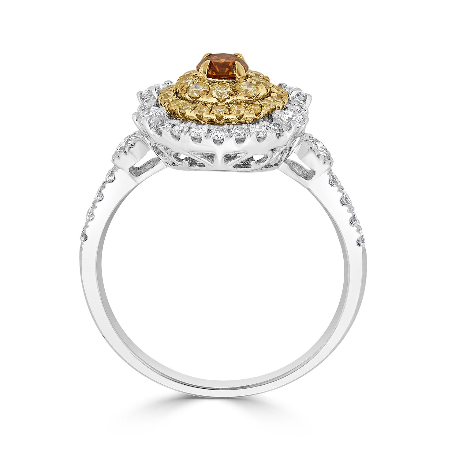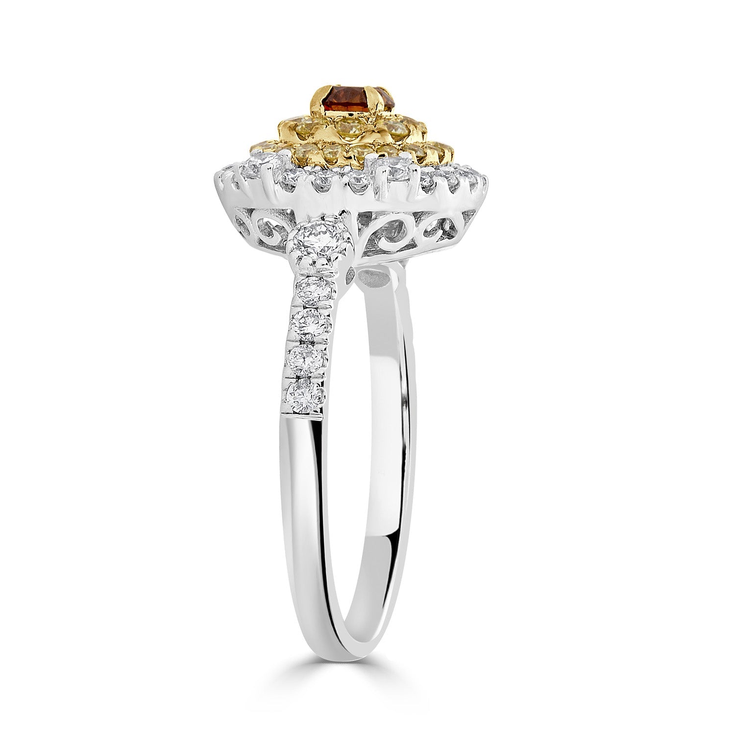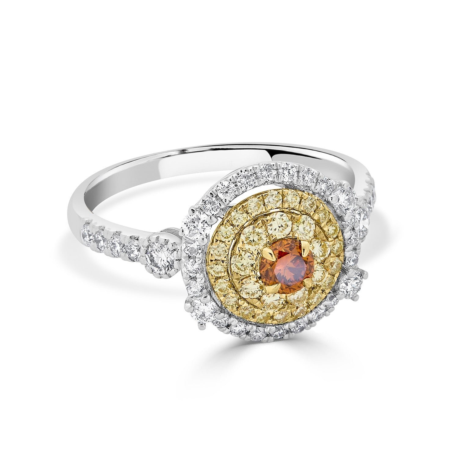 Featuring an eye-catching world-class design, this luxury-style ring will add a fine finish to your outfit. This 14K two-tone ring that is set with an orange Diamond and round accent Diamonds.