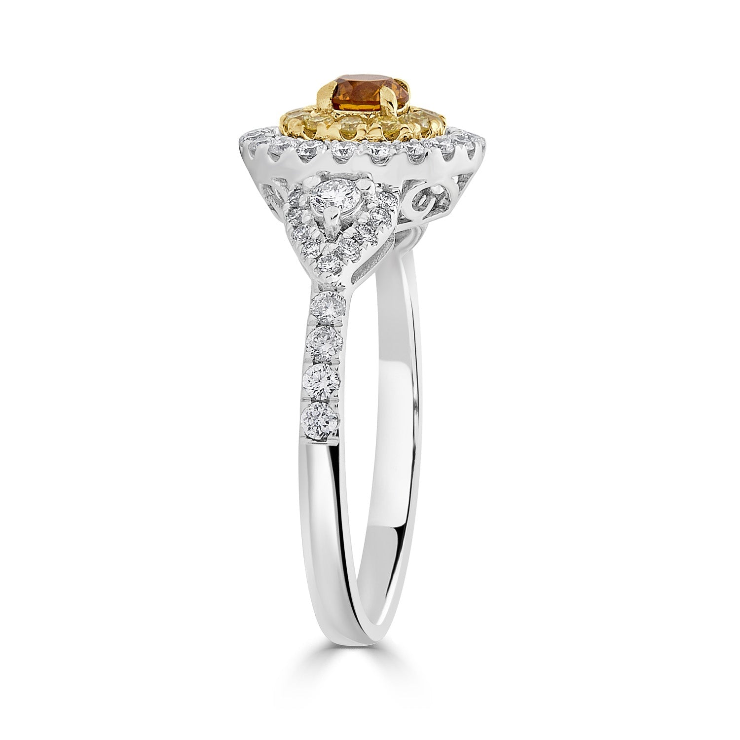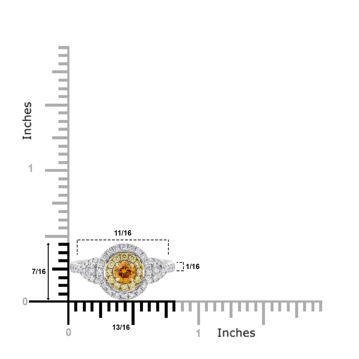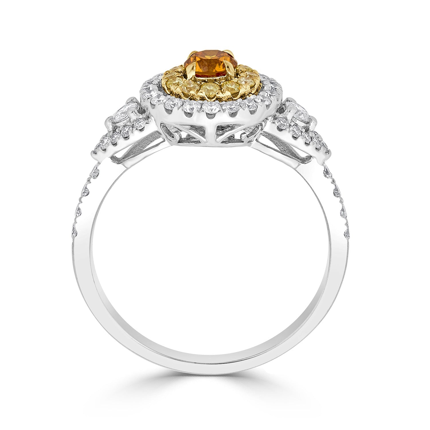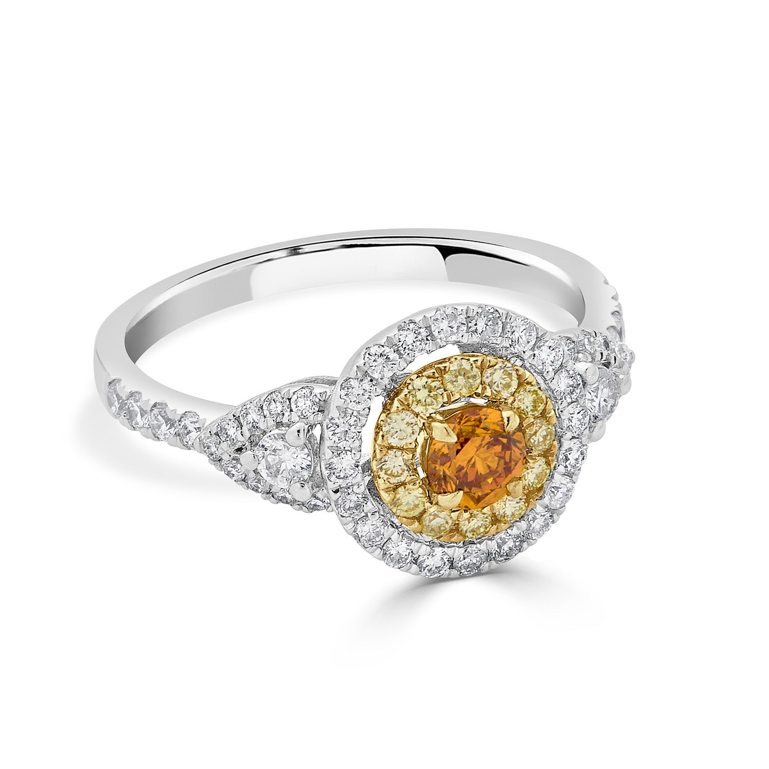 Crafted from a 14k two-tone gold, this ring is luxurious. The superb design is styled impeccably with an orange Diamond and round accent Diamonds for emanating class and style.