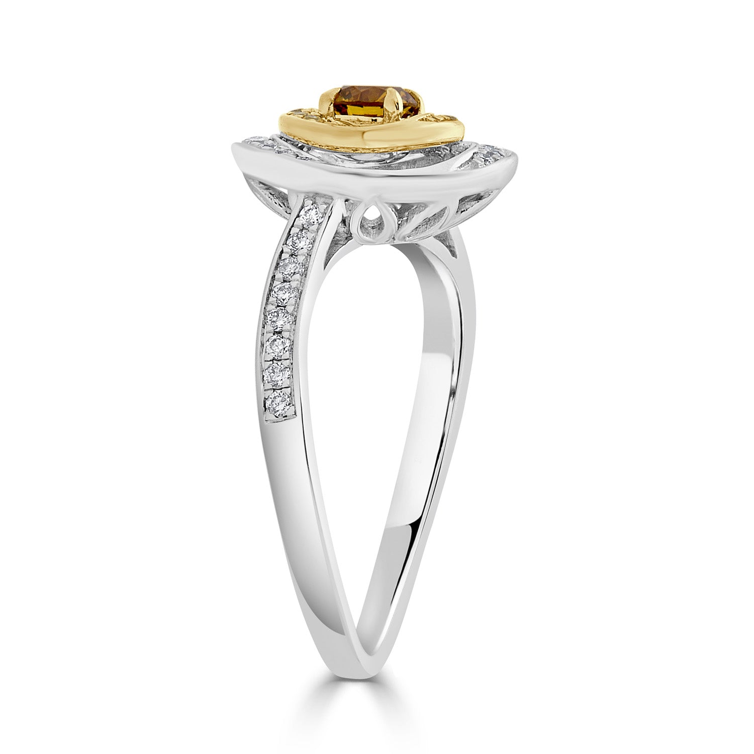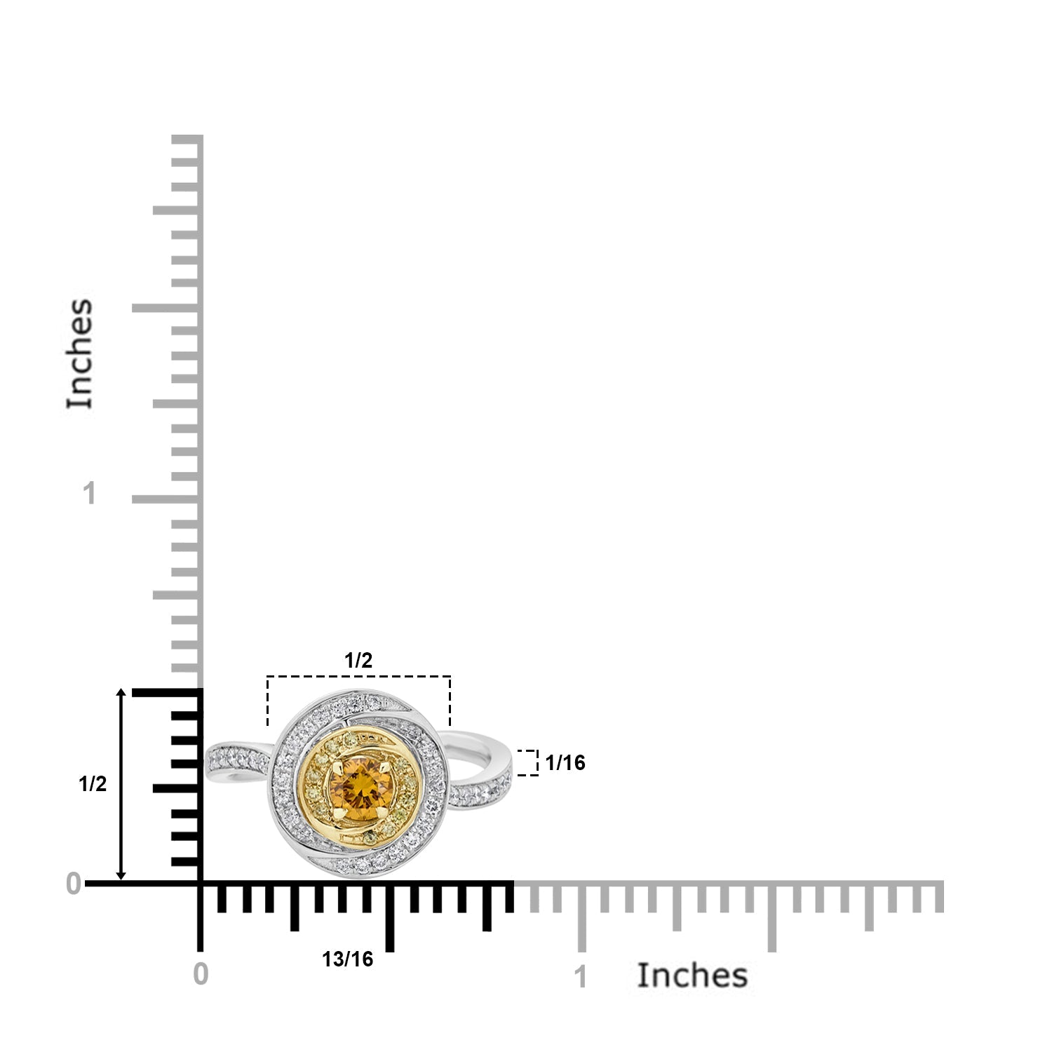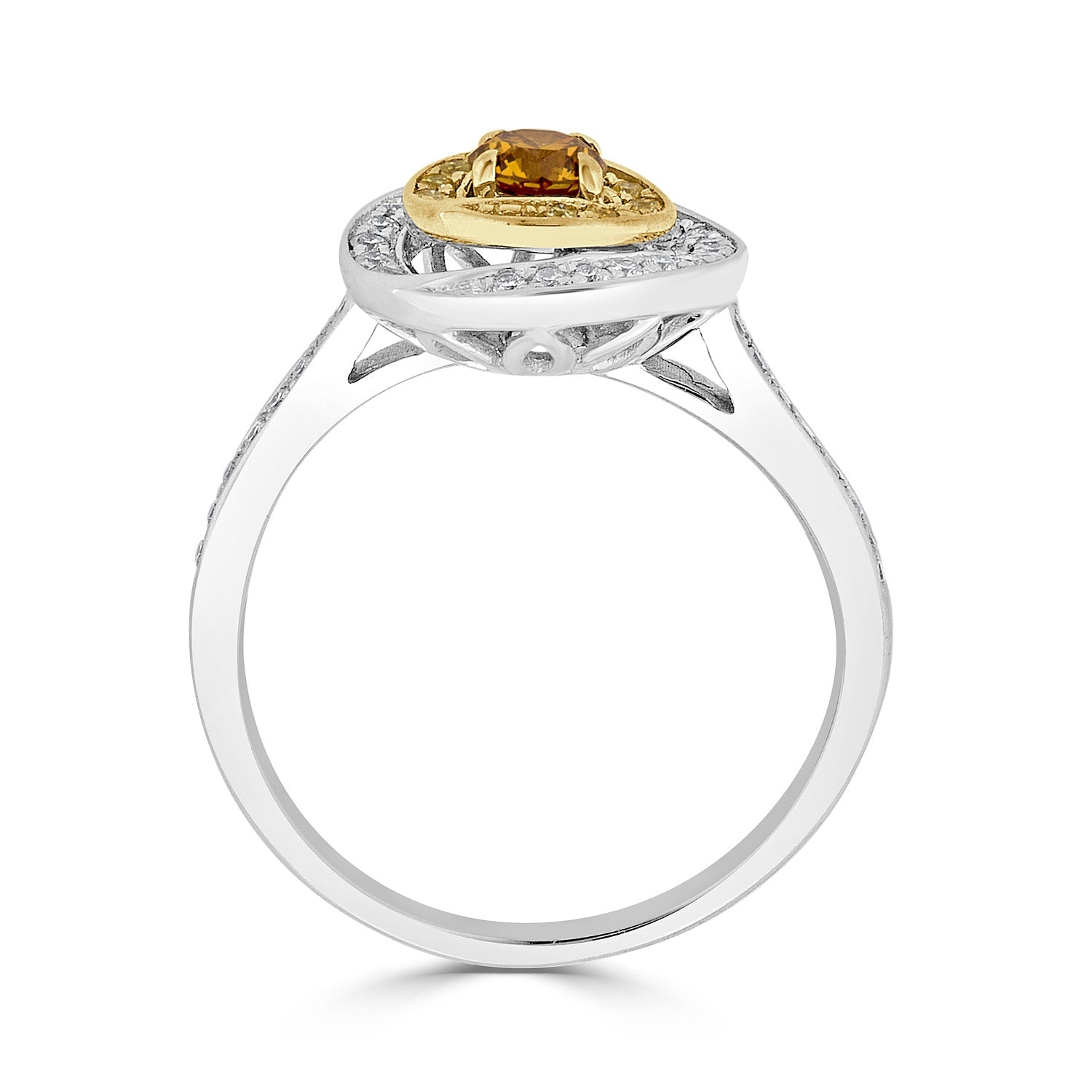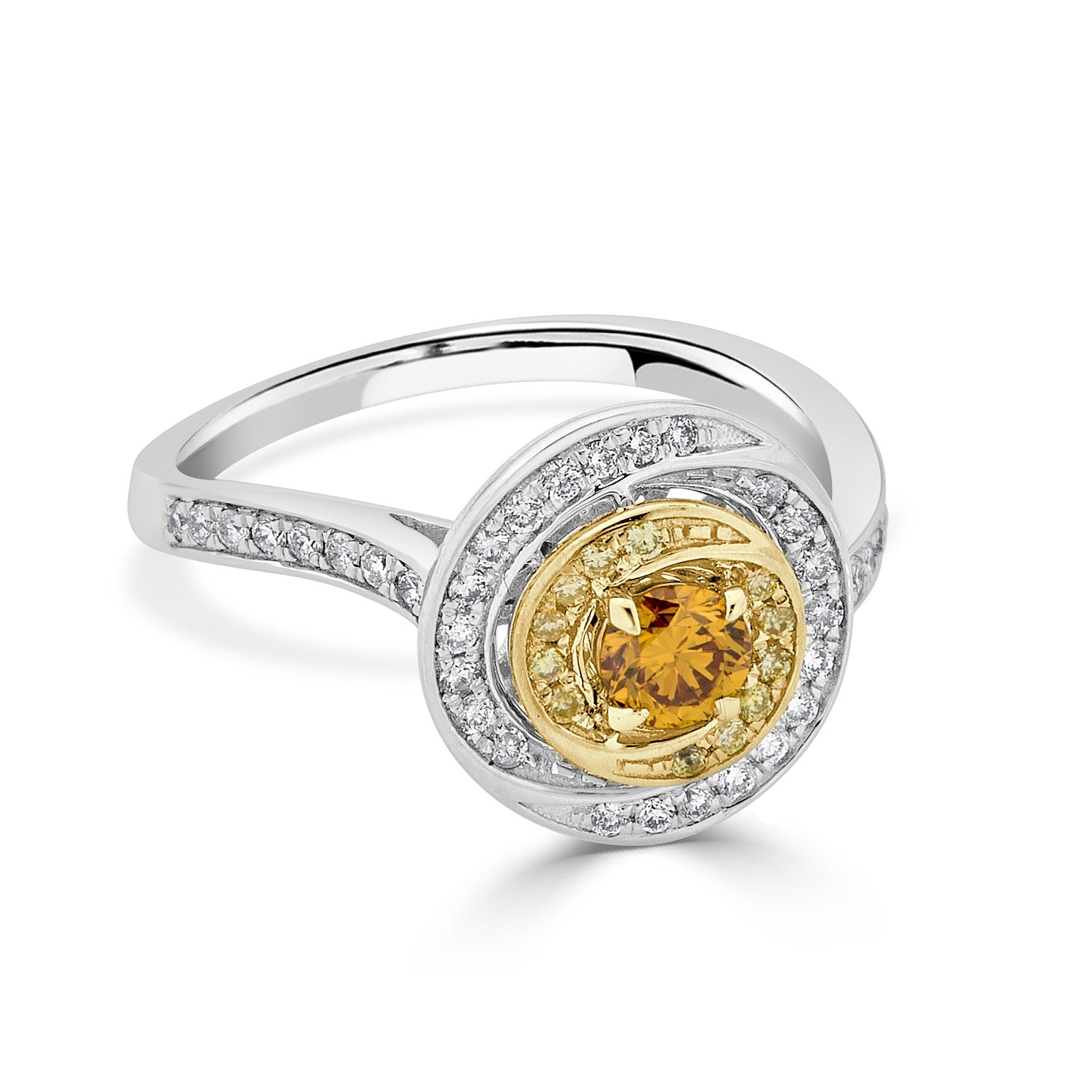 Designed from 14k two-tone gold, this ring is perfect for special occasions. The high-class interesting design is well crafted and set with orange Diamond and round Diamonds to add a touch of sparkle to your overall look.
