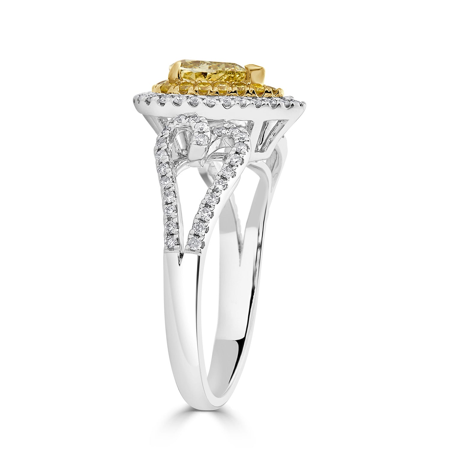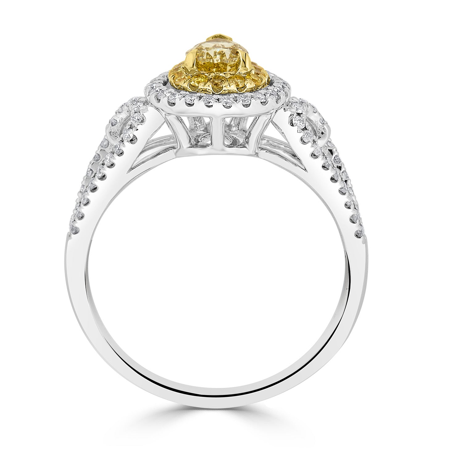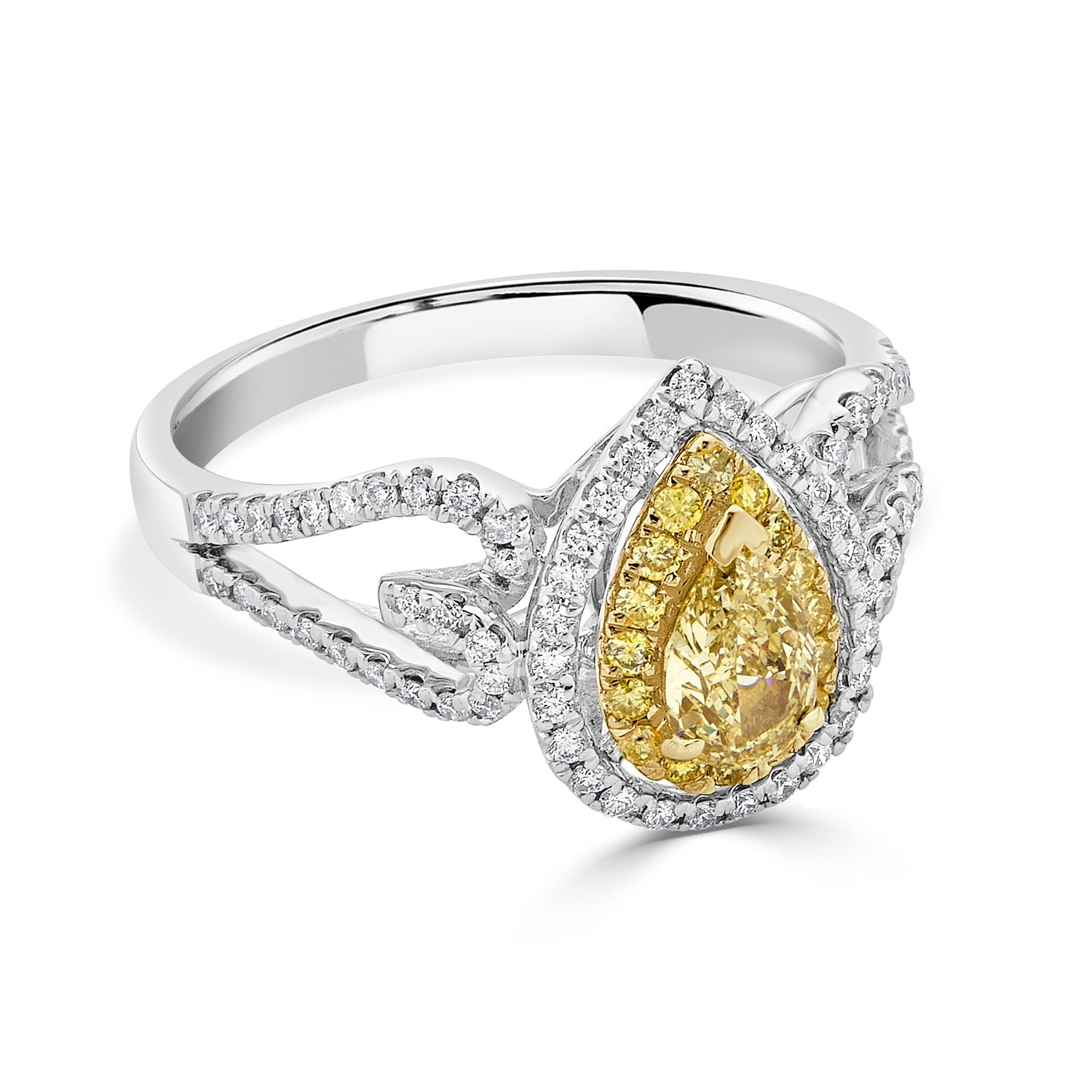 Designed With A Striking Pear Cut Diamond, The Radiance Of This Ring Comes From The Lustrous 14k Two-tone Gold And Is Enhanced Further By The Dazzling Round Cut Diamonds Around It.
