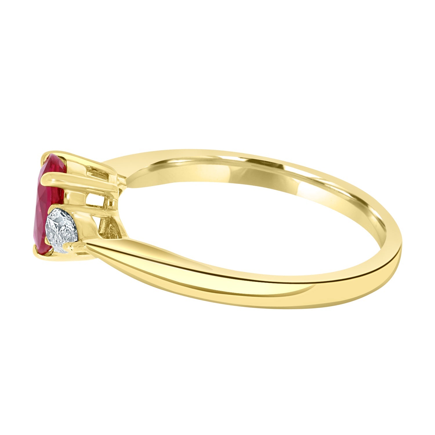 Dsigned With A Marvelous Oval Cut Ruby, This Breath-Taking Ring Is Designed With 14K Two Tone Gold That Adds To Its Brilliance. Surrounded By The Shimmer And Glitter Of Pear Cut Diamonds, Wear It To Any Occasion With Confidence.