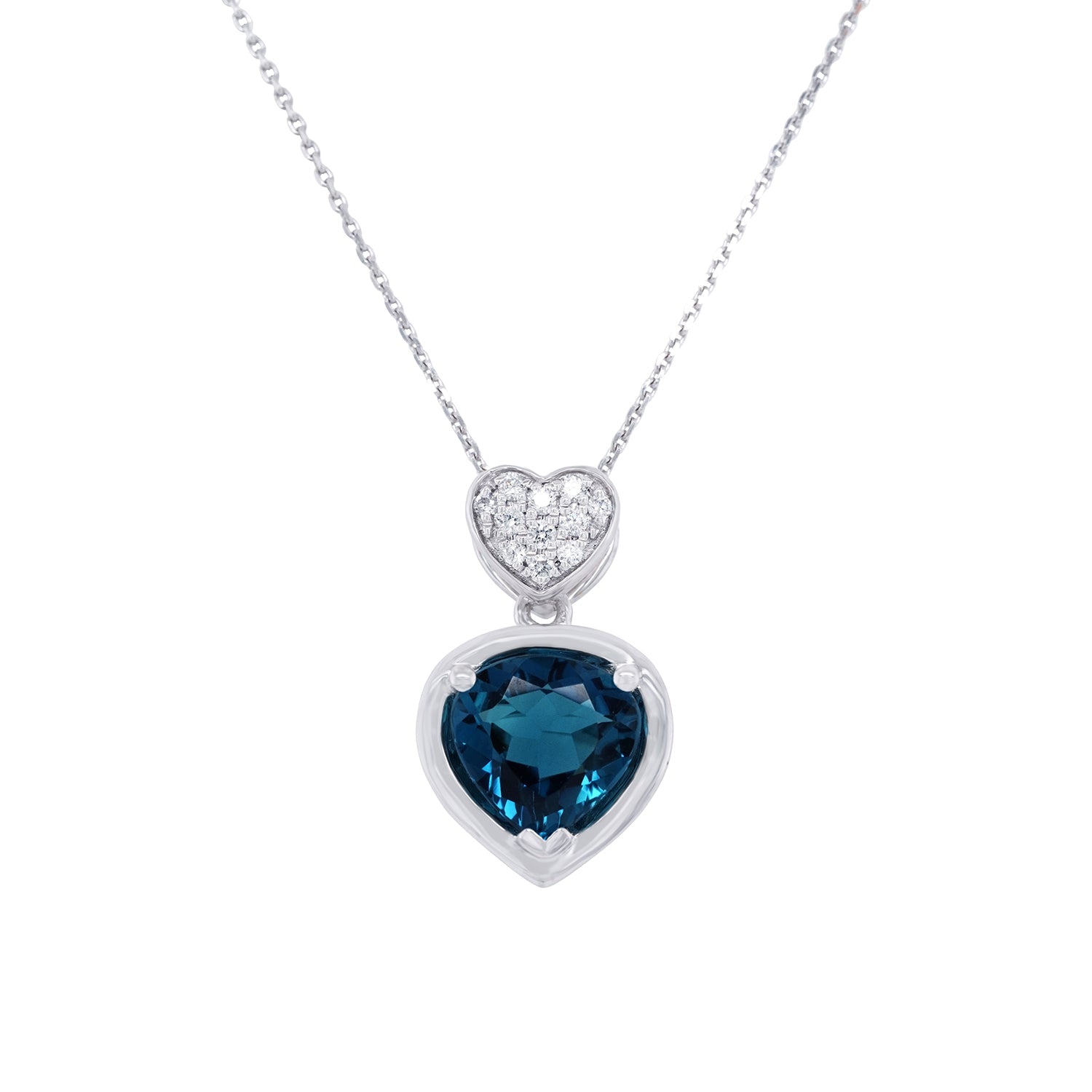 Crafted in 14K white gold, the endless luster of this enchanting pendant will leave you spellbound. Flaunting a marvelous Tourmaline in a stunning heart cut, the captivating hue of this gemstone adds radiance to any ensemble which is further highlighted by the shimmer of the round cut Diamonds that border it.