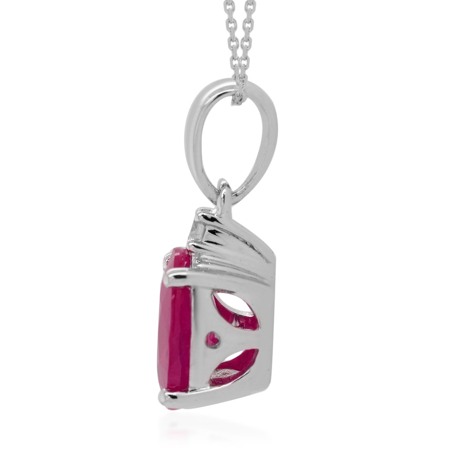 The 14k white gold pendant accommodates an oval cut Ruby and round cut Diamonds. Its refinement will leave you feeling satisfied with your new look whenever you wear it. For all you fashionistas who love to pamper yourselves, this work of art is truly magical and is perfect for all occasions.