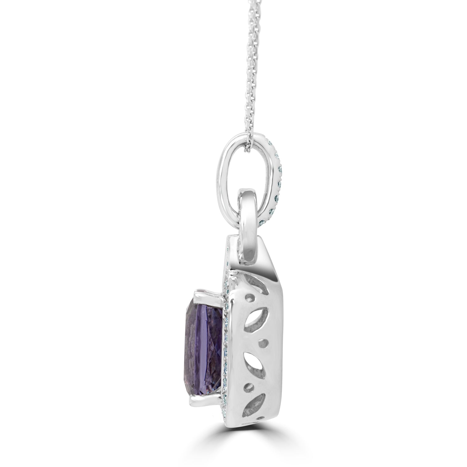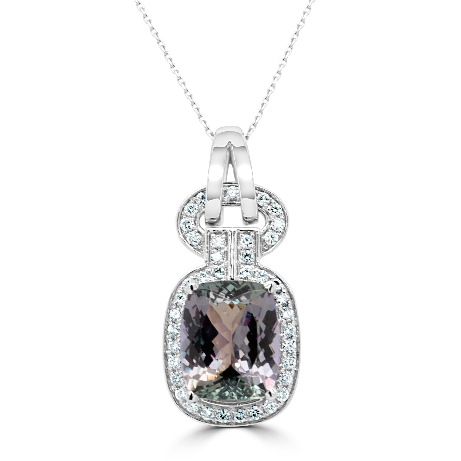 Fashioned From 14K White Gold, This Pendant Will Embody Celestial Charm In Your Outlook. Featuring A Distinctive Design That Is Set With Cushion-Cut Green Tanzanite And Round Diamonds, This Pendant Will Give Your Look A Sparkling Flourish.