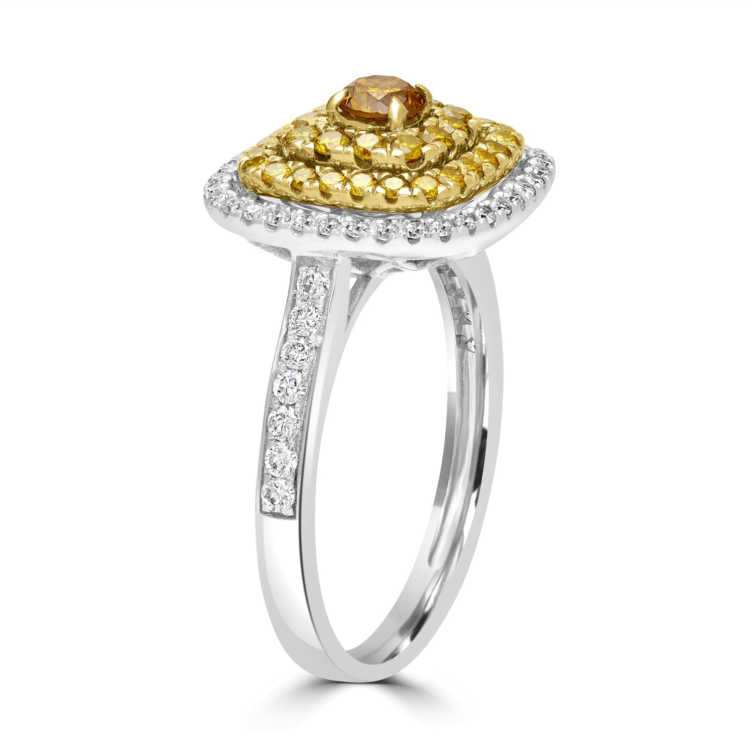This stylish 14K white gold ring is set with a gorgeous round-cut orange Diamonds and round Diamonds that sparkle.