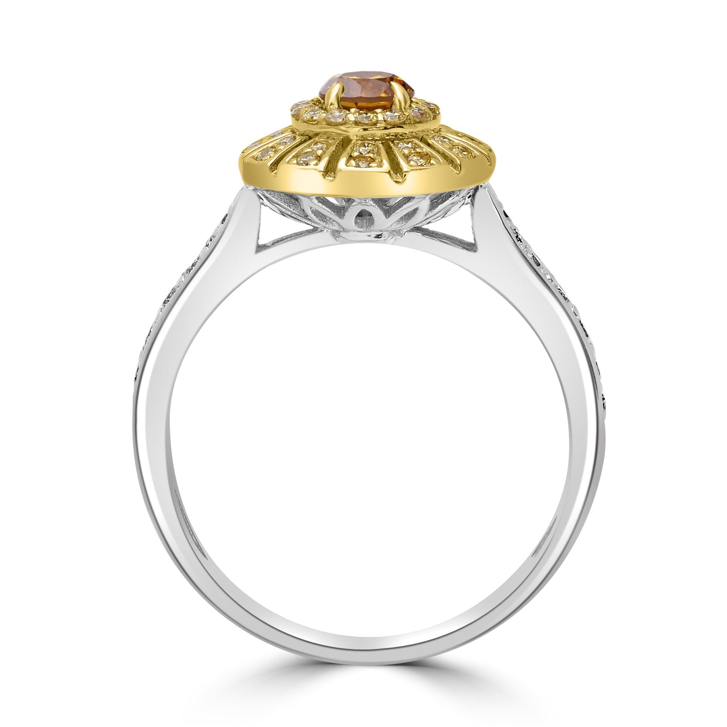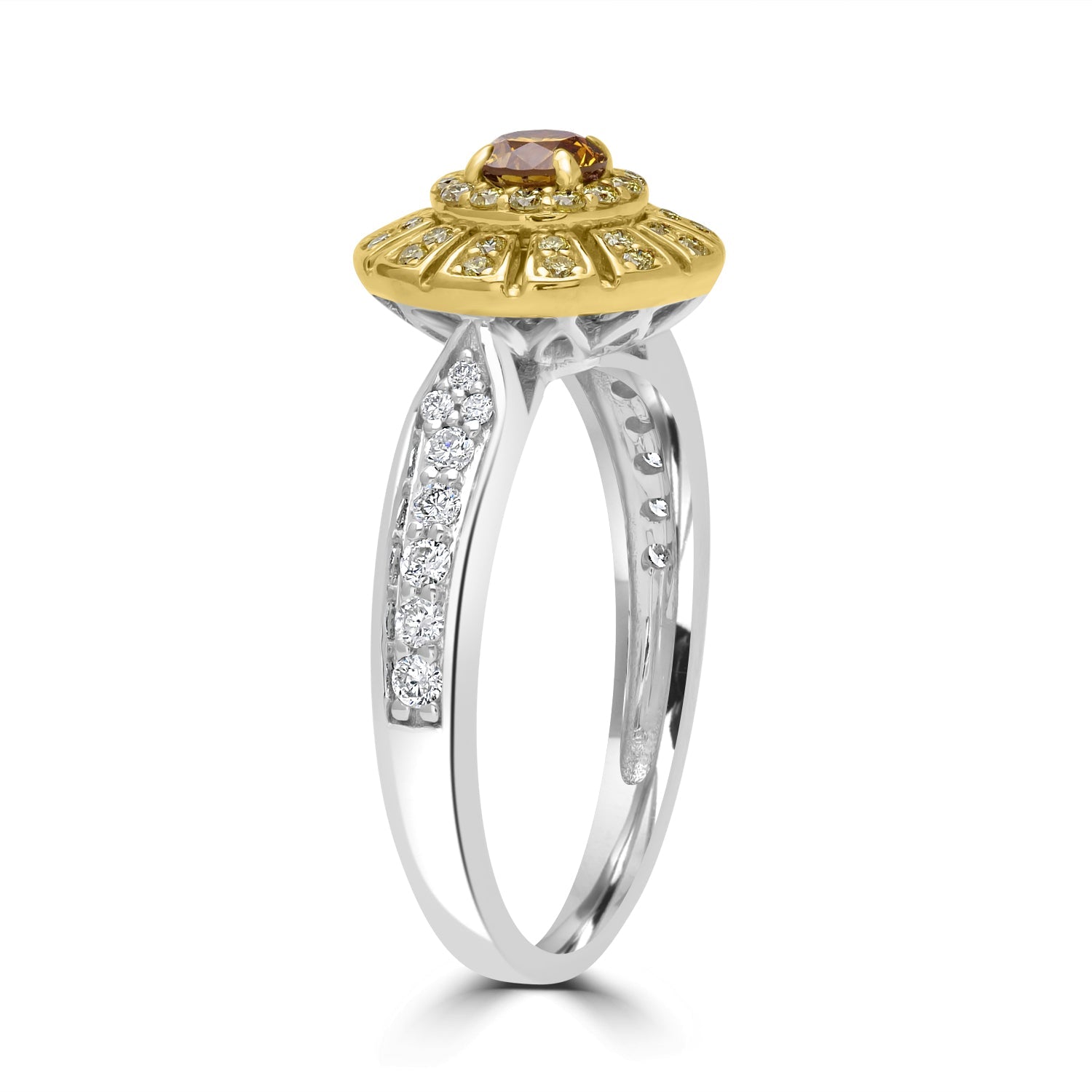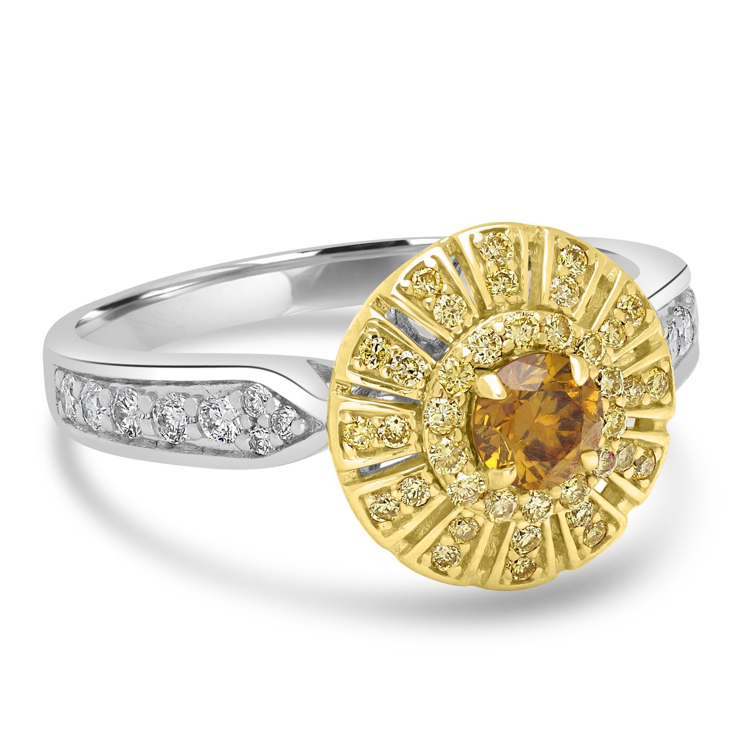 "Add a touch of mystique and glamour with this beautiful 14k white gold ring. The stunning round-cut orange Diamond and round Diamonds add an unforgettable sparkle that will stun everyone around you."
