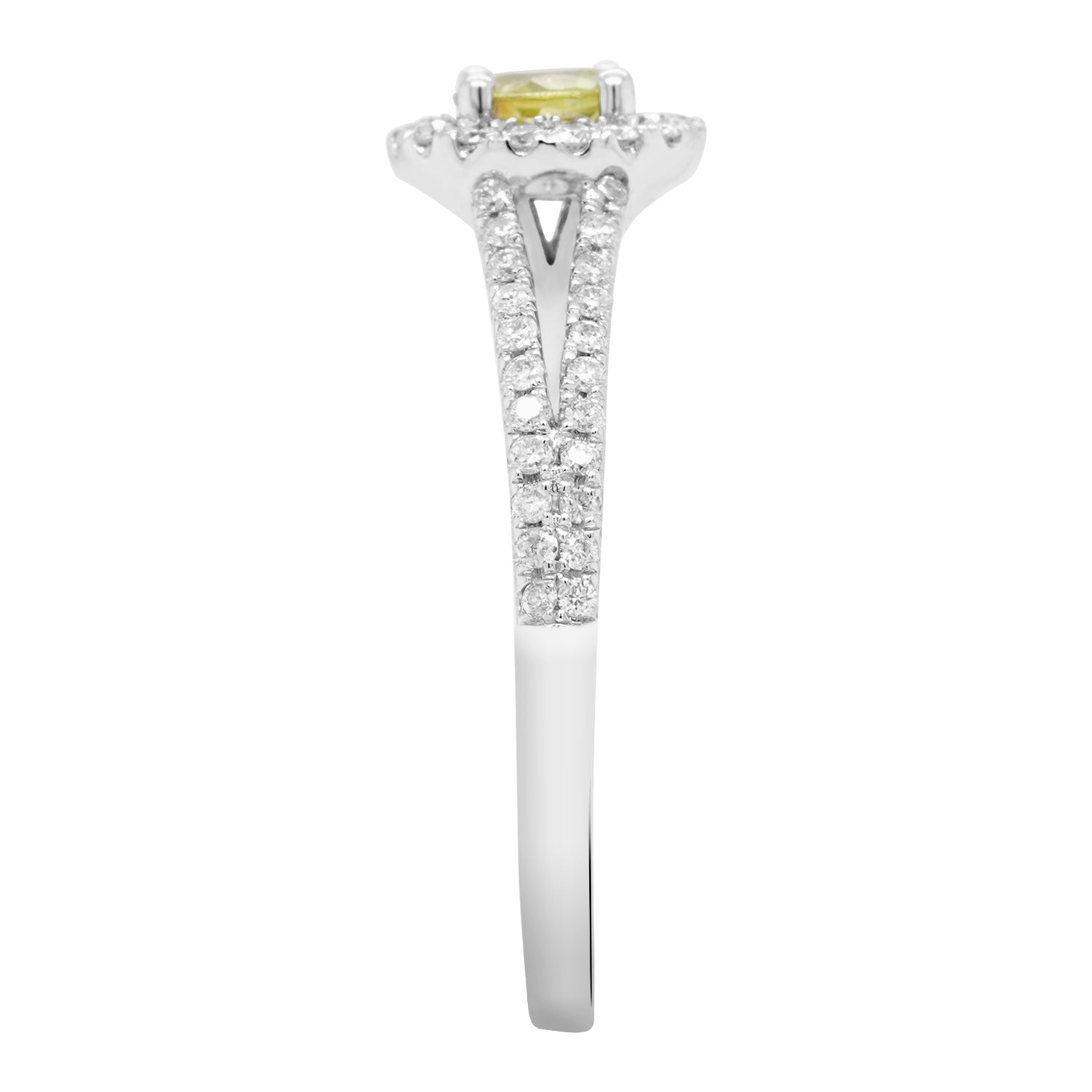Designed With 14k White Gold For A Rich Look, This Enchanting Ring Is Set With A Magnificent Round Cut Sphene. Surrounded By Charming Round Cut Diamonds That Highlight Its Brilliance, The Endless Shimmer Of This Enticing Ring Will Give Your Ensemble A Radiant Finish That Is Truly Unforgettable.