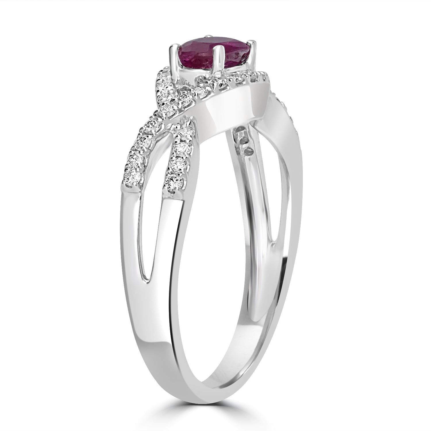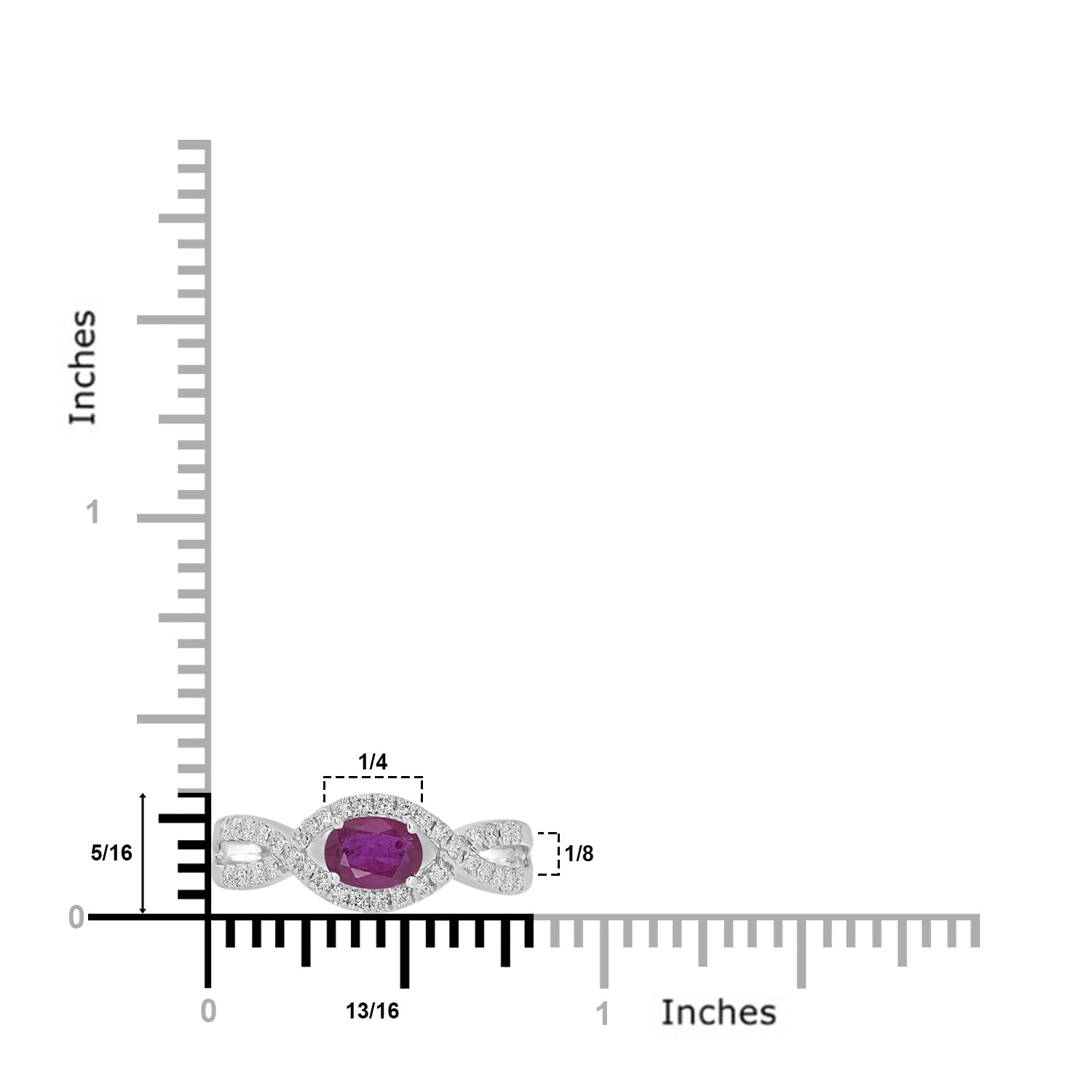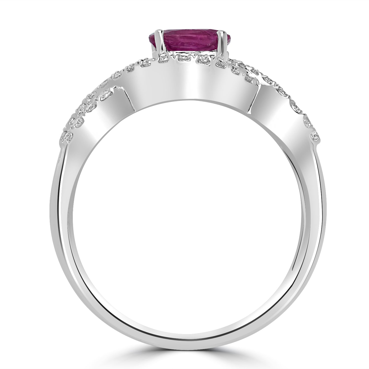 This exquisite ring is designed to with a fabulous oval-cut Ruby and round Diamonds that are creatively set in 14k white gold to create a statement.