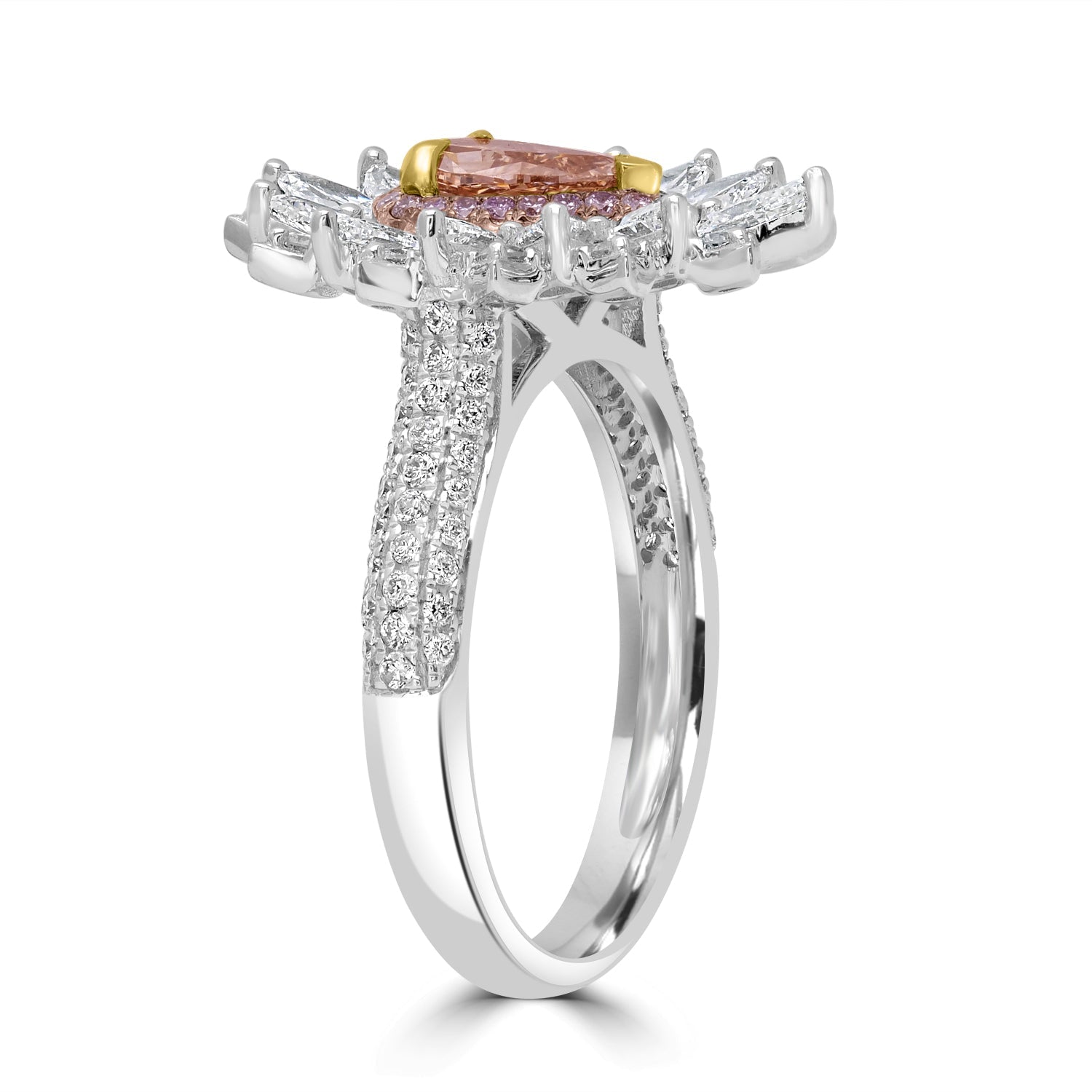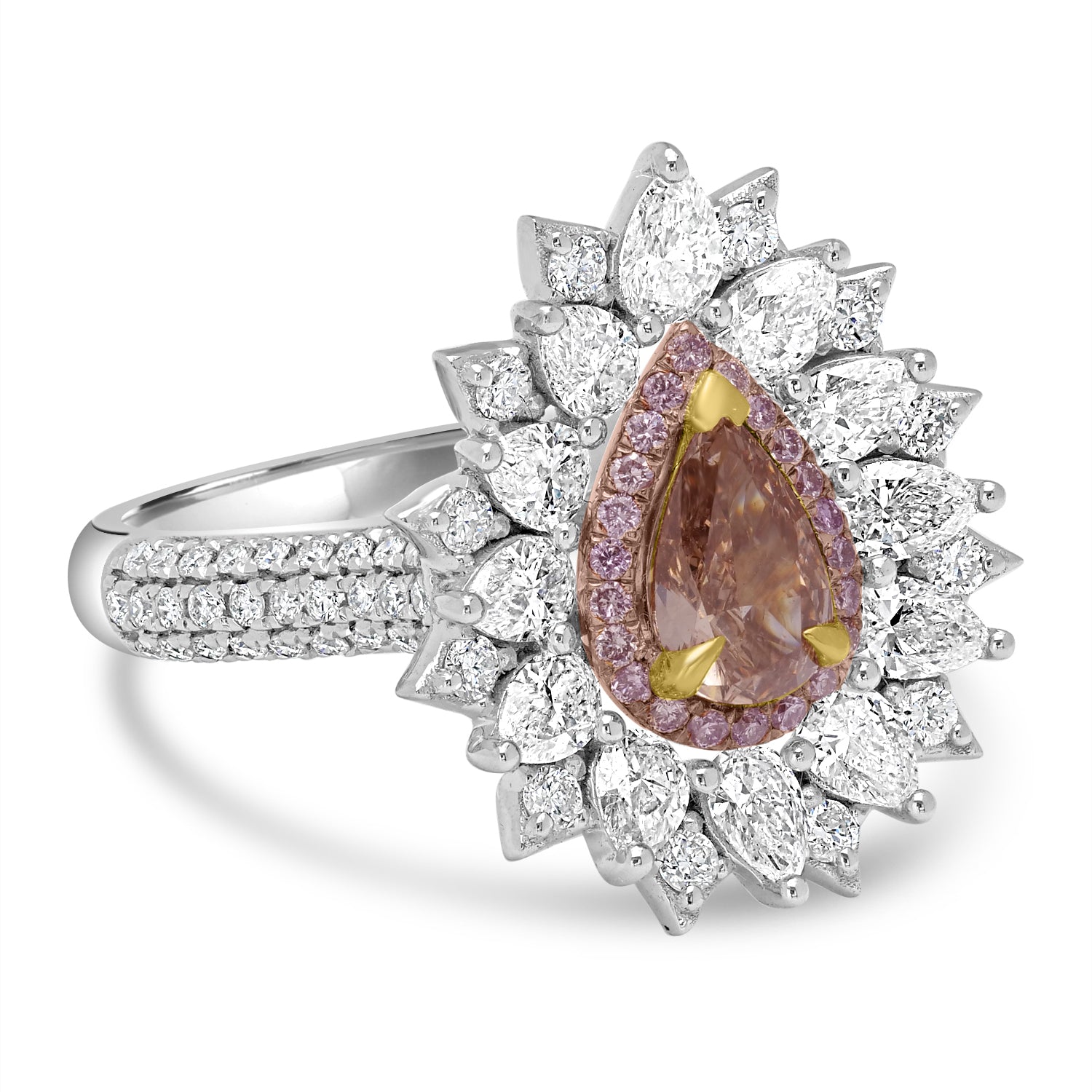 This sparkling ring is finely crafted with 14K white gold and set with pear-cut Diamond, surrounded by smaller Diamonds for versatile styling.