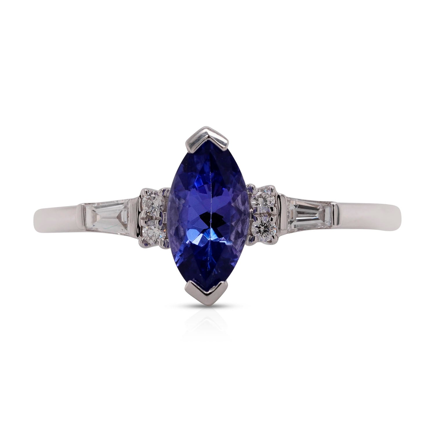 Made of 14K white gold, this magnificent ring displays world-class craftsmanship that is sure to leave you spellbound. Flaunting a gorgeous Tanzanite stone in a marquise cut, the highlight of this striking ring is the multi-shaped diamonds that add the requisite sparkle. A perfect blend of trendy and classic styles.!
