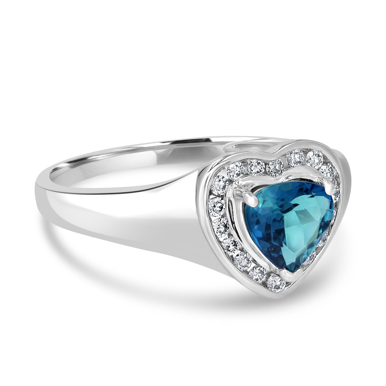 Crafted from 14k white gold and set with heart-cut Tourmaline and sparkly round Diamonds, this ring is perfect for parties and events.