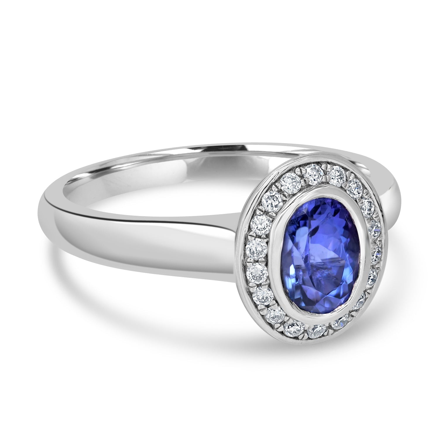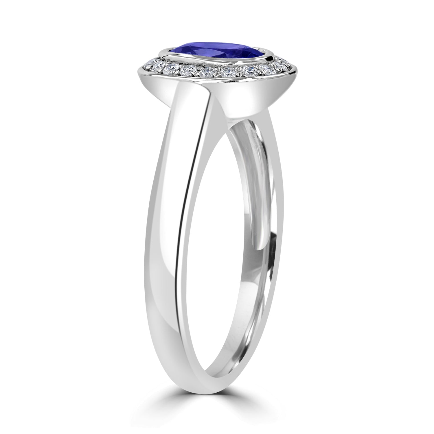 Set with a beautiful oval-cut Tanzanite, round Diamonds and 14k white gold, this ring is unique among jewelry lovers.