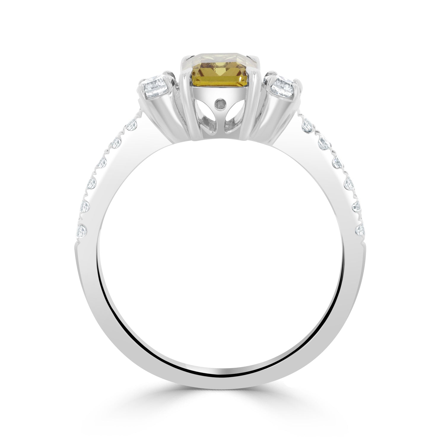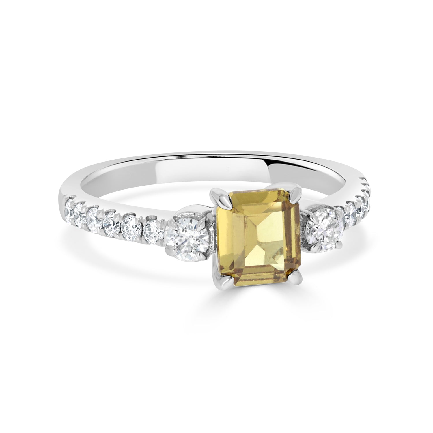 Featuring An Ultimate Design, This Luxury Ring Is Finely Crafted With 14k White Gold. You Will Like The Luxury Design That Sparkles With The Brilliance Of Emerald-cut No Heat Certified Sapphire And Round Diamonds.