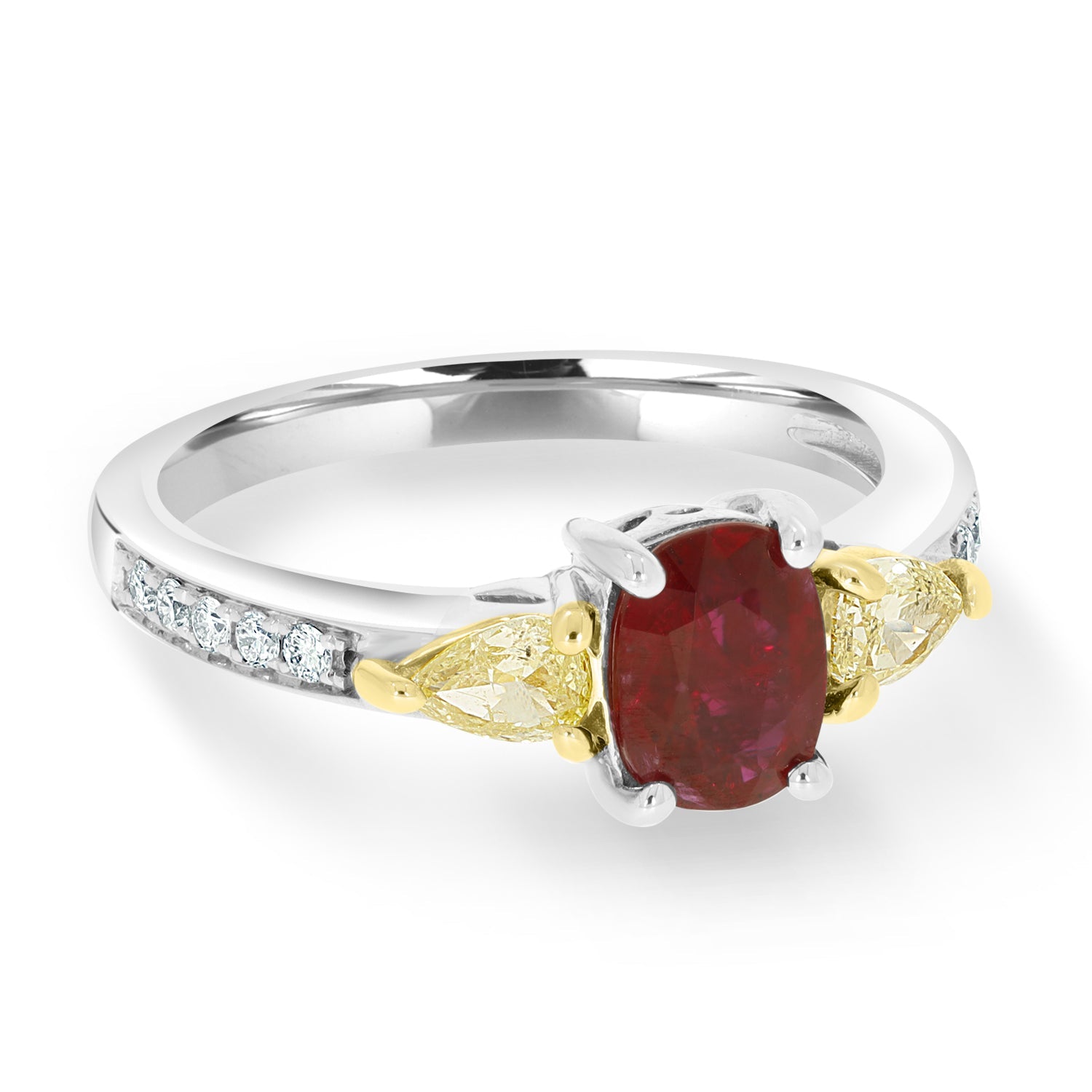 1.07Ct Ruby Ring With 0.54Tct Diamonds Set In 14K White Gold