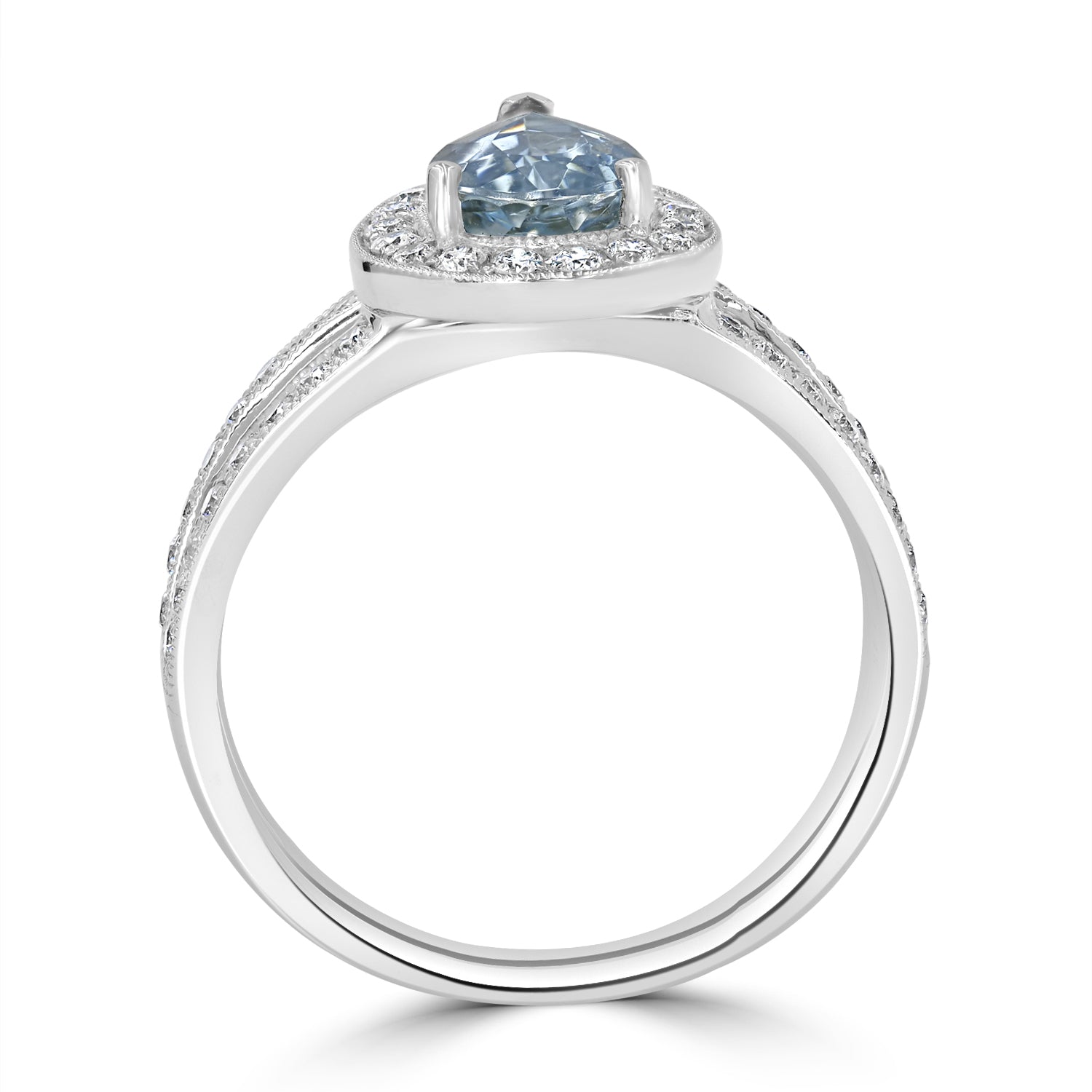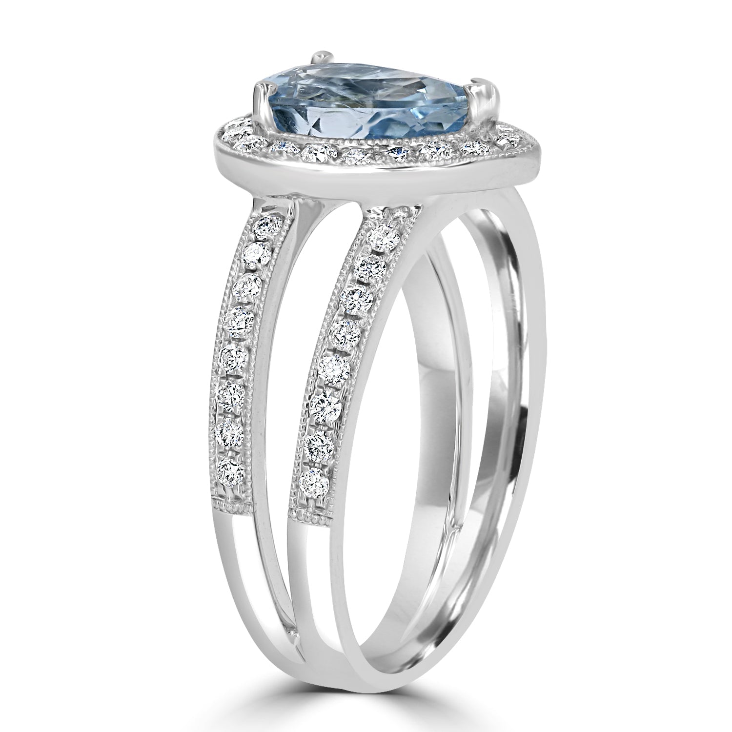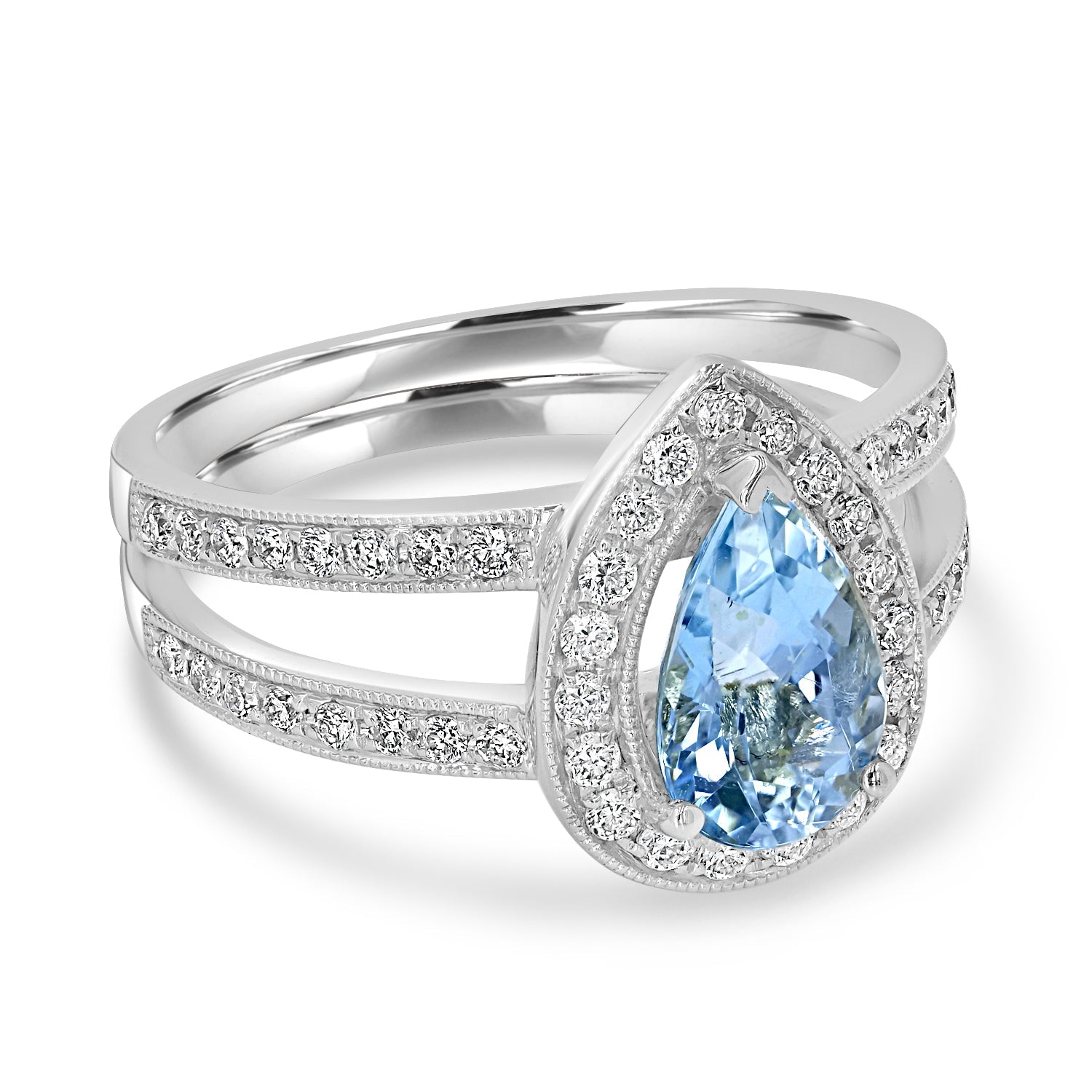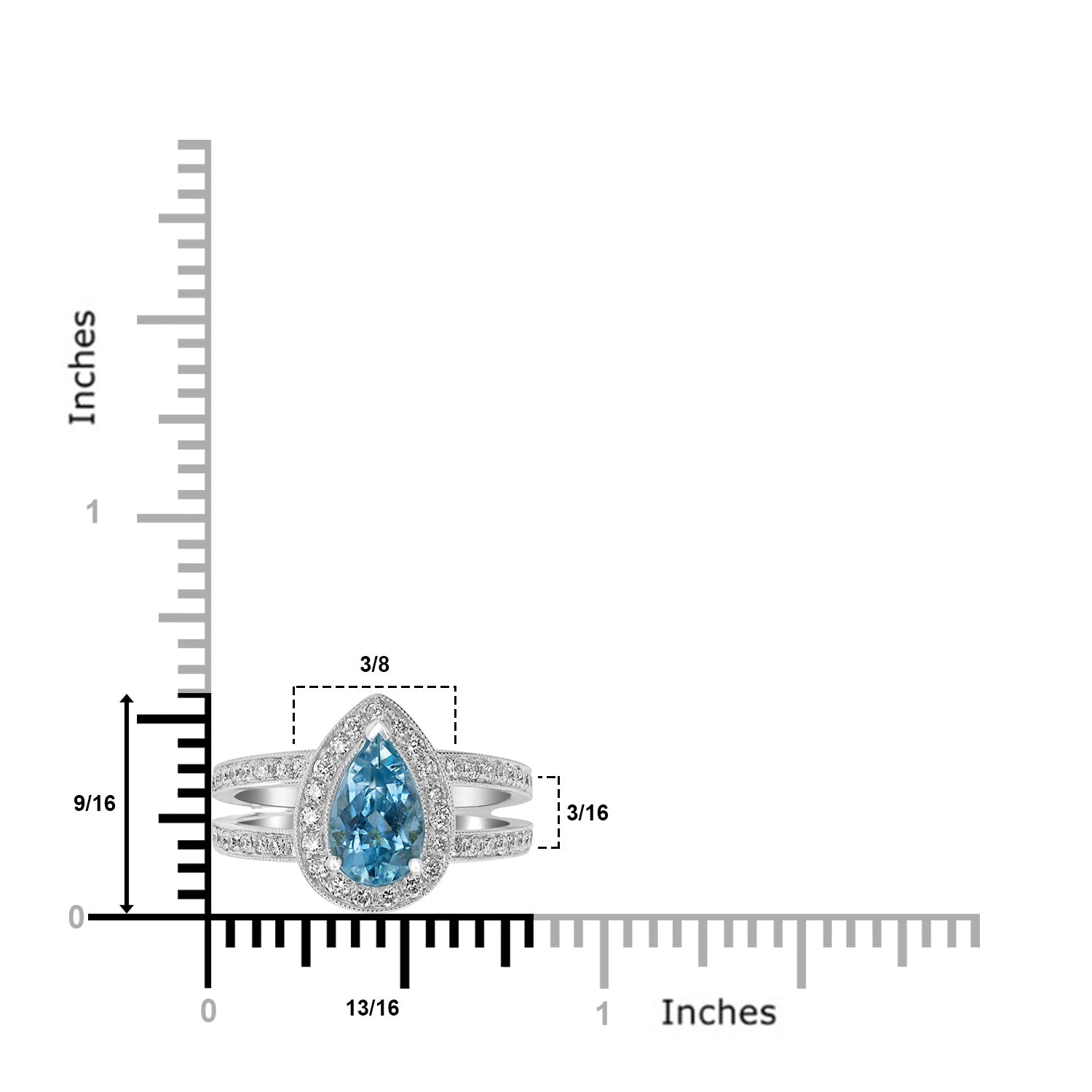 This eye-catching 14K White Gold ring is set with pear-cut Aquamarine and round Diamonds. It's the perfect piece for simple and grand events.