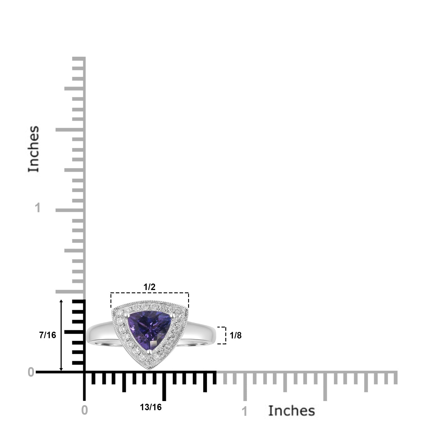 This iconic ring is crafted with 14K white gold that creates a dynamic shimmer and captivating shine in your look. The richness of the gorgeous trillion-cut Tanzanite and round Diamonds enhances the design and lends an endless shimmer.