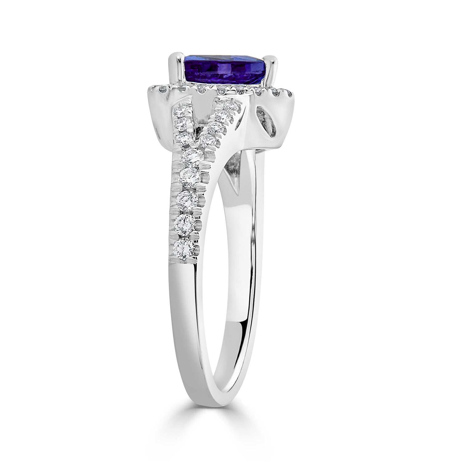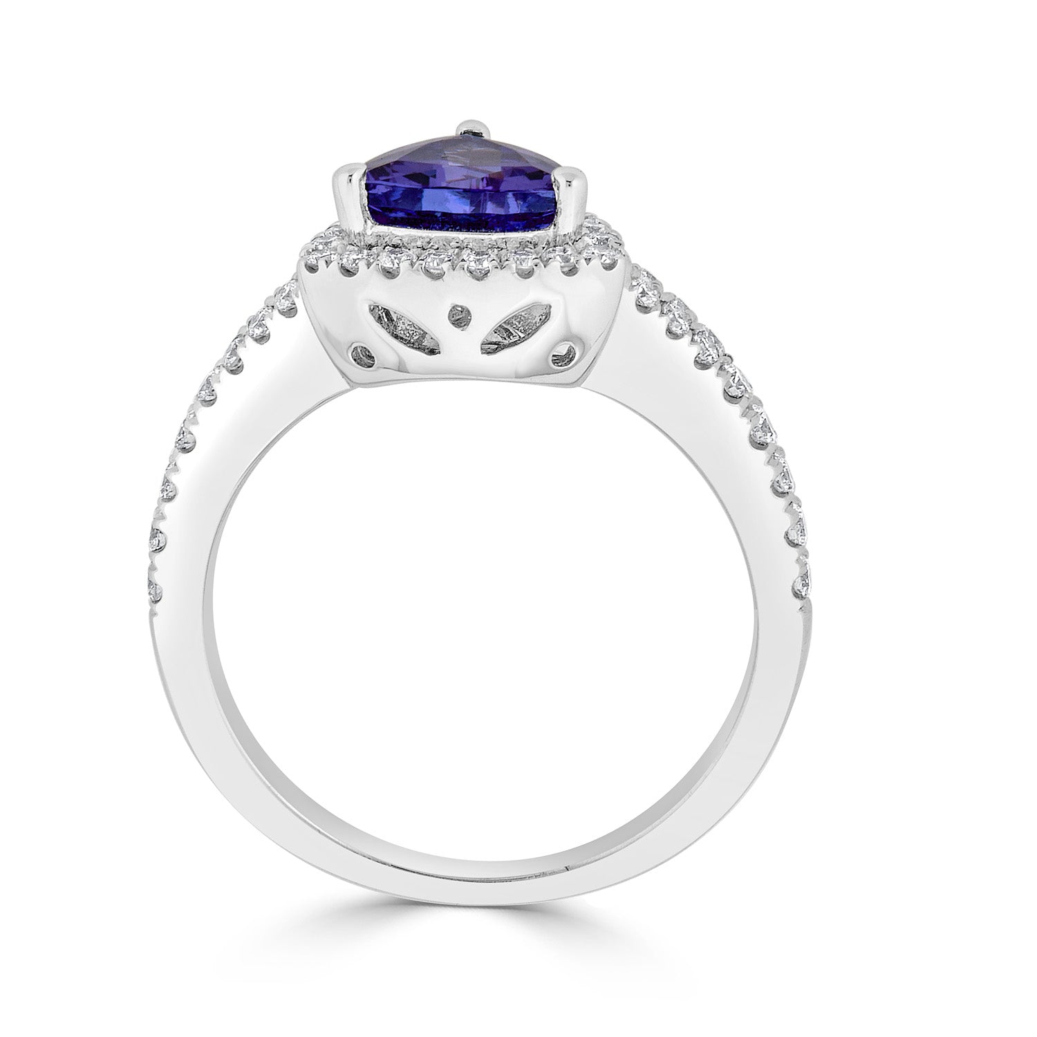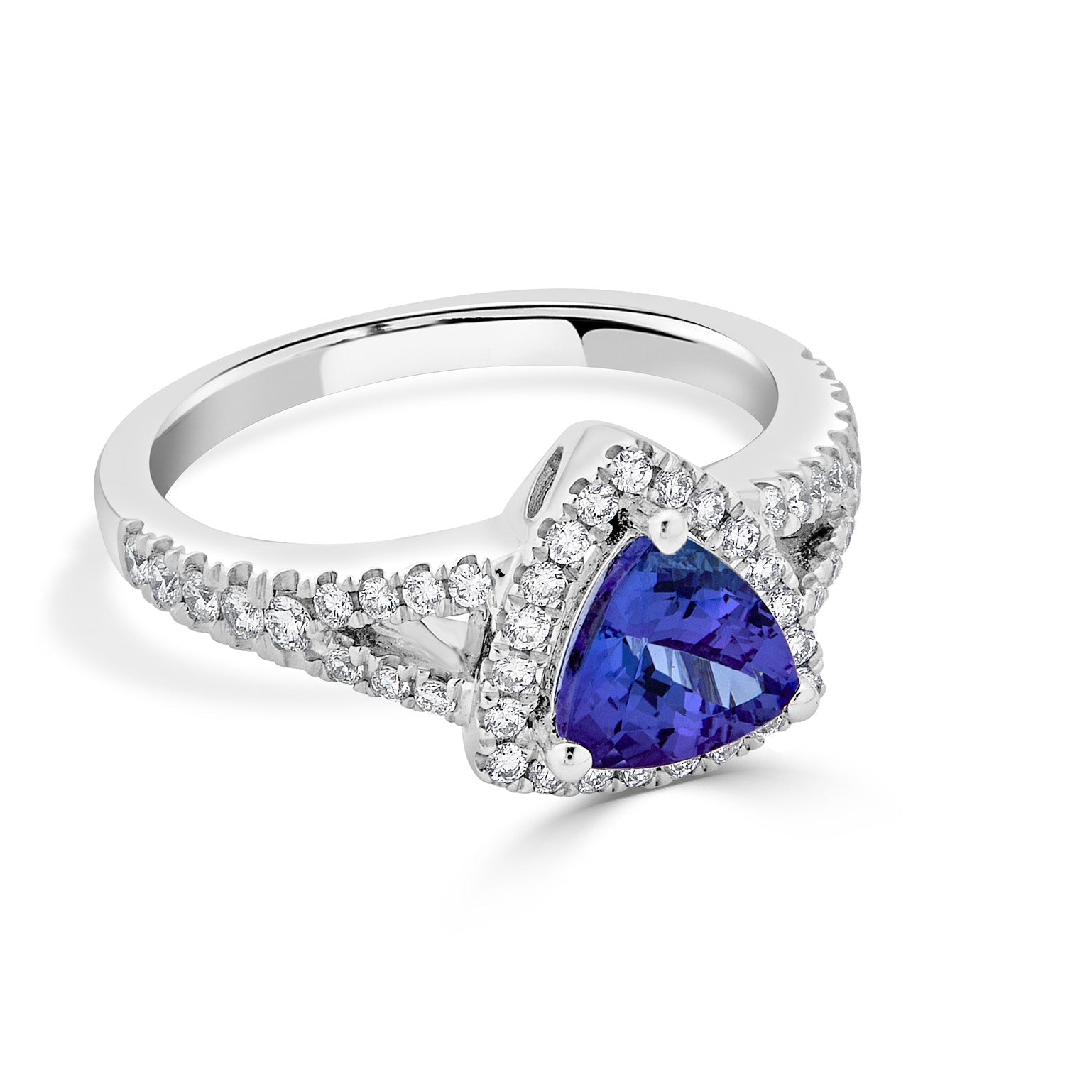 Designed From 14k White Gold And Set With Trillion Cut Tanzanite And Round Diamonds, This Ring Will Add Radiance To Your Natural Beauty. Fashioned To Exude Royalty And To Give A Unique Luxury Look!