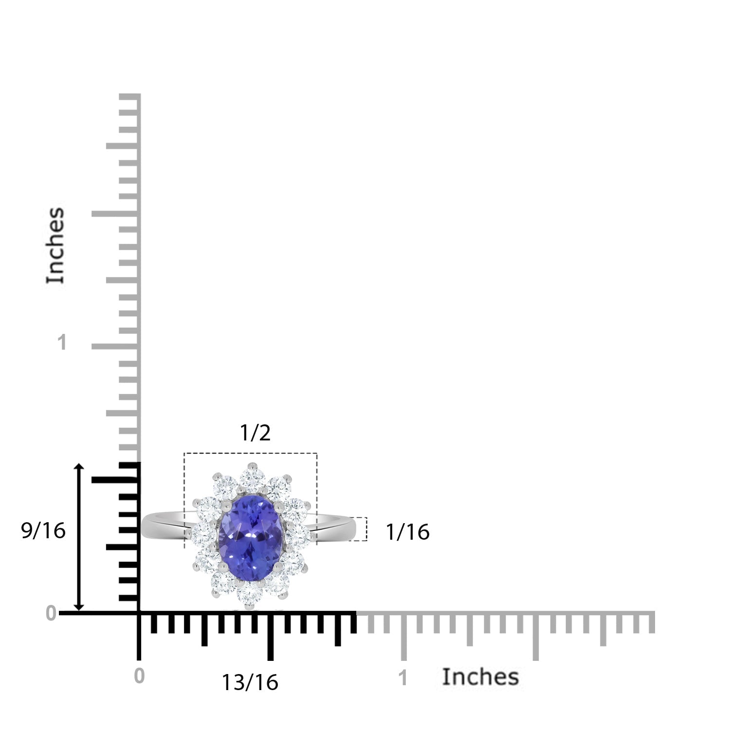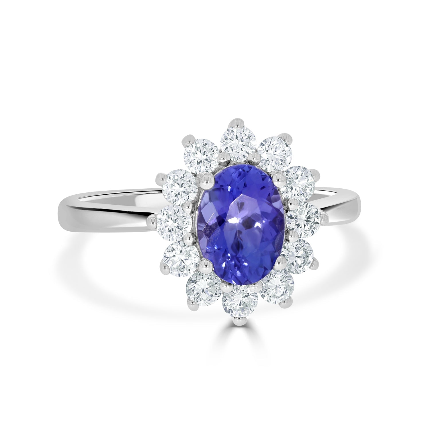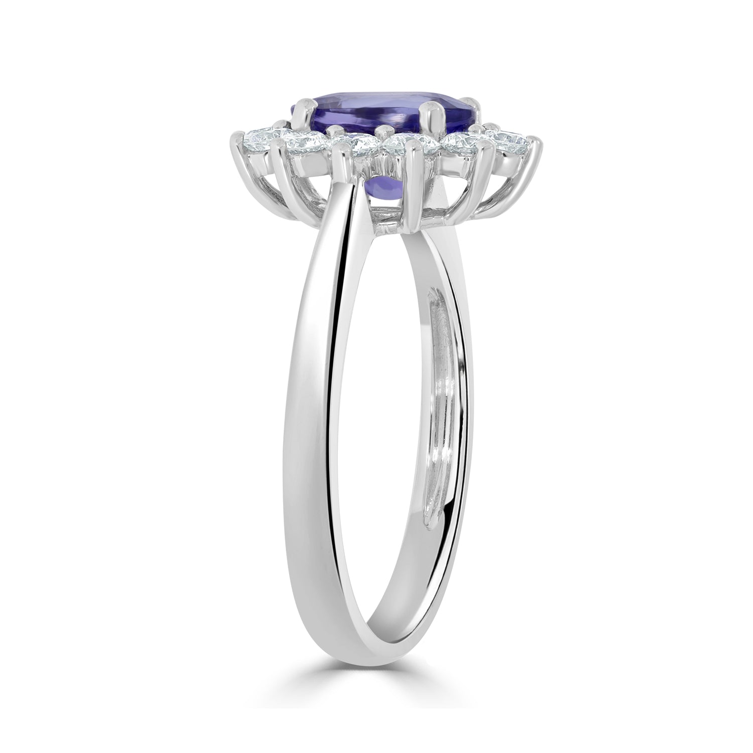 This 14K white gold ring offers luxury style with a dose of brilliant design that is set with oval-cut Tanzanite and round Diamonds.