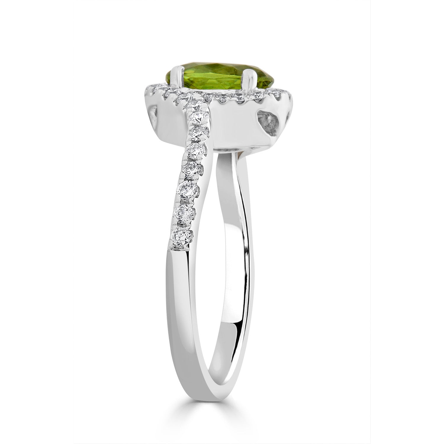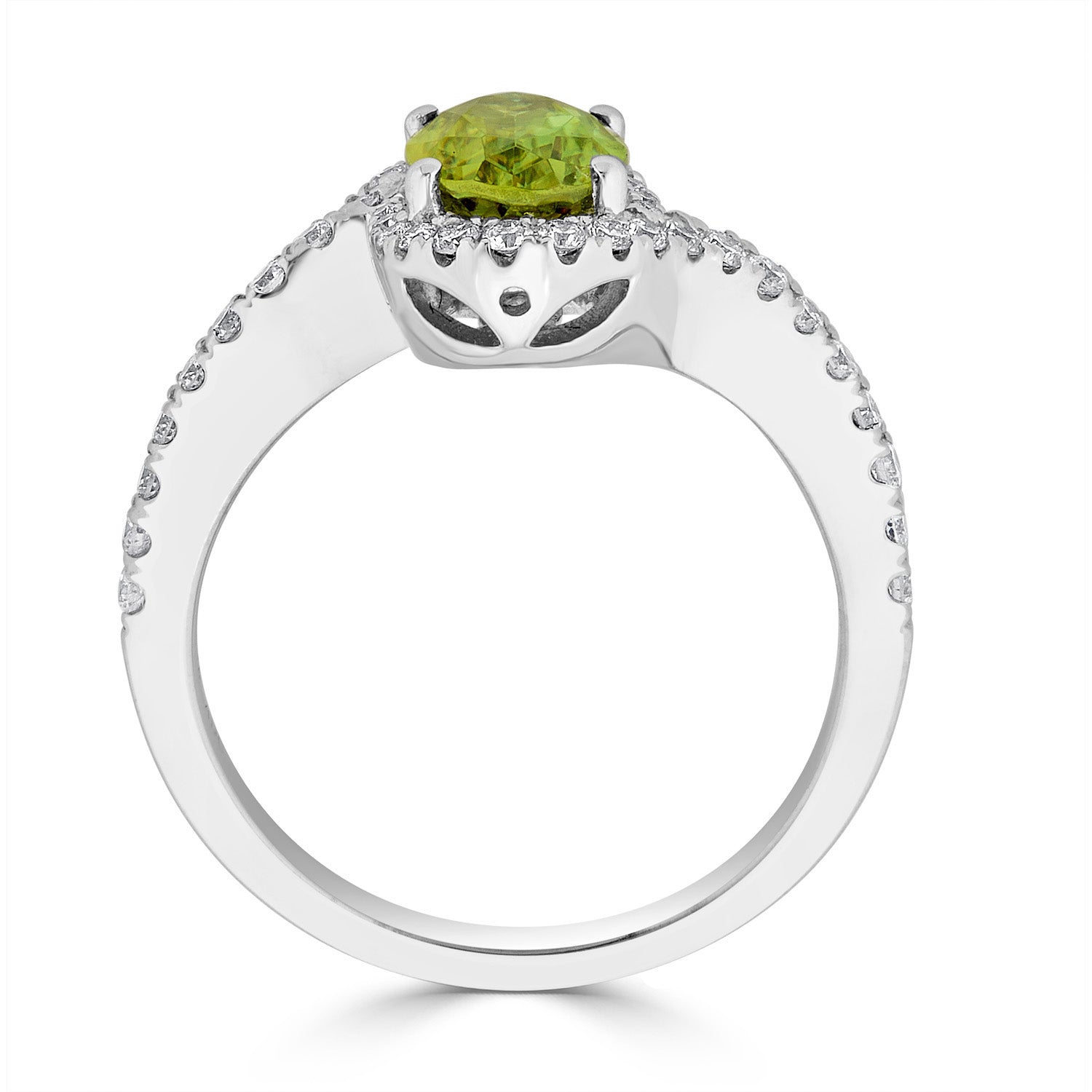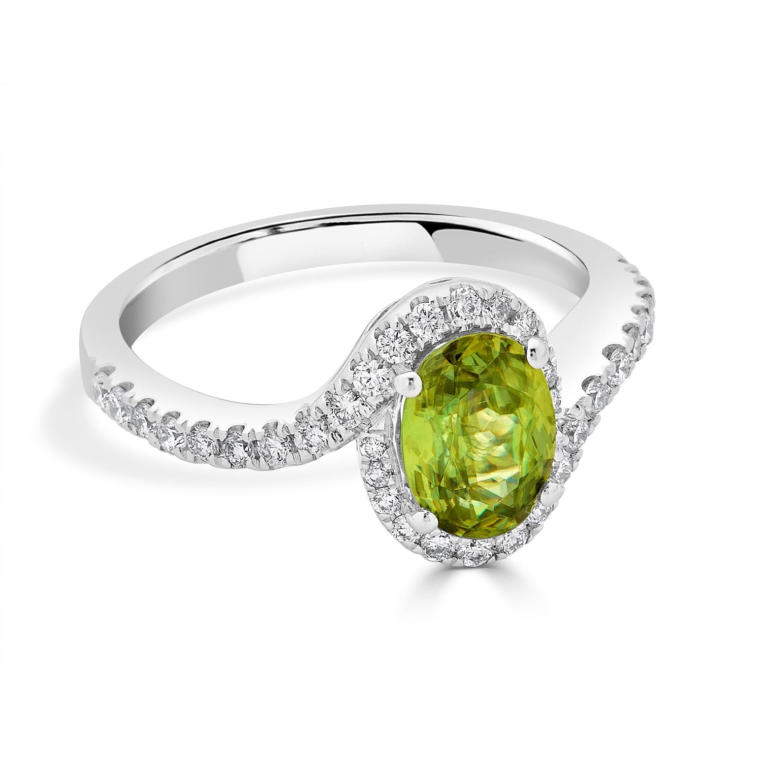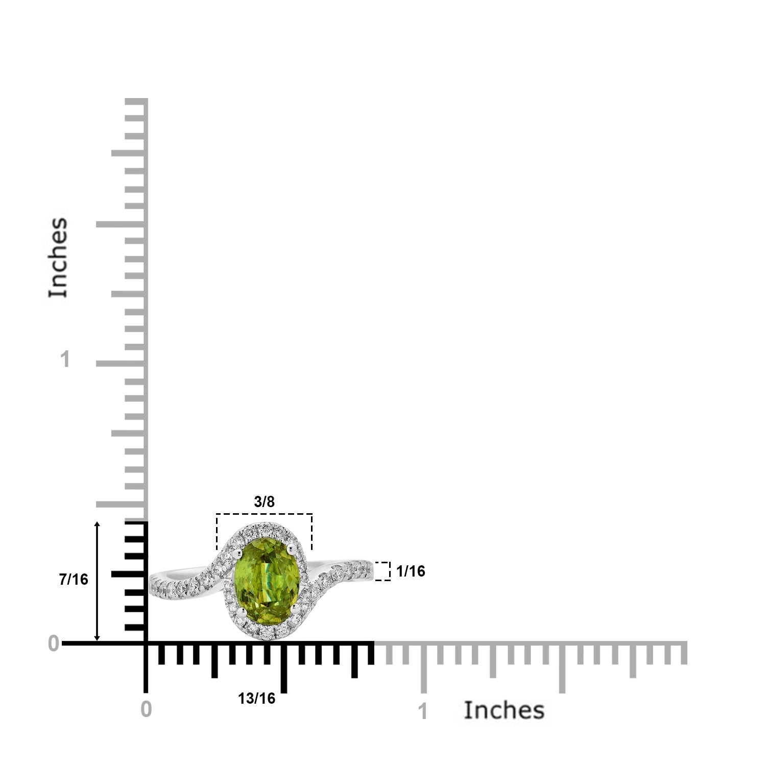 The right jewelry for any occasion, this impressive ring is crafted of 14K white gold for extra richness. Designed with a striking oval cut Sphene, this radiant ring is surrounded by splendid round cut Diamonds for added sparkle.