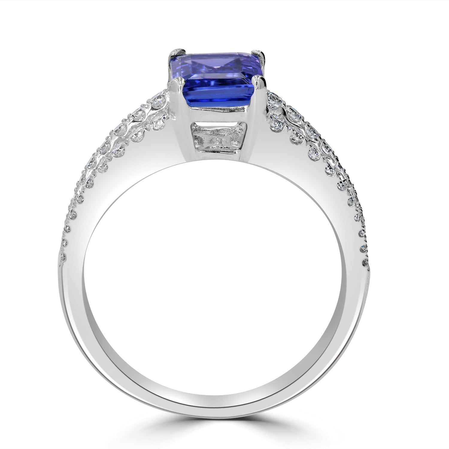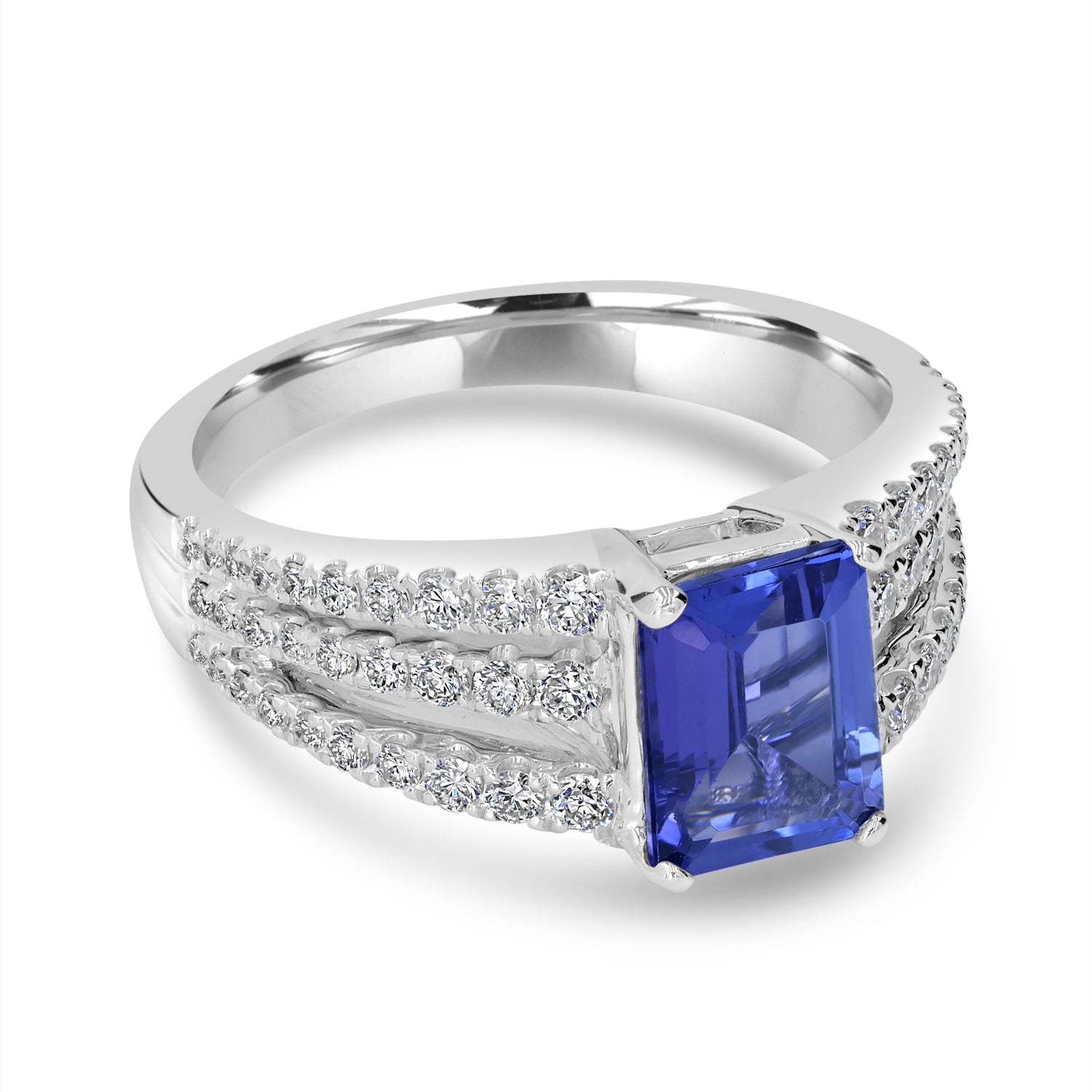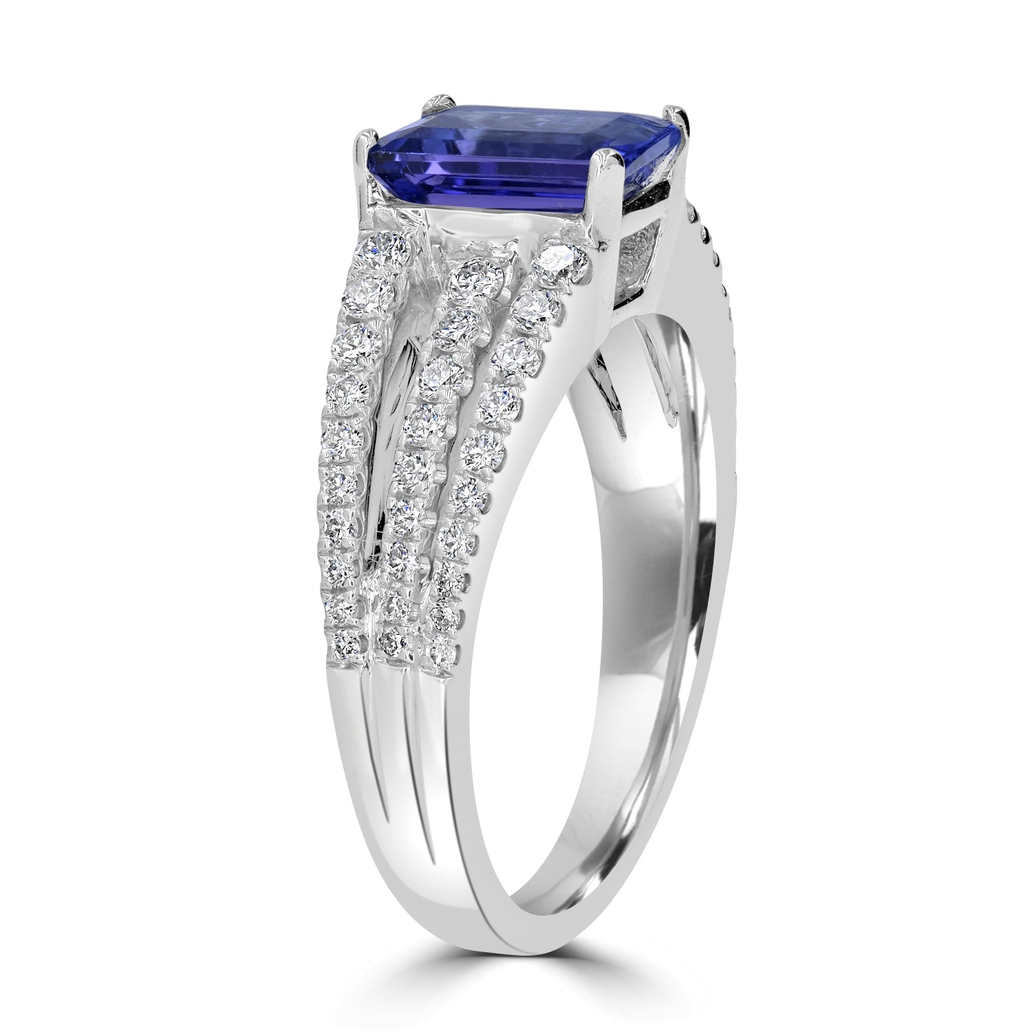 Set with emerald-cut Tanzanite and round Diamonds, this 14K white gold ring will make you stand out from the crowd.