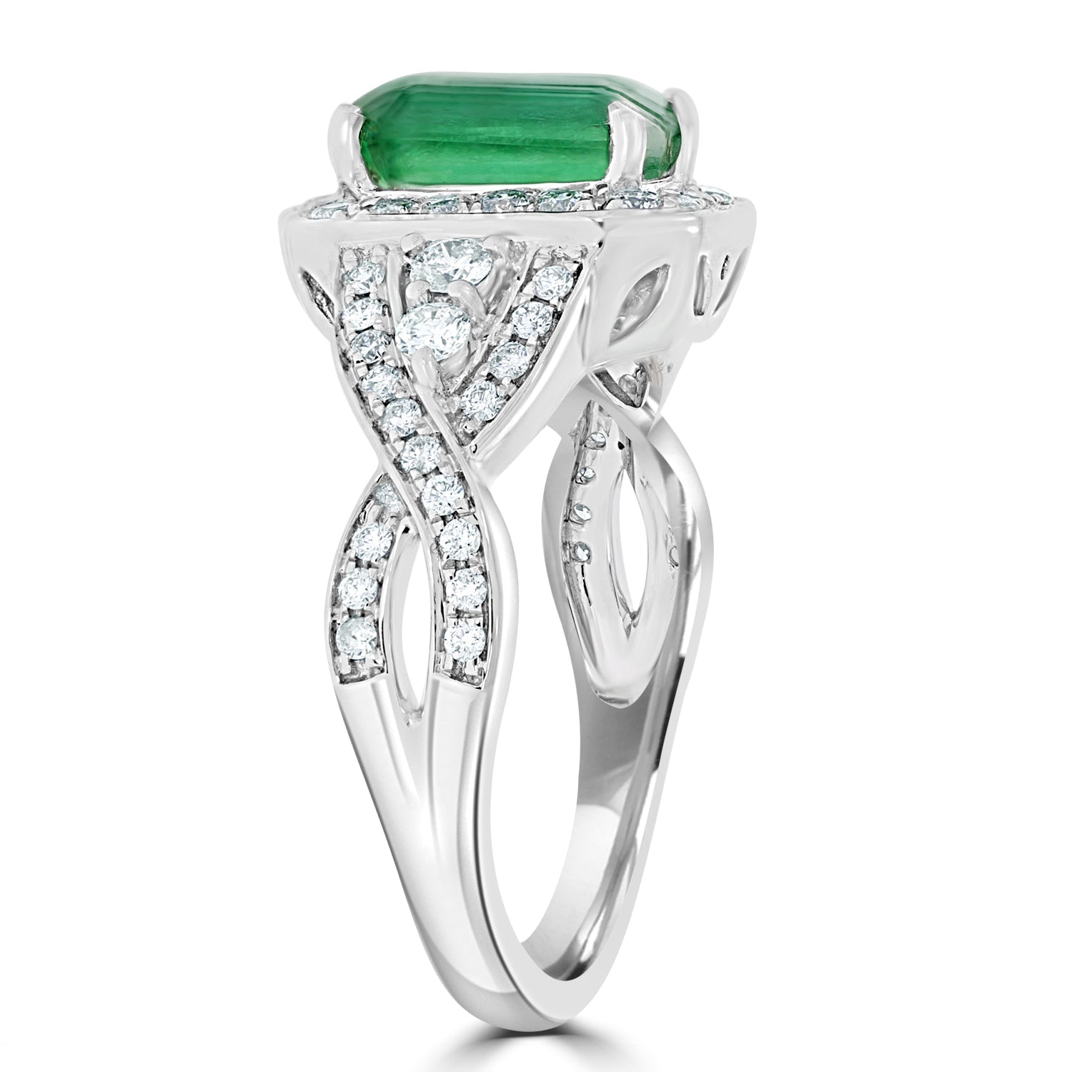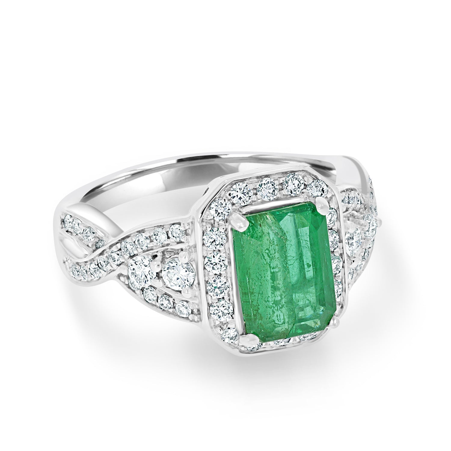 Set With A Well-crafted Octagon Cut Emerald, This Luminous Ring Is Further Accentuated By The Sparkling Round Cut Diamonds That Border It, Highlighting The Glorious Shade Of The Gemstone. Designed With 14k White Gold, This Fine Jewelry Is Sure To Grab Attention Everywhere You Go.
