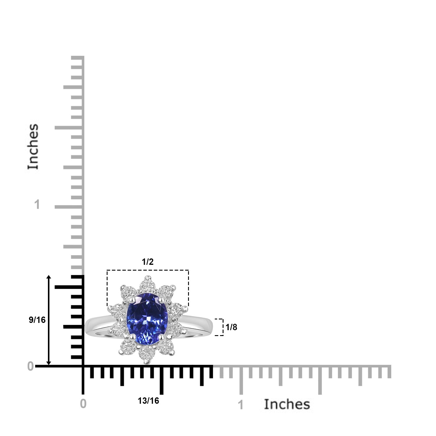Rich and artistic, this mesmerizing ring is creatively designed and emanates class and luxury. This 14K white gold ring is adorned with spectacular oval-cut Tanzanite and round Diamonds that sparkle, giving your look a luxurious makeover.
