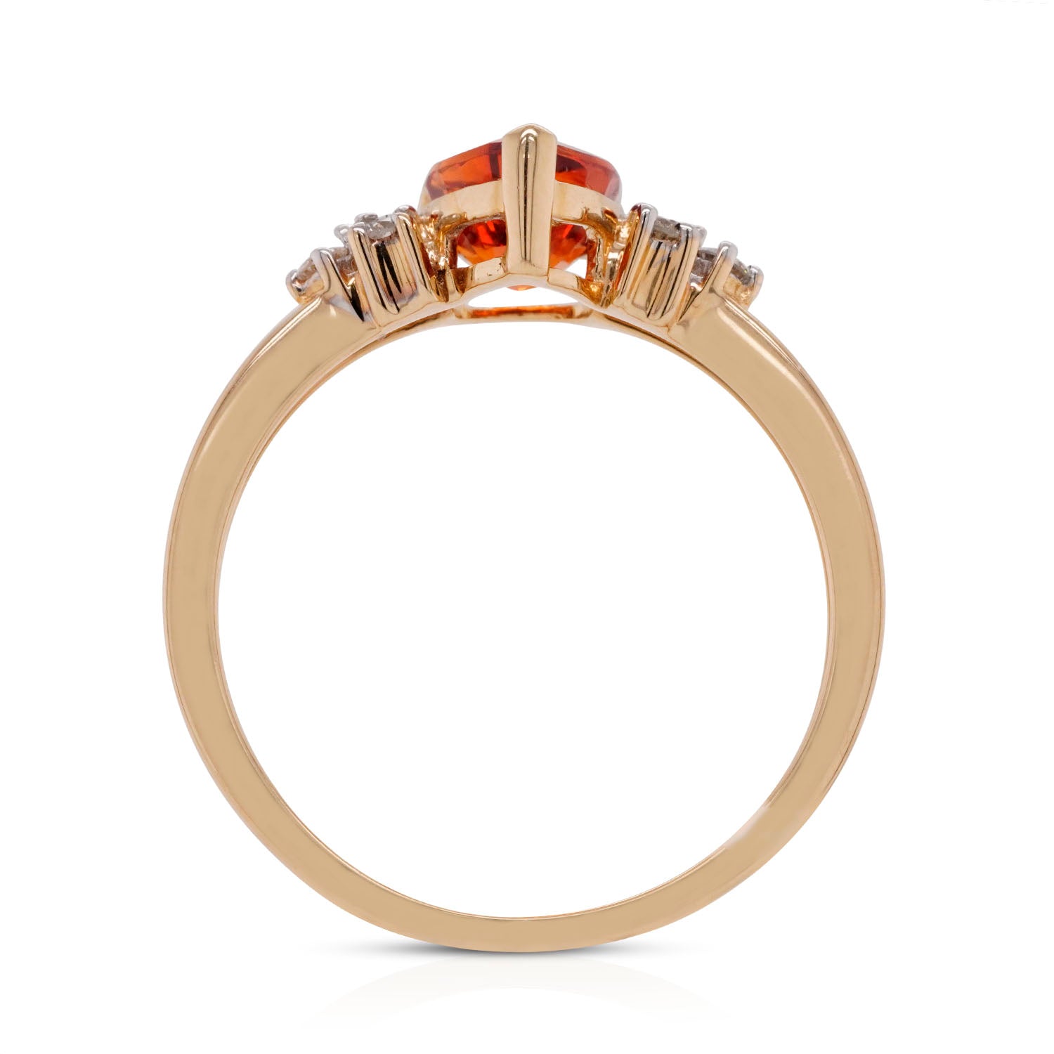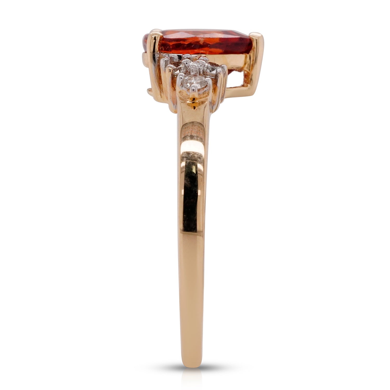 A wonderful gift, the intensity of this sensational ring is a perfect way to show your adoration. Crafted in 14K white gold, it features a vibrant mandarin garnet that displays a pear cut design. Spreading a glorious orange hue that is enhanced by the round diamonds, this striking ring will become a favorite in no time. This elegant ring gives a classy finish to any ensemble!