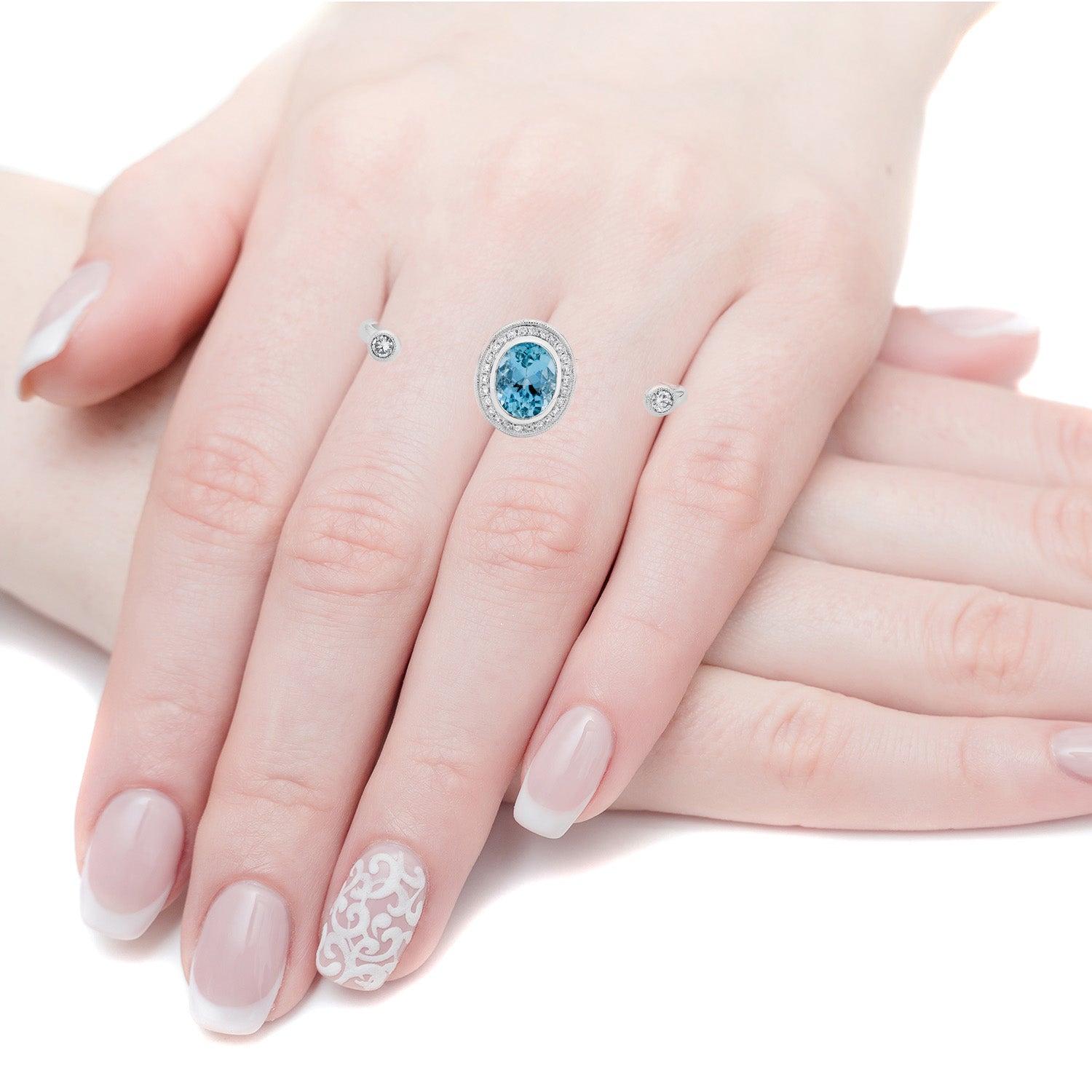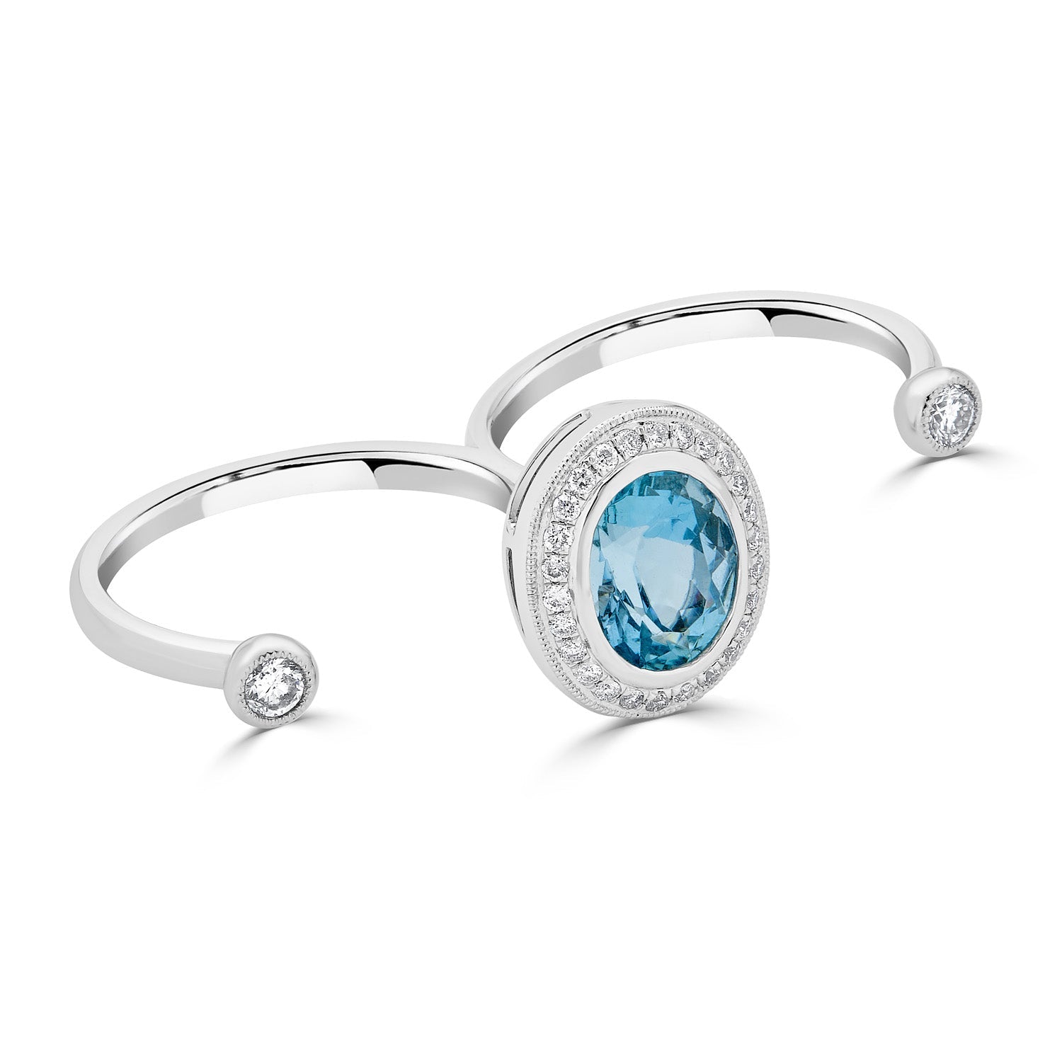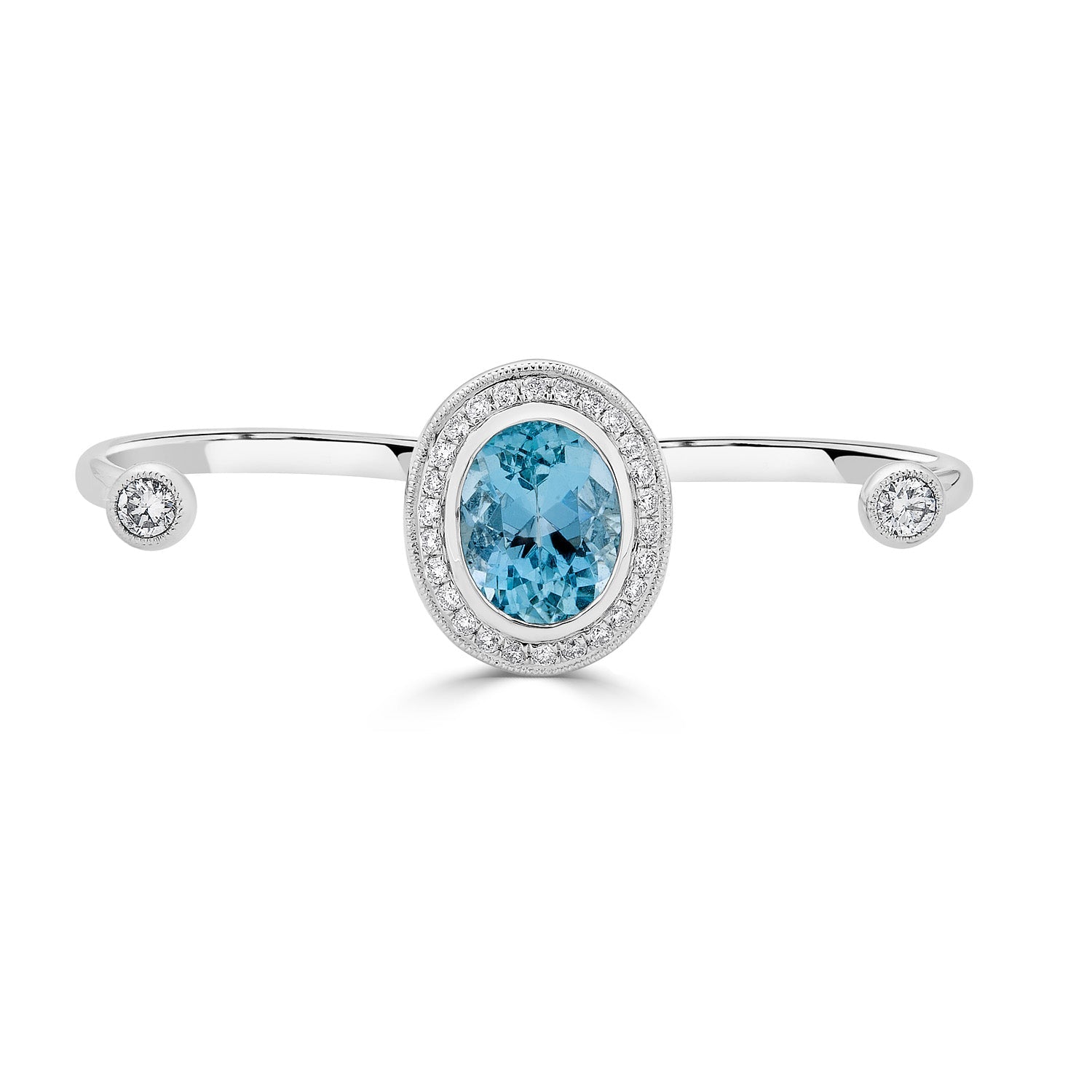 Add a touch of class and style to your luxury look with this ring. Featuring an oval cut Aquamarine and round Diamonds in a world-class setting, these luxury rings can go from dressy to luxury style outfits.
