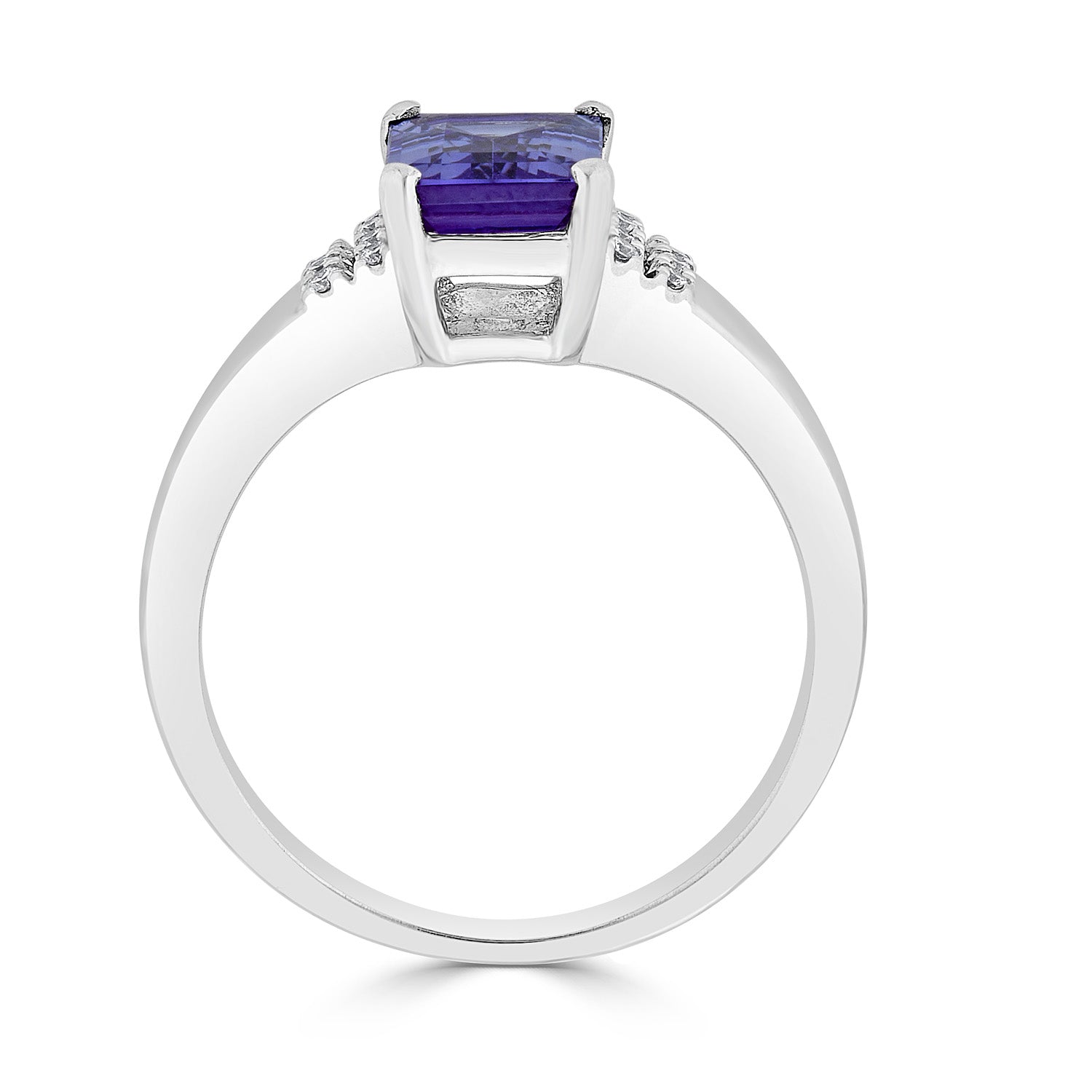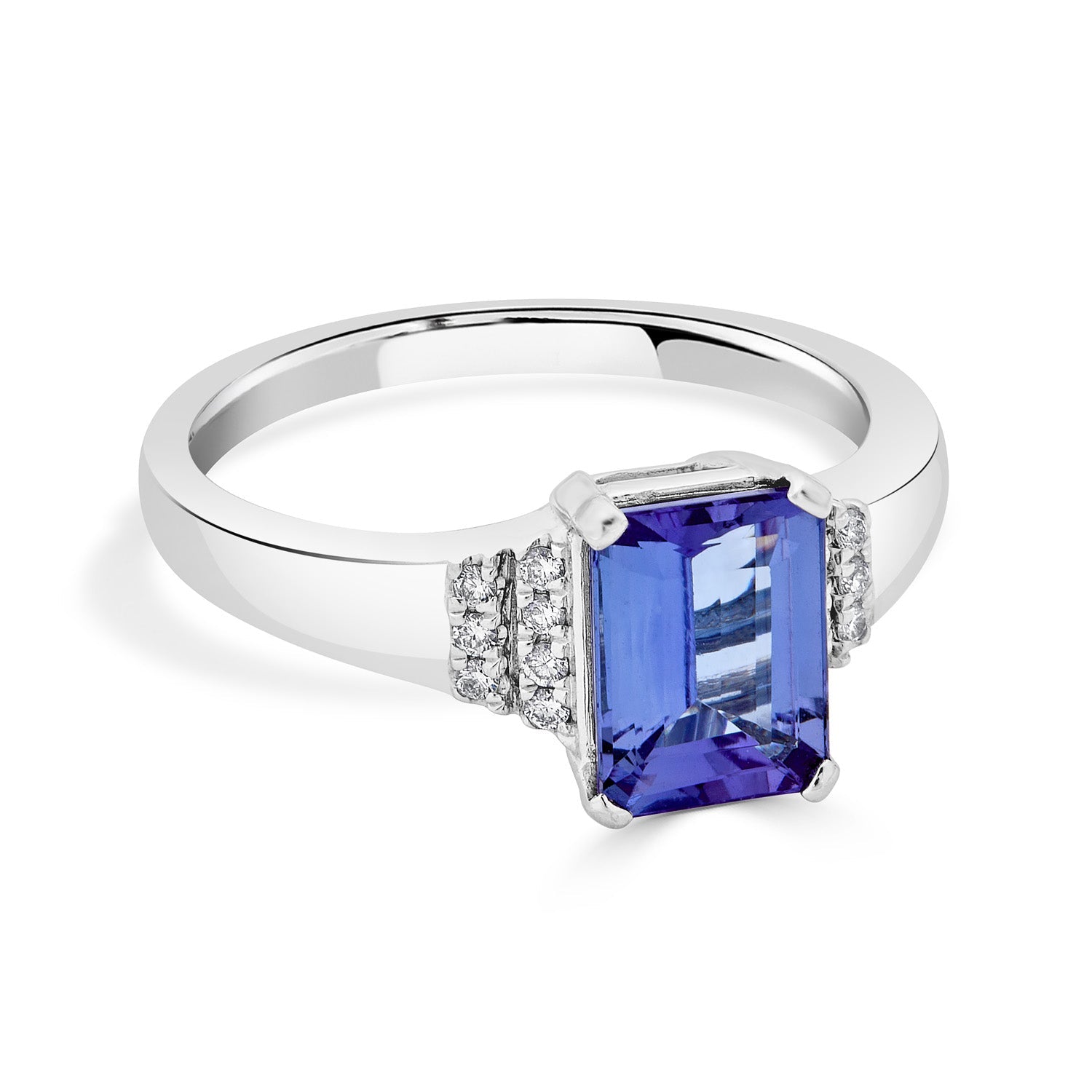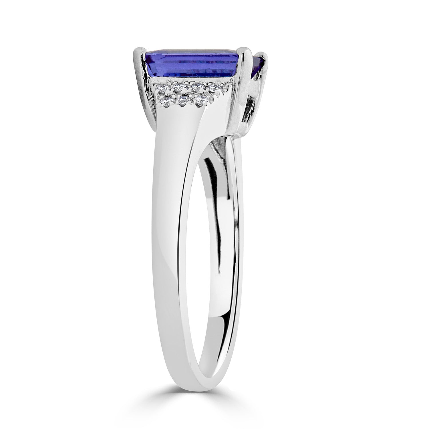 Set with a spectacular emerald cut Tanzanite, this enchanting ring complements your style perfectly. Crafted of lustrous 14K white gold, this arresting ring is bordered by shimmering round cut Diamonds that give it a mesmerizing finish.