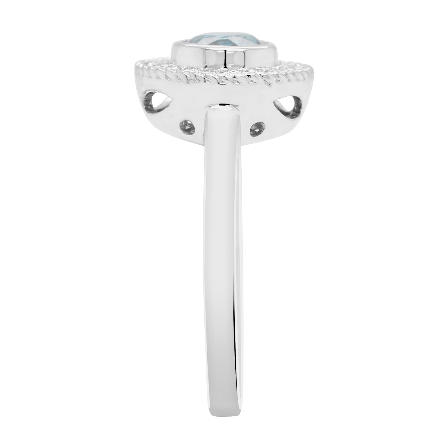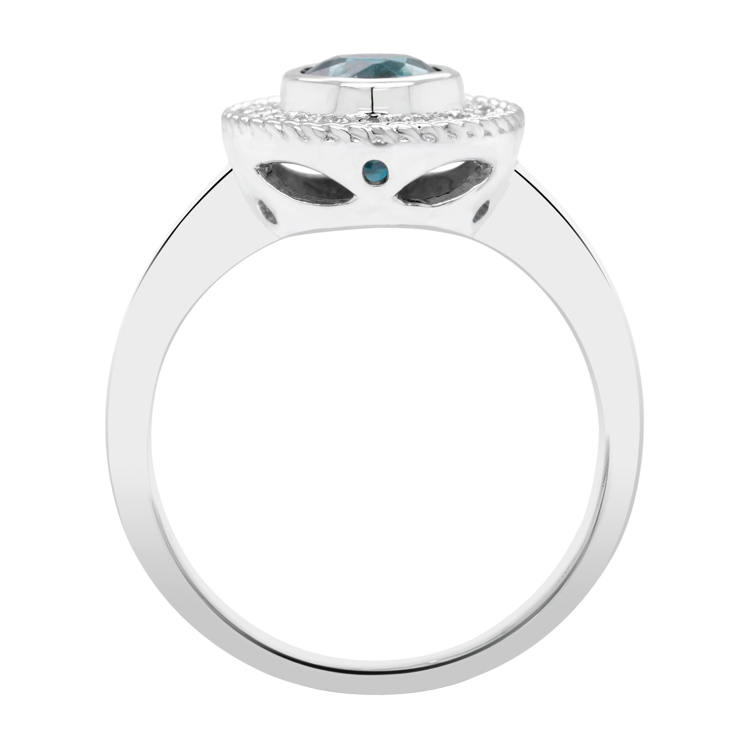 Designed With 14k White Gold For A Rich Look, This Stunning Ring Is Embellished With A Gorgeous Round-cut Blue Zircon At The Center. Accentuating Its Beauty Even More Are The Mesmerizing Round Cut Diamonds That Border This Exciting Ring, Giving It A Dazzling Finish.