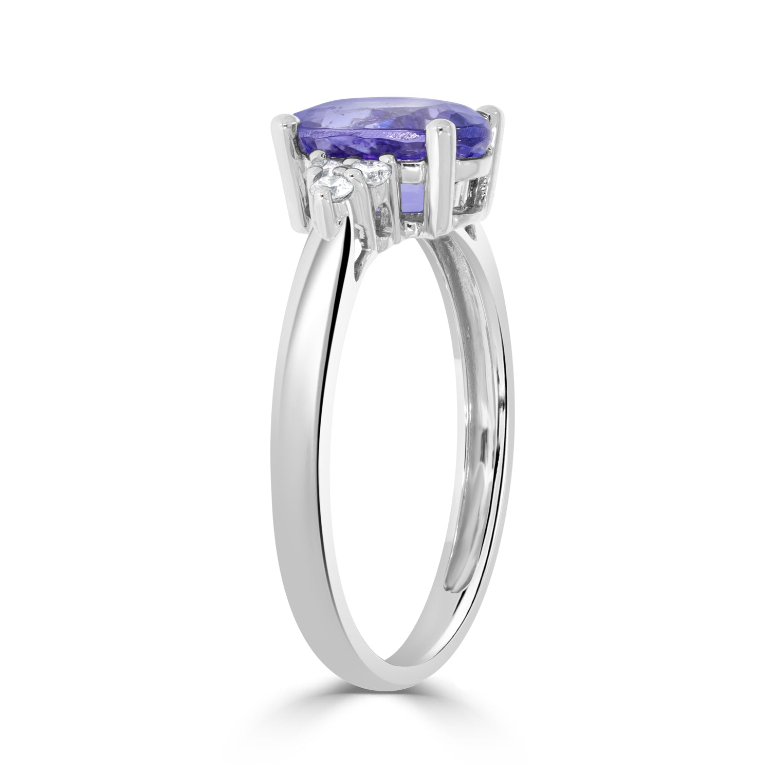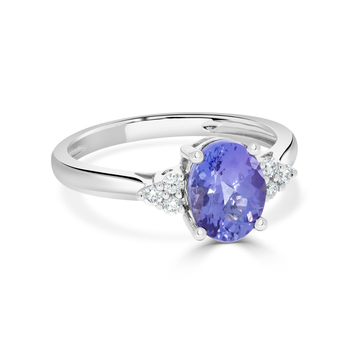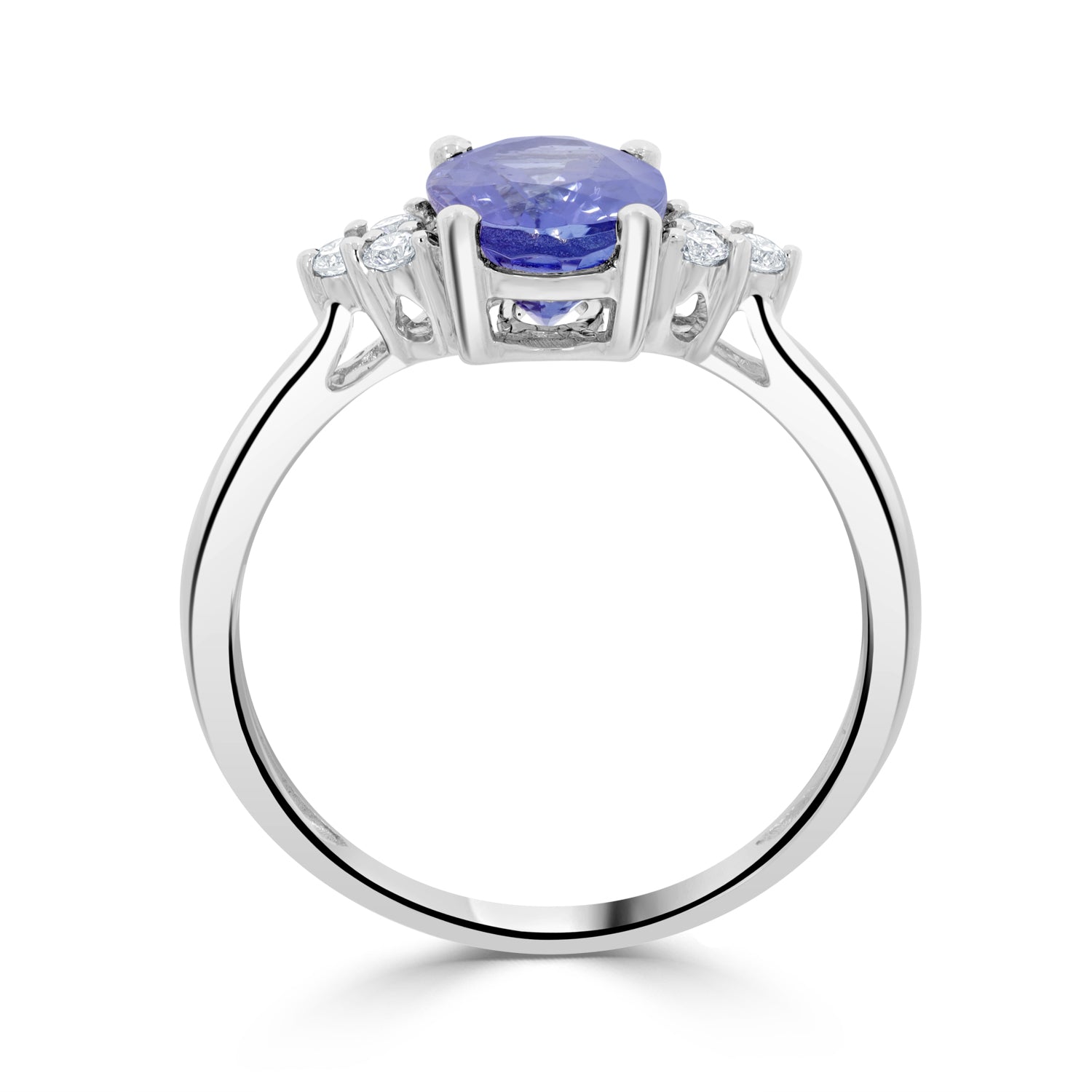 Designed With A Splendid Oval Cut Tanzanite, The Beauty Of This Ring Comes From The Radiance Of The Round Cut Diamonds Encircling It. Crafted Of 14K White Gold, This Enchanting Ring Is A Pure Luxury That You Will Always Cherish.