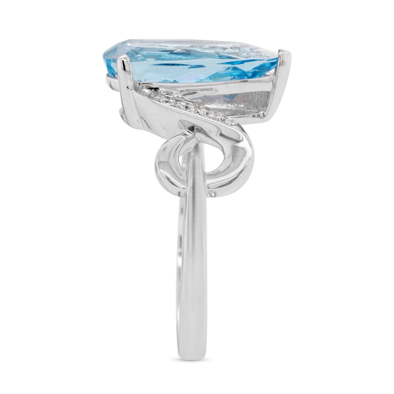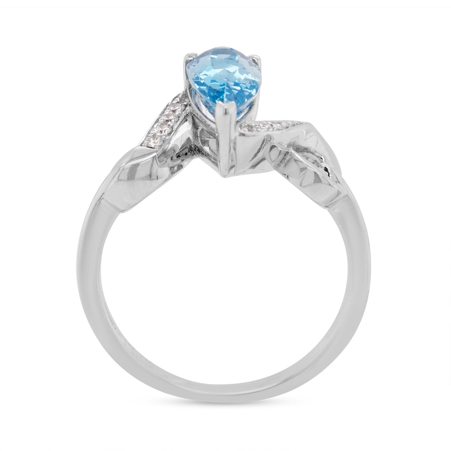 Designed in 14K white gold, this artistic creation displays top-notch craftsmanship that is sure to make heads turn. Embellished with a stunning pear cut Aquamarine, its endless shimmer adds a dash of glamour to your attire. Accentuated further by the round cut Diamonds, the luscious finish of this ring is a perfect match to your alluring persona. Jewelry that fits any occasion, opt for this versatile ring now!