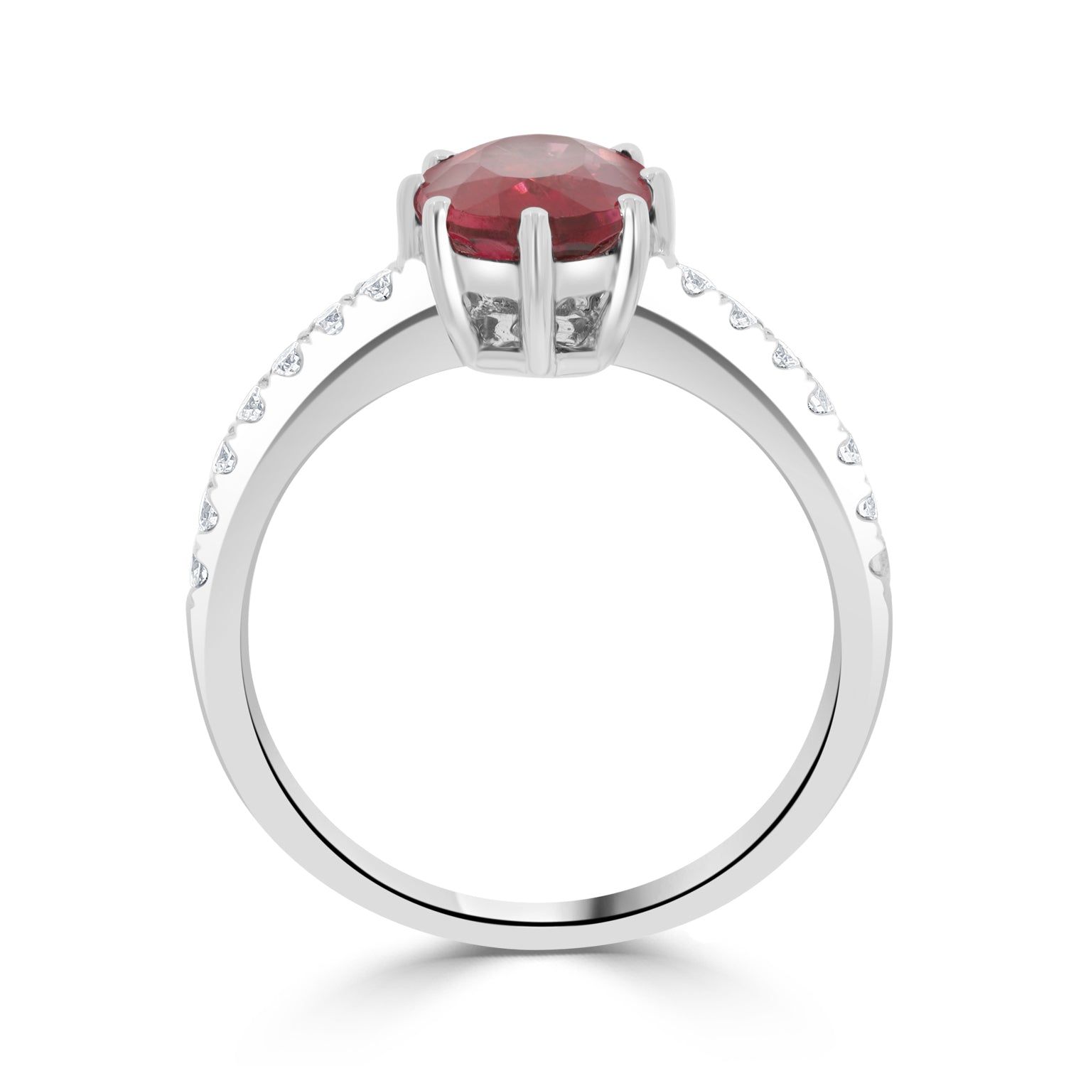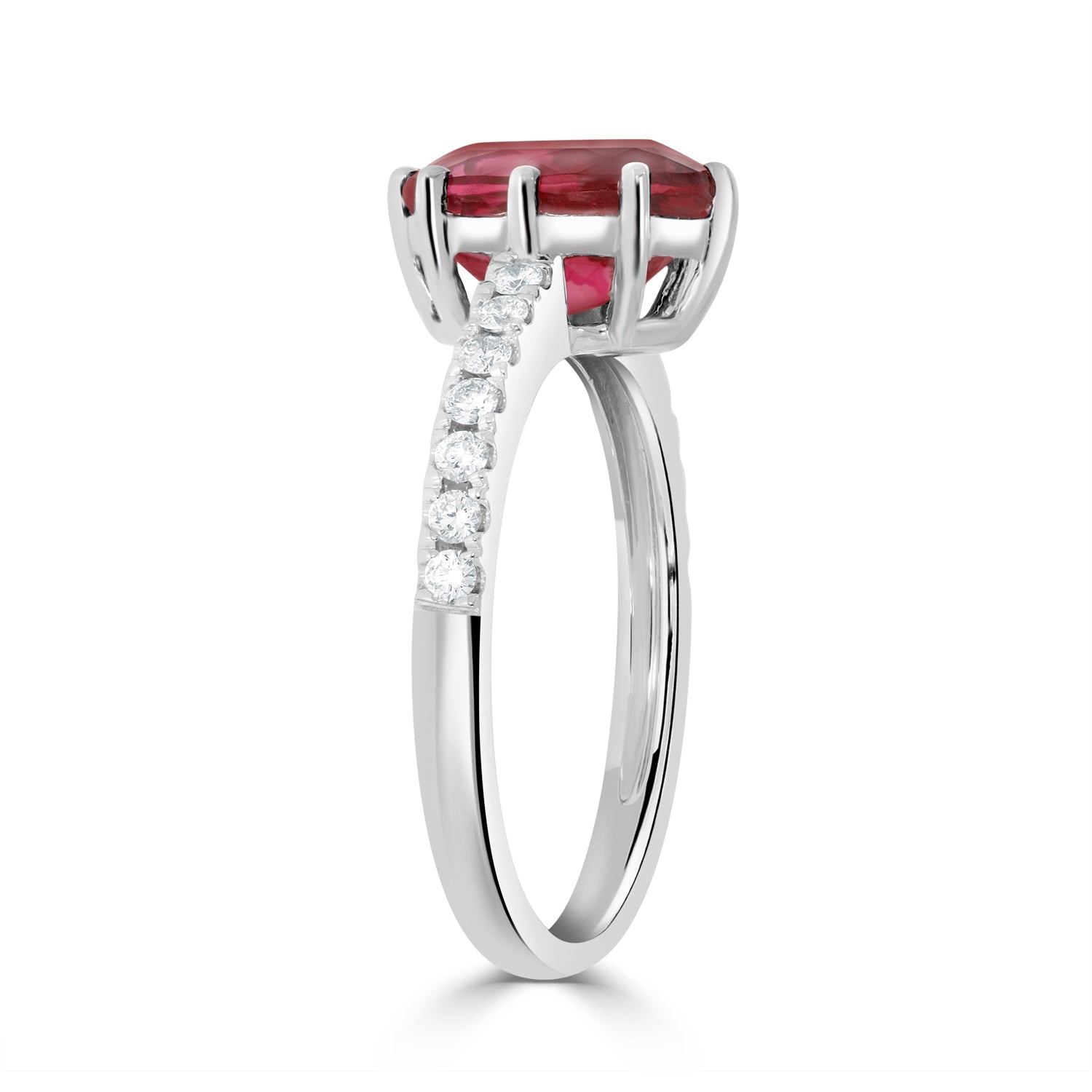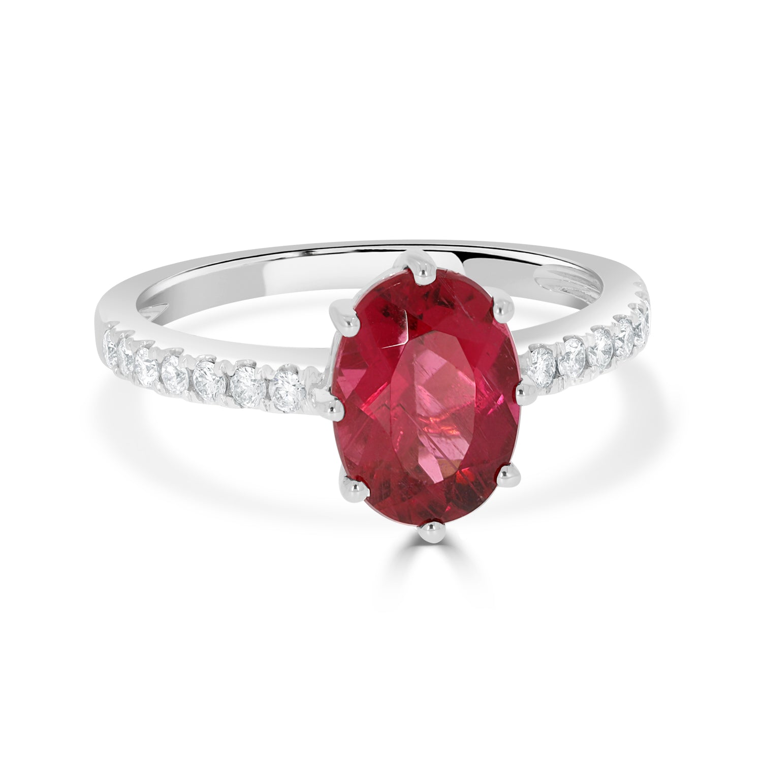 A flawless blend of color and style, this breathtaking ring is designed with 14K white gold and set with a striking oval cut Tourmaline, bordered by glittering round cut Diamonds.