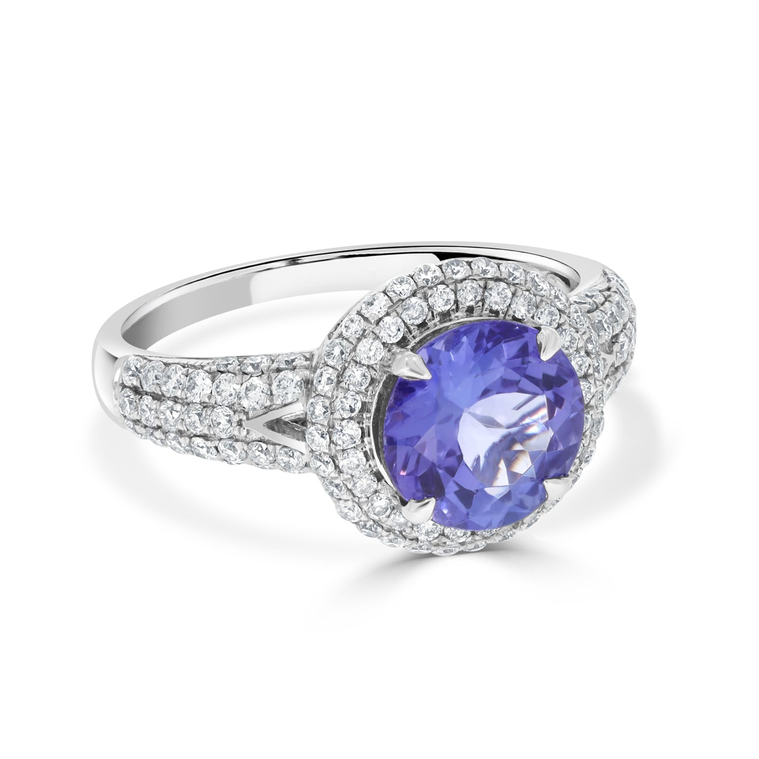 Crafted Of 14K White Gold, This Marvelous Ring Is Set With A Glorious Round Cut Tanzanite At The Center. Adding To Its Brilliance Are The Glittering Round Cut Diamonds Which Spread An Endless Glow Everywhere You Go.