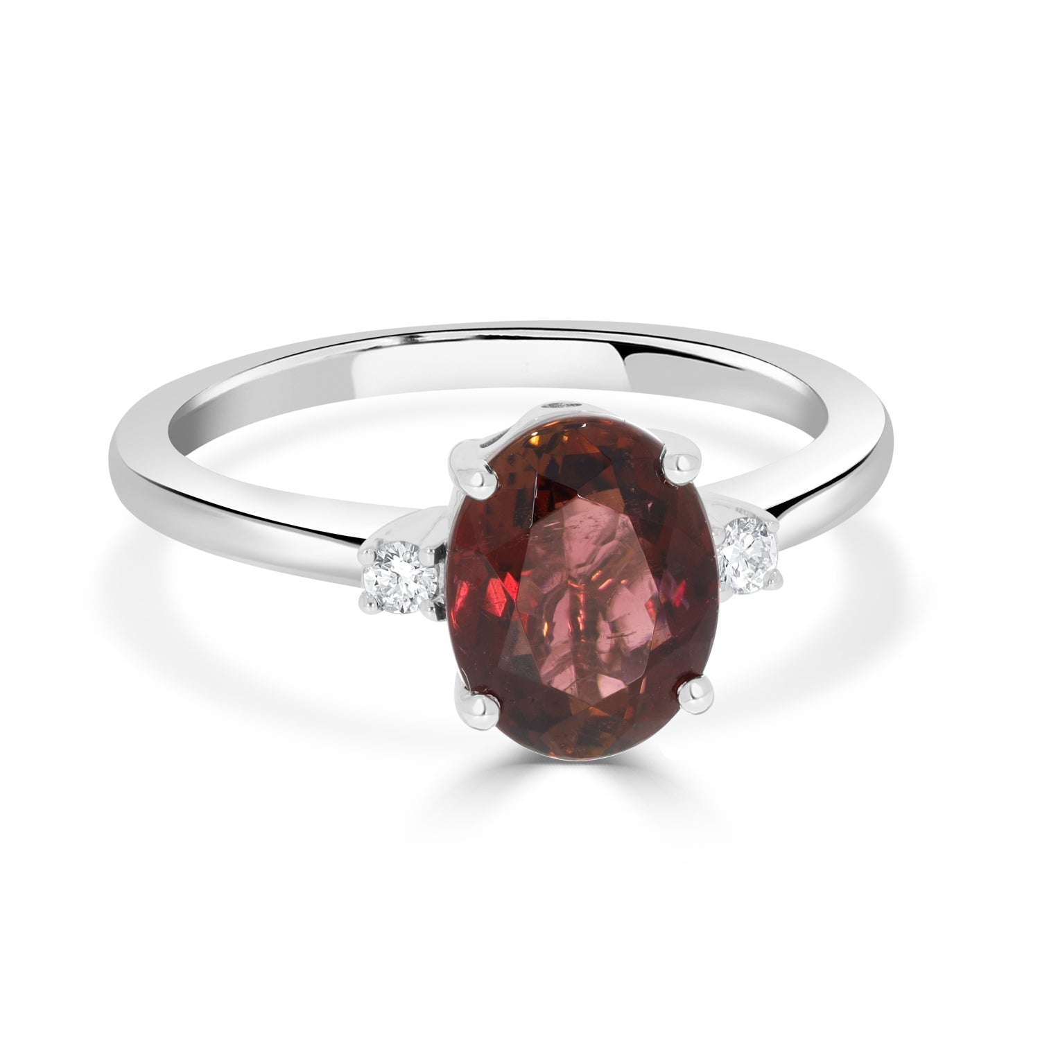 Crafted with 14K white gold, this gorgeous ring is set with a beautiful oval-cut Tourmaline, and a round diamond to bring out its unmatched beauty. Add radiance to your look.