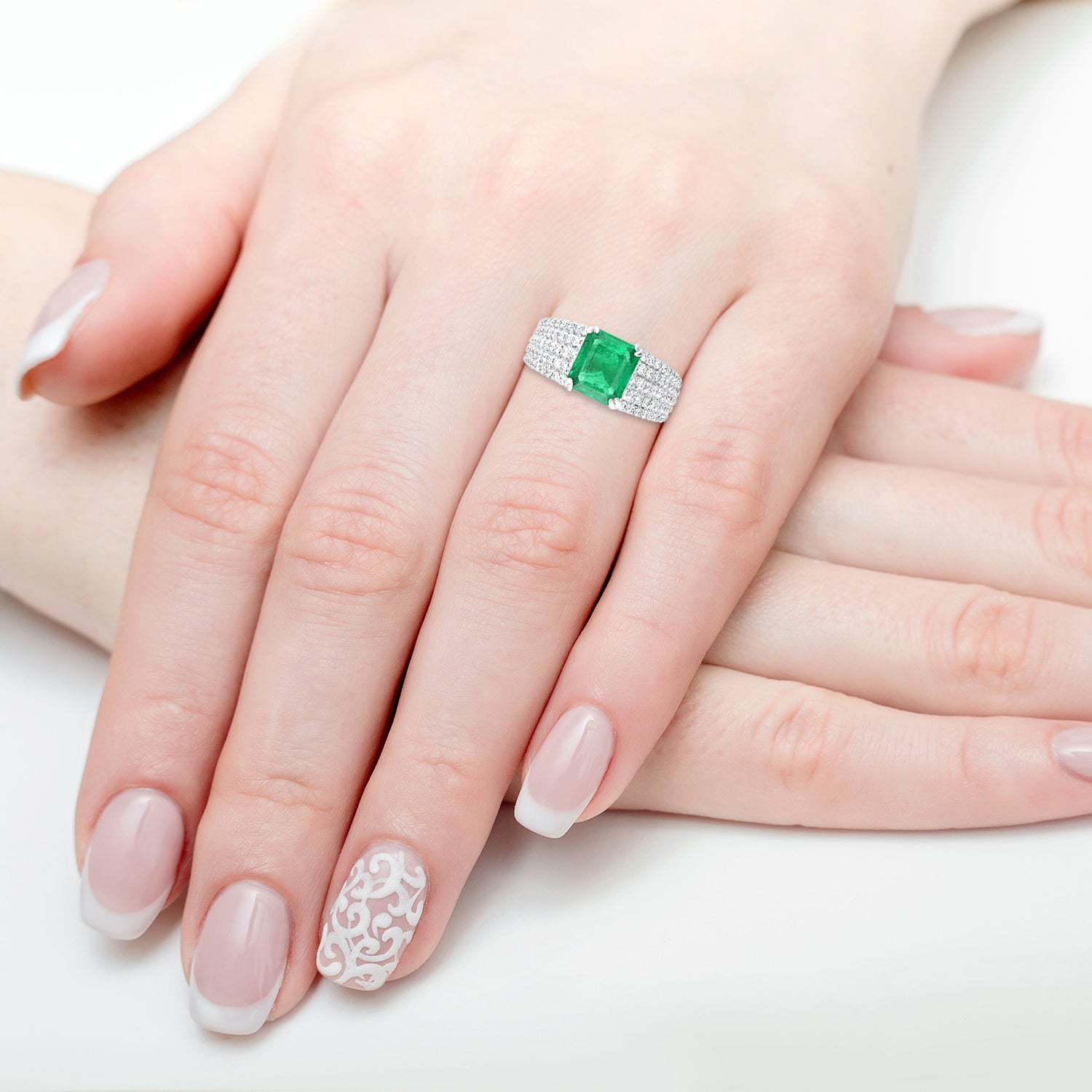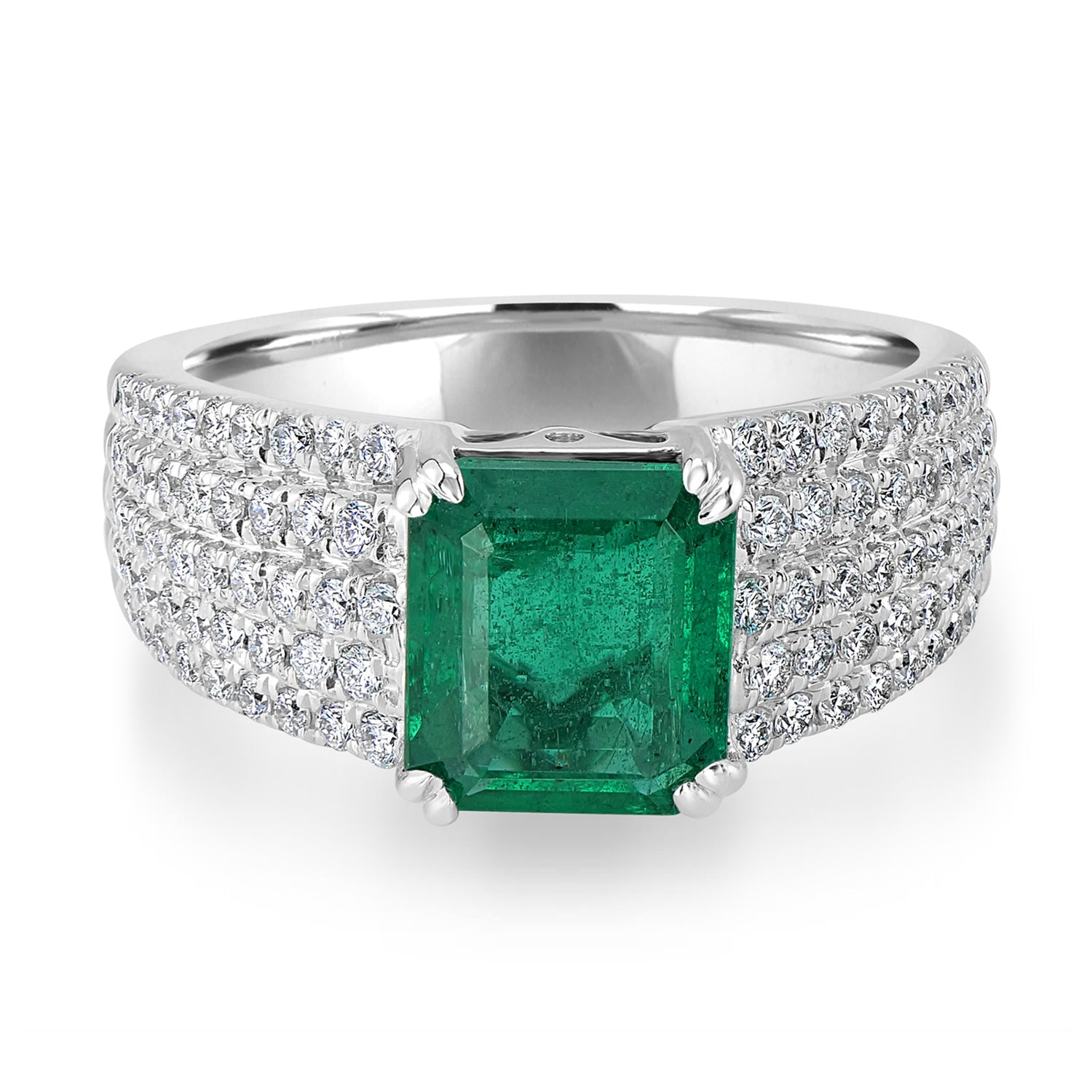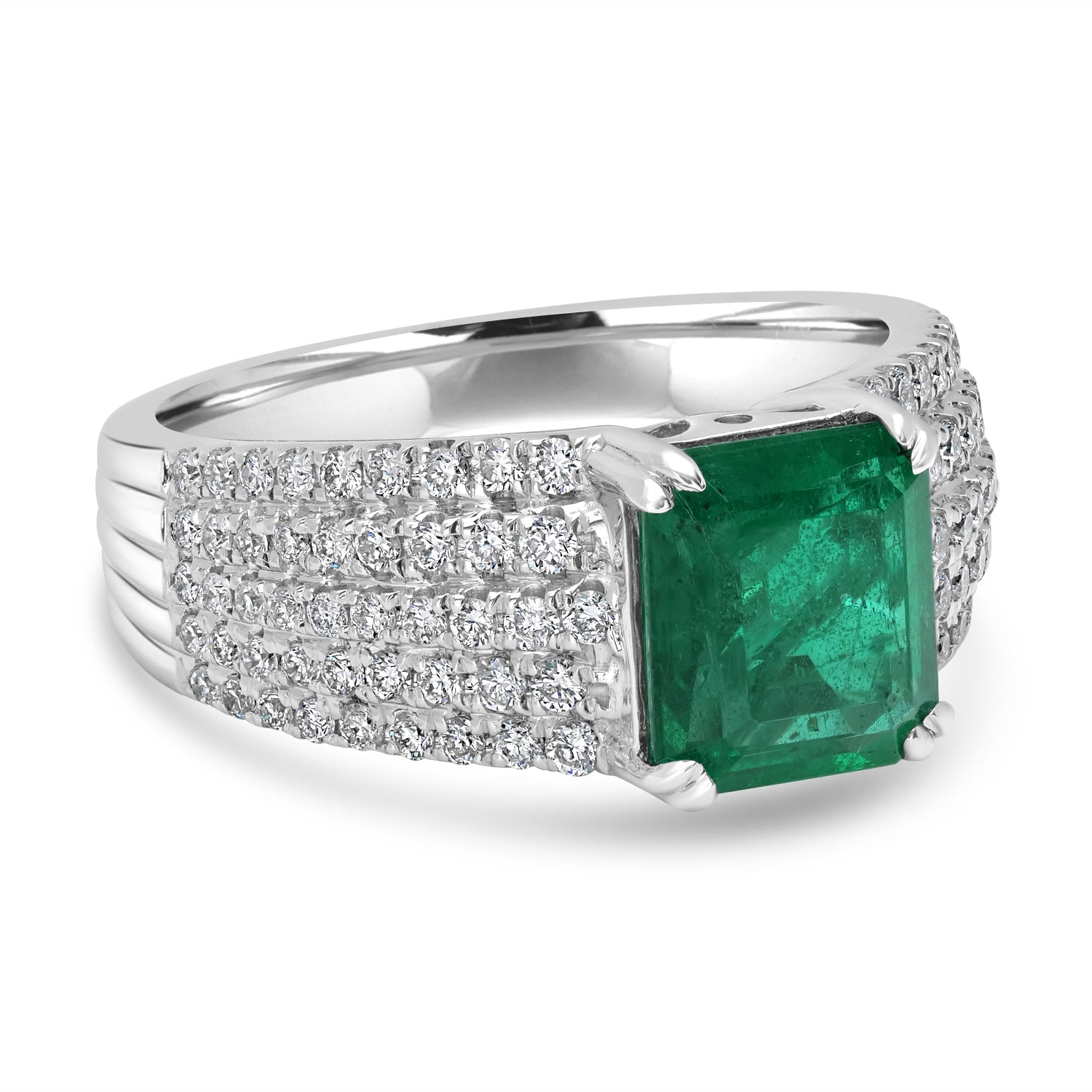 2.2ct Emerald Ring with 0.64tct Diamonds set in 14K White Gold