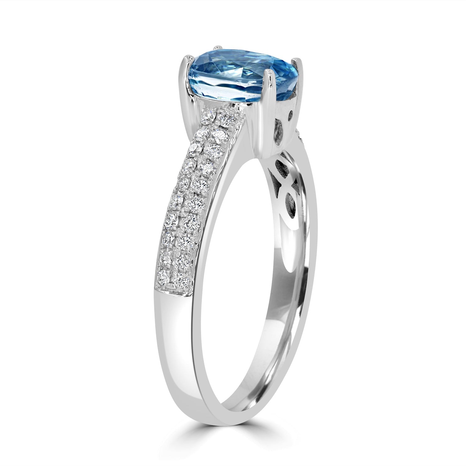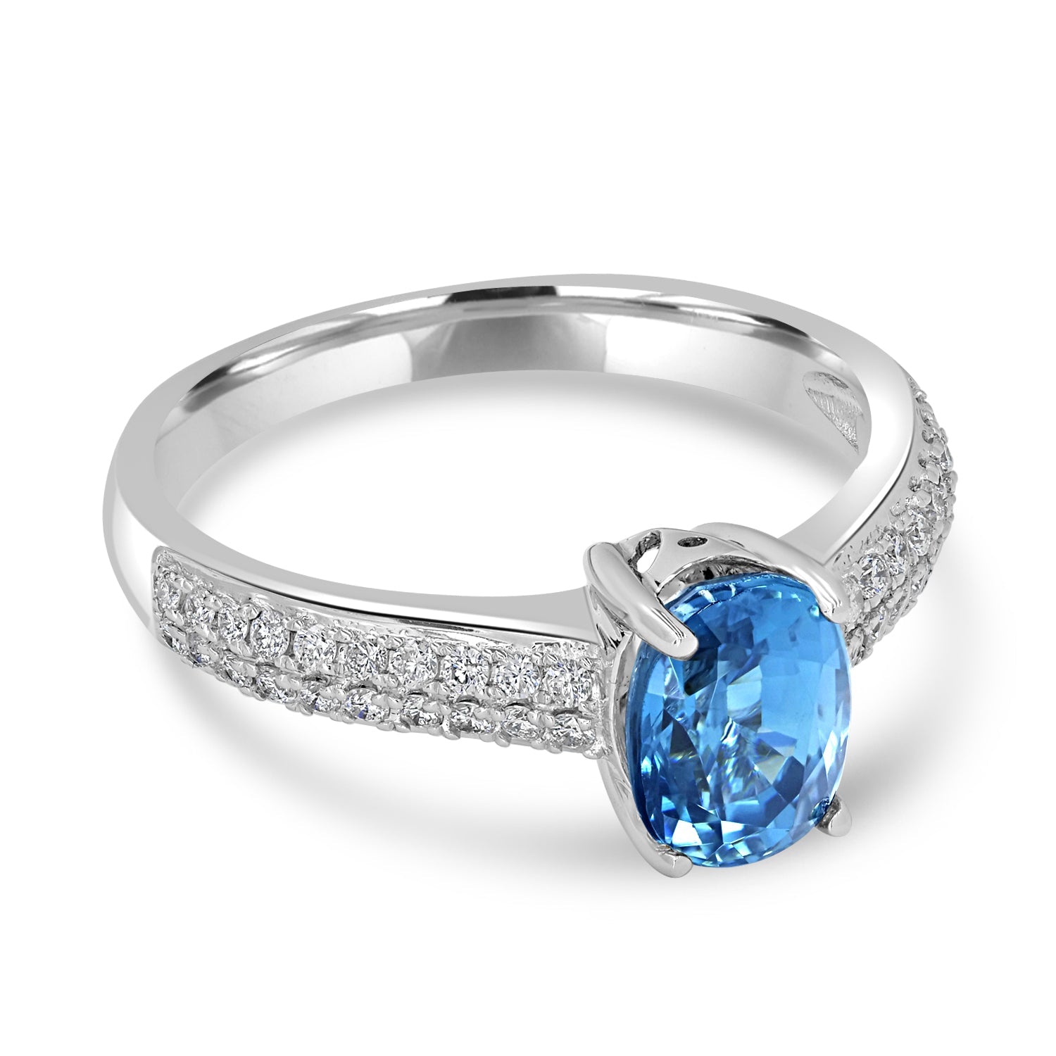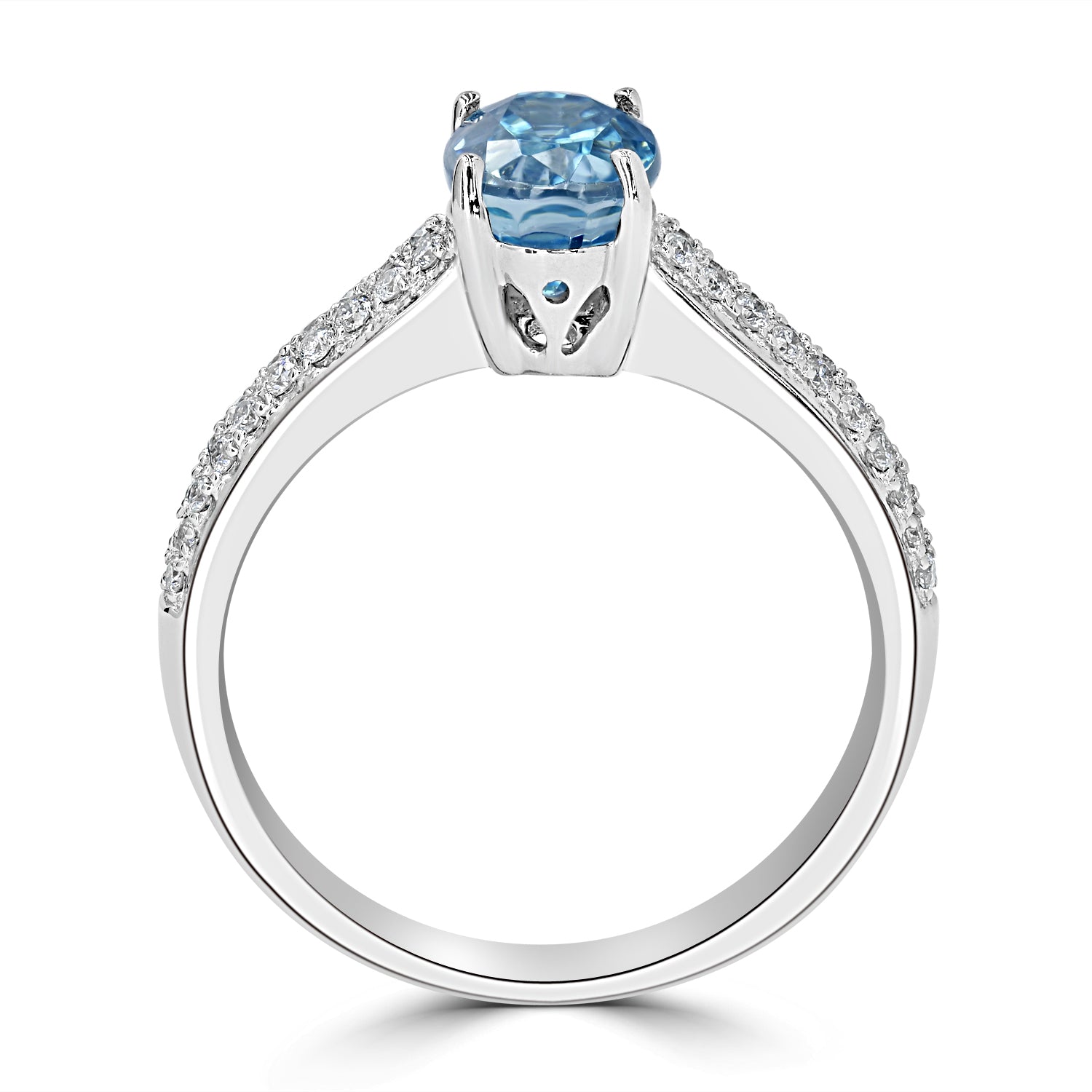 2.33ct Blue Zircon Ring with 0.22tct Diamonds set in 14K White Gold