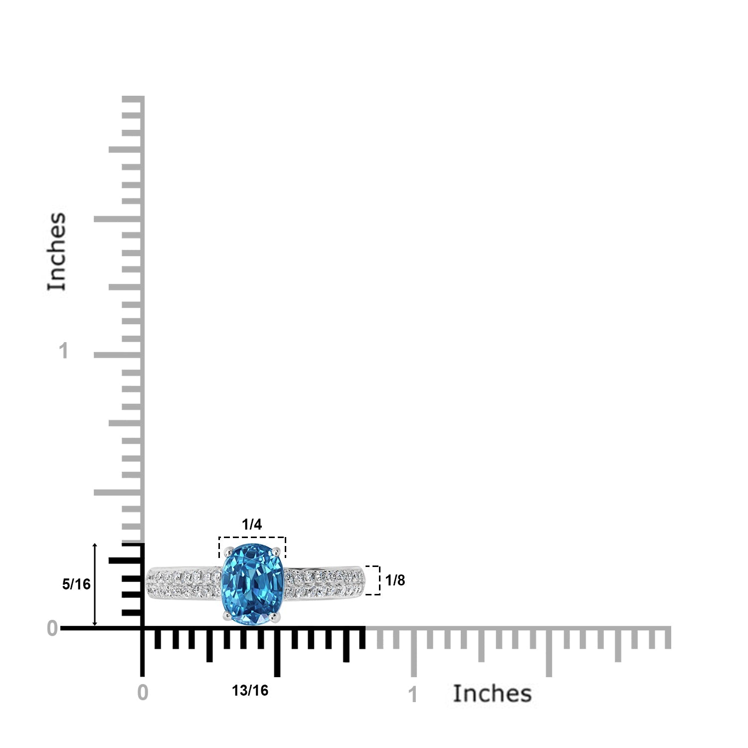 This exotic 14K white gold ring is brilliantly set with an oval-cut blue Zircon and round Diamonds.