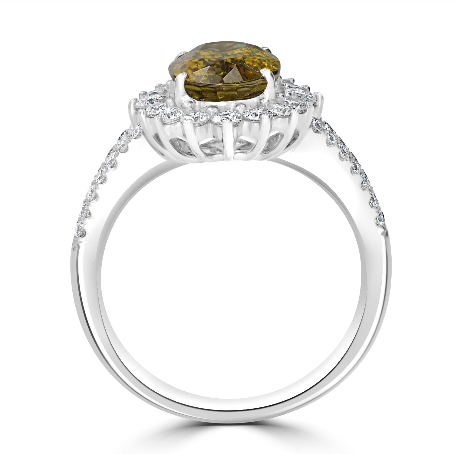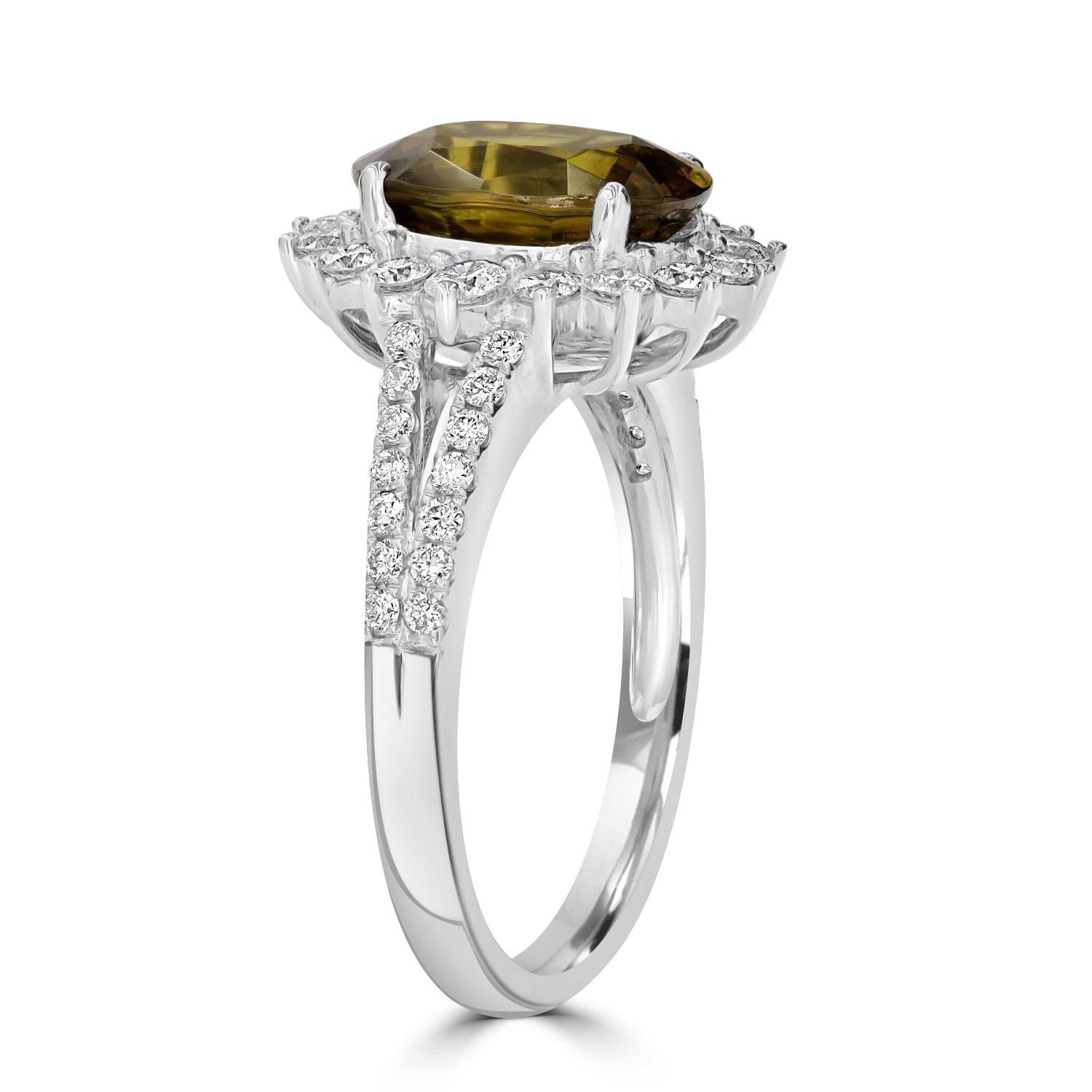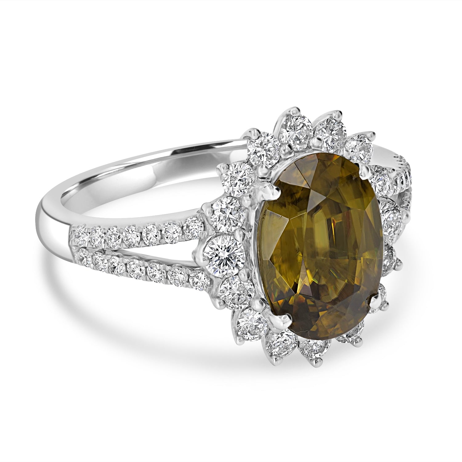 This 14K white gold ring is set with an oval-cut Sphene and round Diamonds that sparkle in the light.