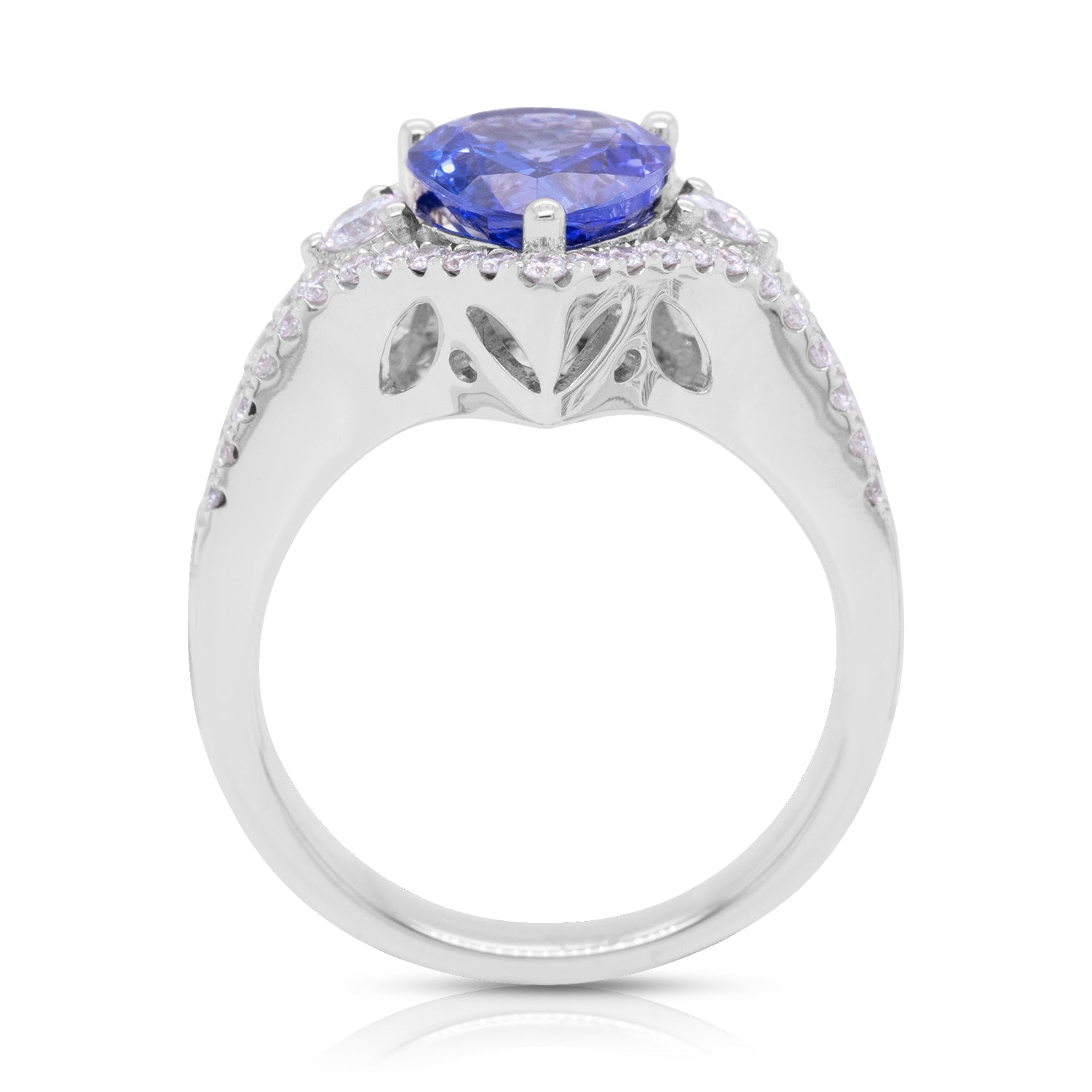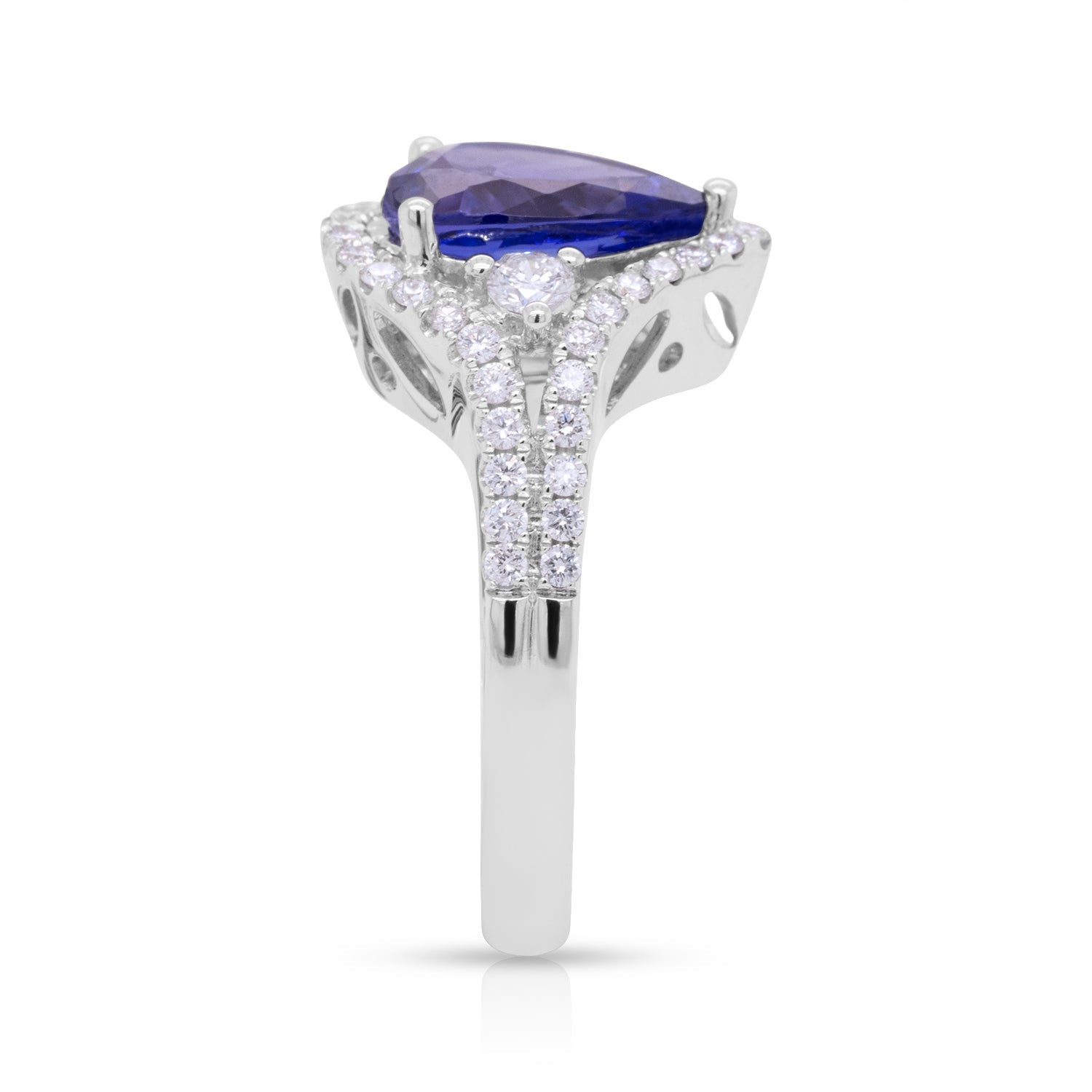 Flaunting a minimalistic design that showcases the brilliance of the pear cut Tanzanite, this enticing ring is hard to take off. Crafted in 14K white gold for a rich finish, it is embellished with sparkling round cut Diamonds that give this ring an ultra-glamorous look. Stylish yet charming, the radiance of this marvelous ring is pure luxury!