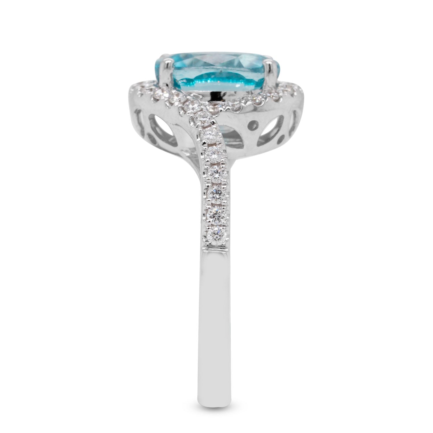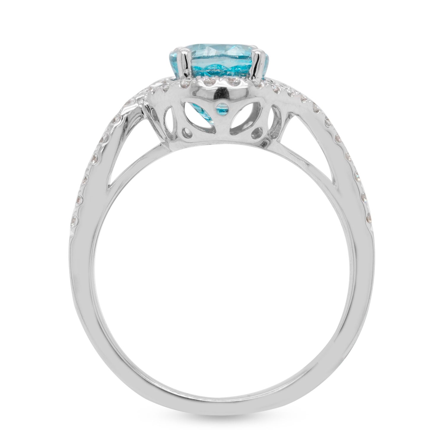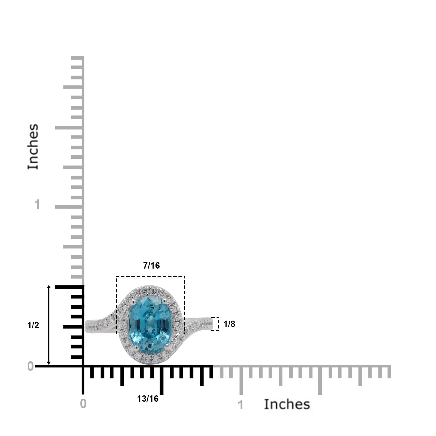 Decorated With An Oval Cut Blue Zircon That Highlights Your Natural Beauty With Flair, This Ring Displays Radiance Owing To The Fabulous Round Cut Diamonds That Border It. Crafted Of 14k White Gold For A Rich Look, This Ring Suits Any Occasion And Every Style.