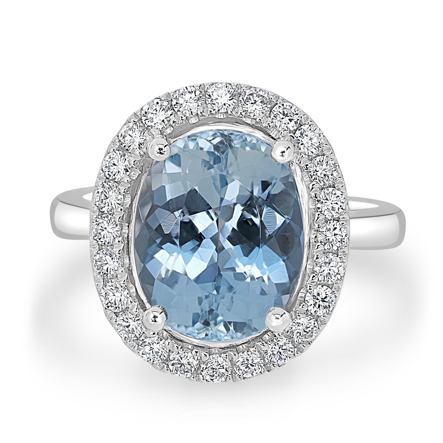 Crafted with 14k white gold, this glorious ring is set with an exquisite oval-cut Aquamarine and round Diamonds that give it a give it a brilliant sparkle. Add your own unique magic to special occasions with this fantastic ring.