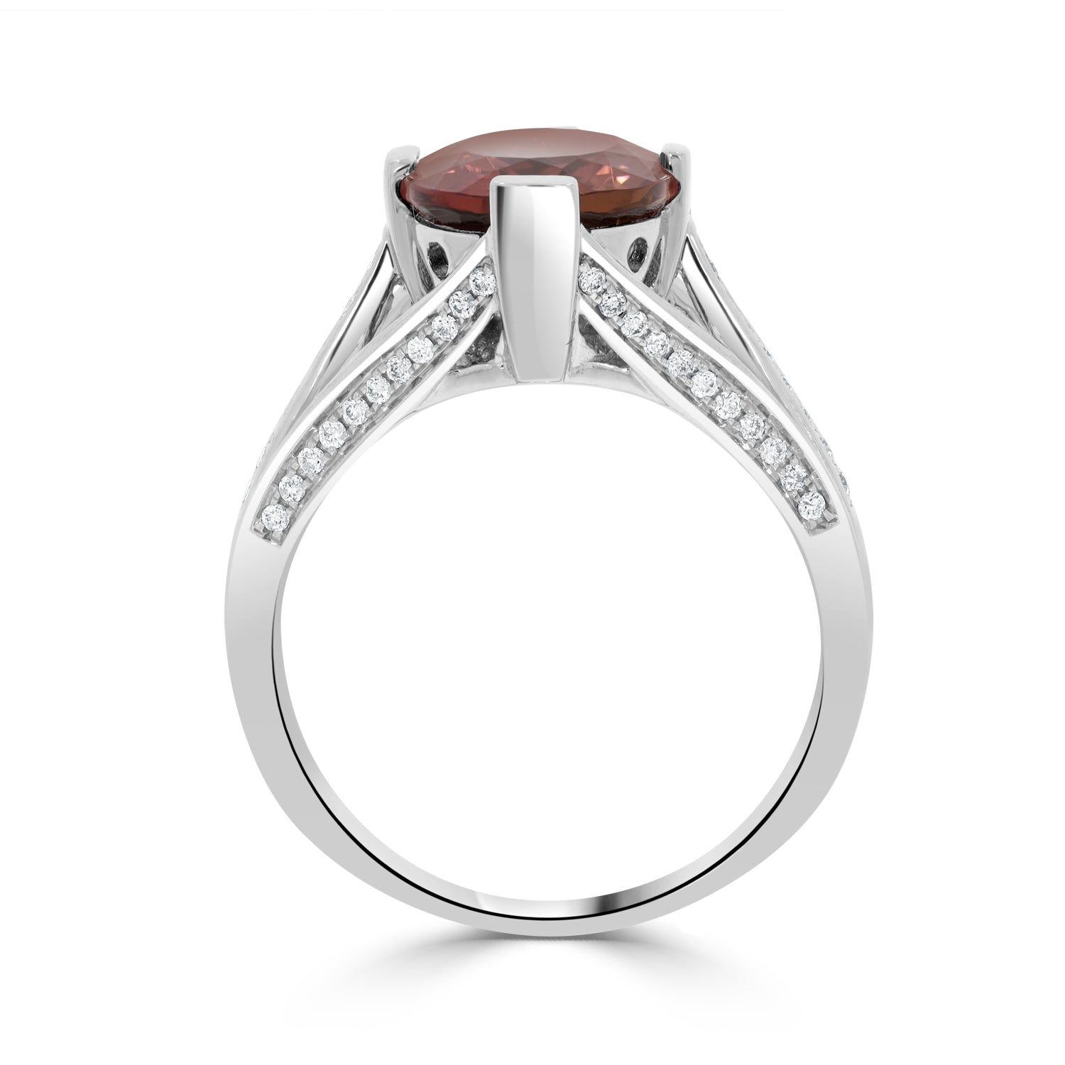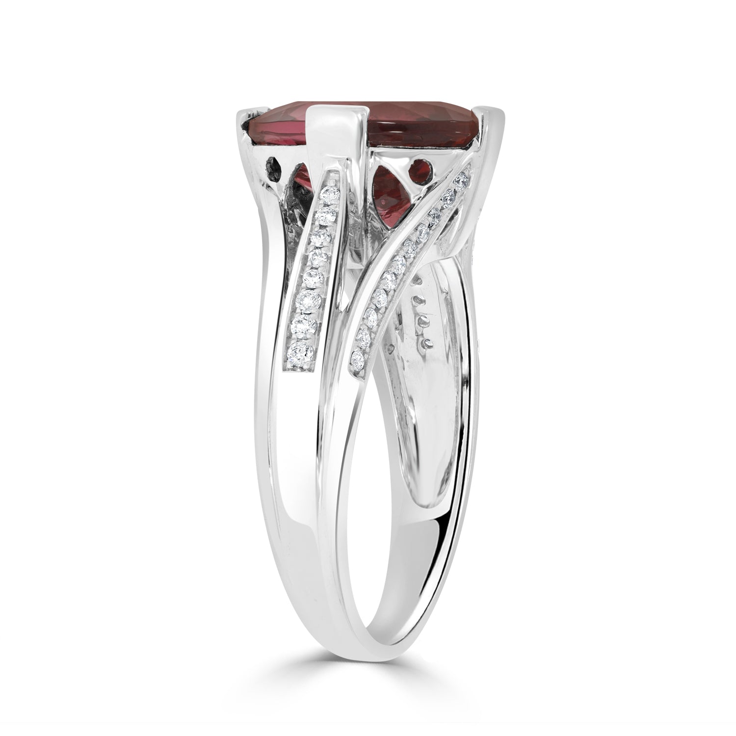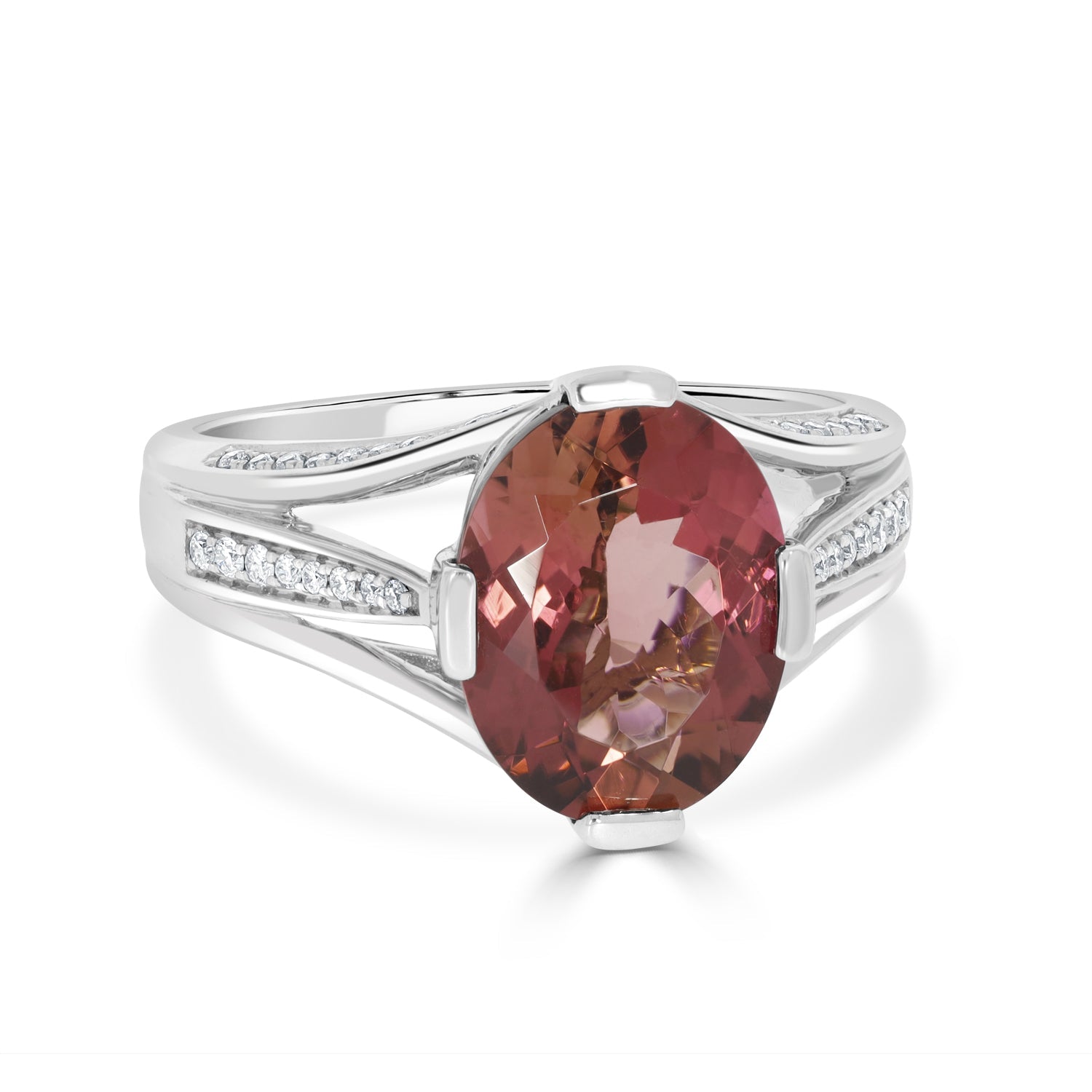 "Set with a radiant oval cut Tourmaline at the center, this marvelous ring is designed with 14K white gold. Circled by glittering round cut Diamonds, this stunning ring is perfect for every occasion."