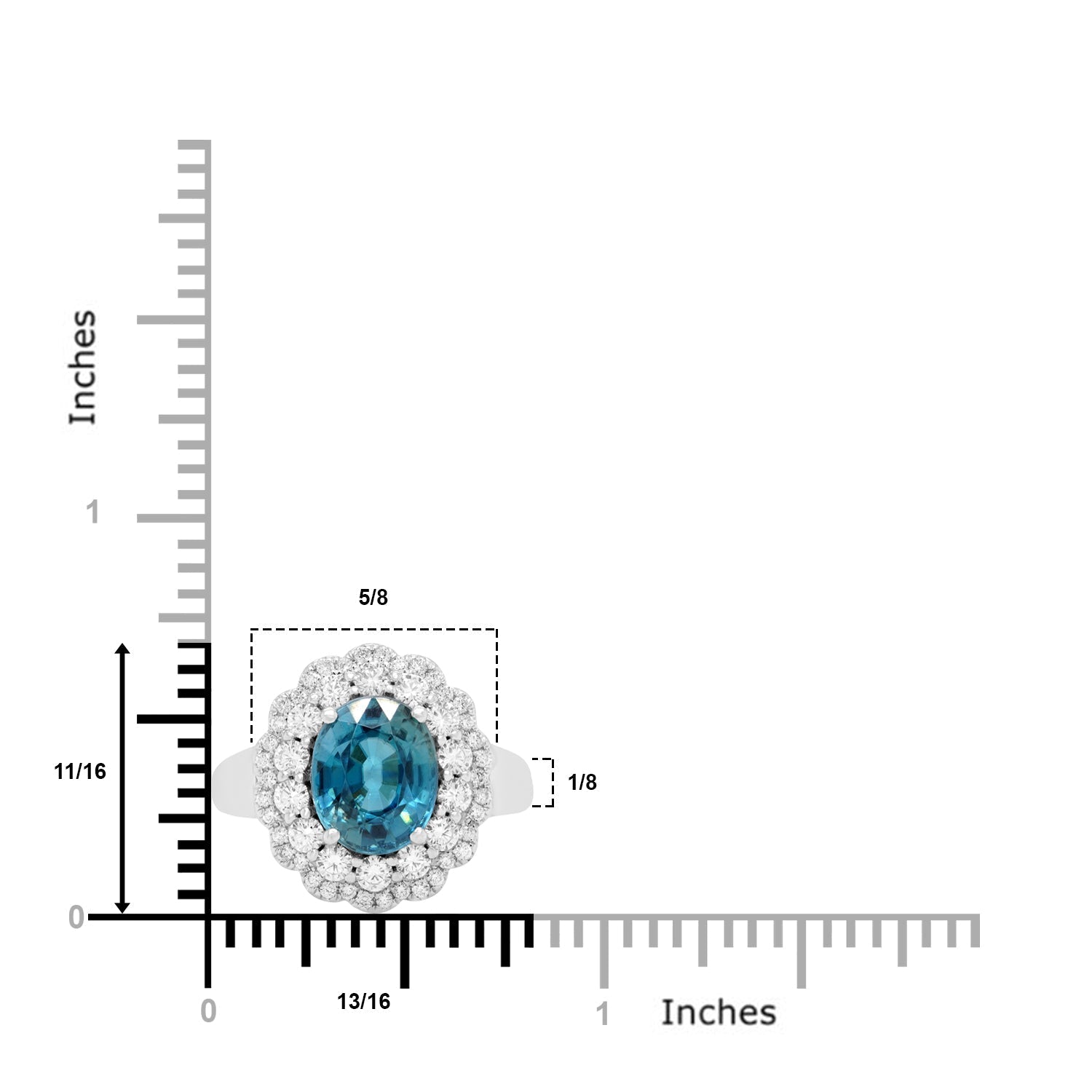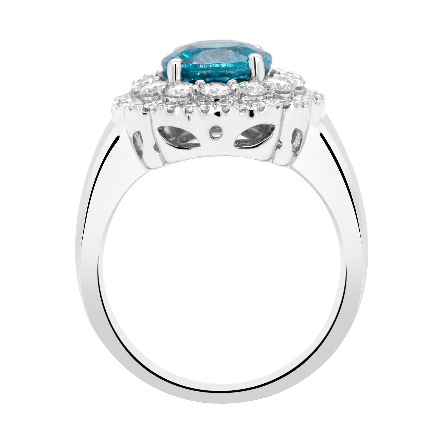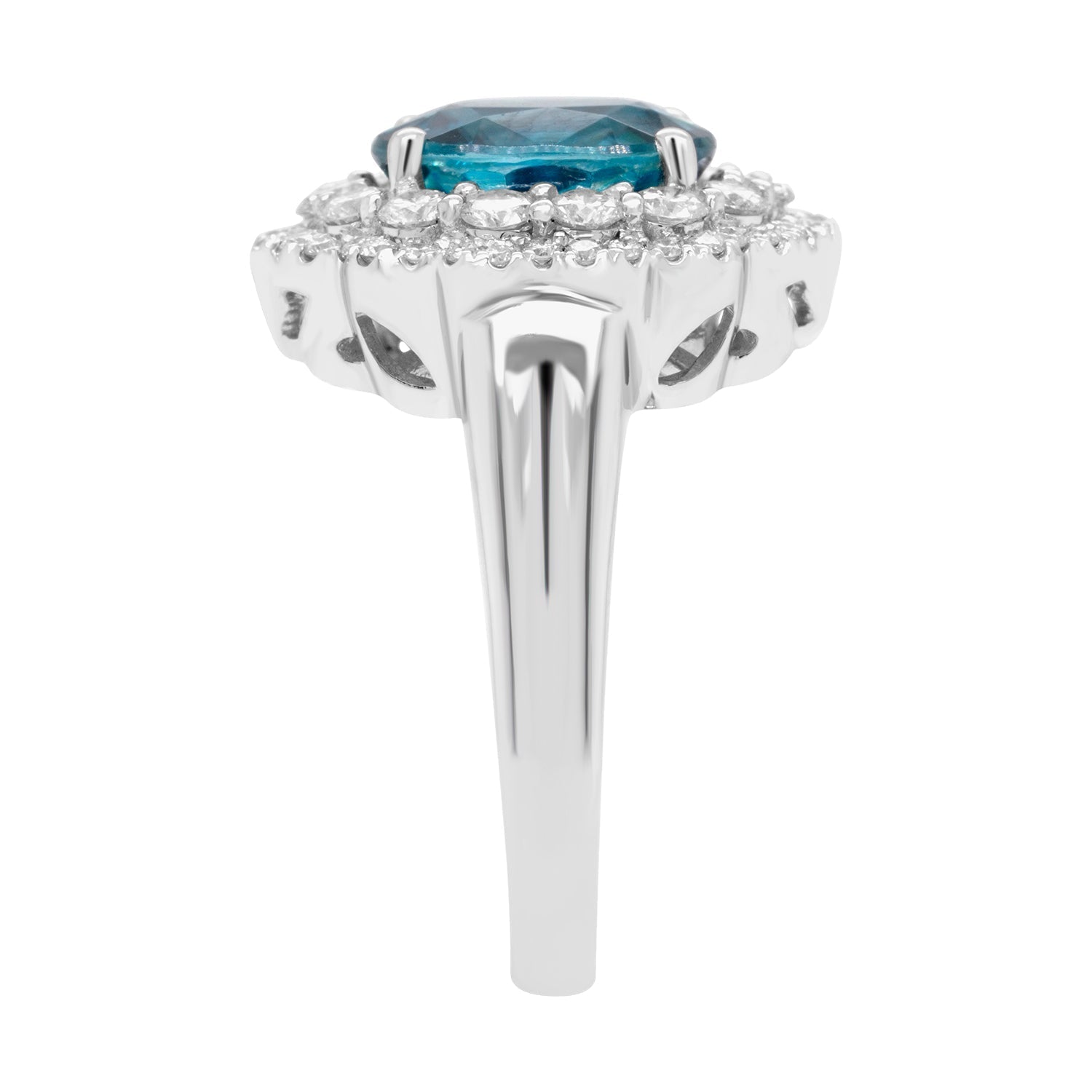 Crafted With 14k White Gold Beauty, This Ring Is A Sophisticated Piece Of Art. Set With Oval Cut Blue Zircon And Round Cut Diamonds, This Ring Stands Out.