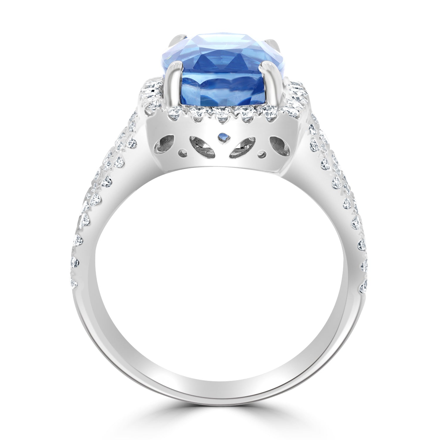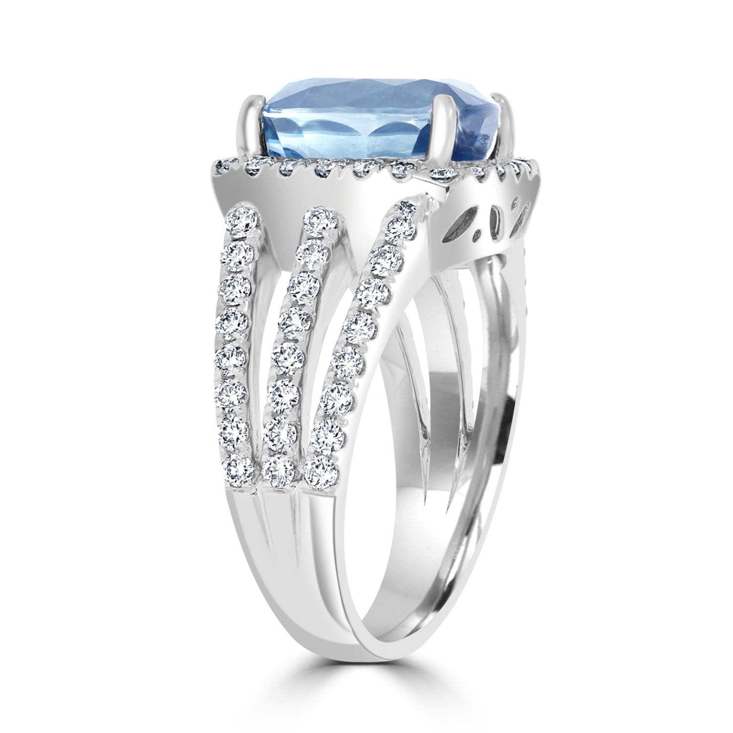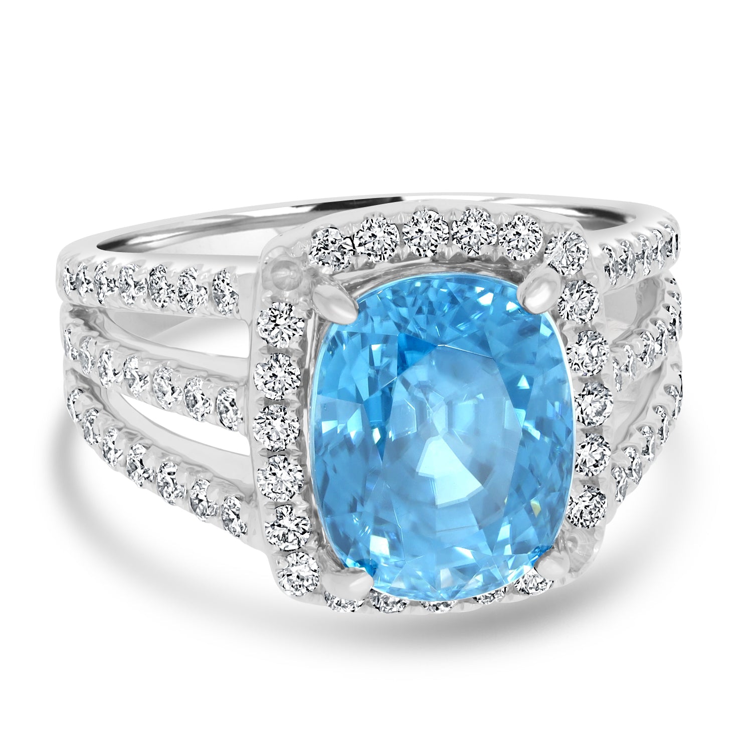 This impressive ring is designed with 14K white gold and set with a dazzling oval-cut blue Zircon and round Diamonds, the perfect companion nights out.